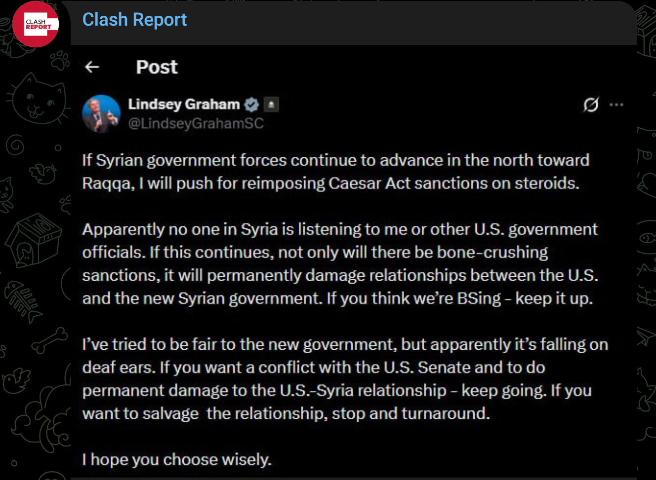 Аль-Хадат: Израиль выразил сильное недовольство США в связи с последними событиями на северо-востоке Сирии после соглашения Дамаска с Сирийскими демократическими силами.