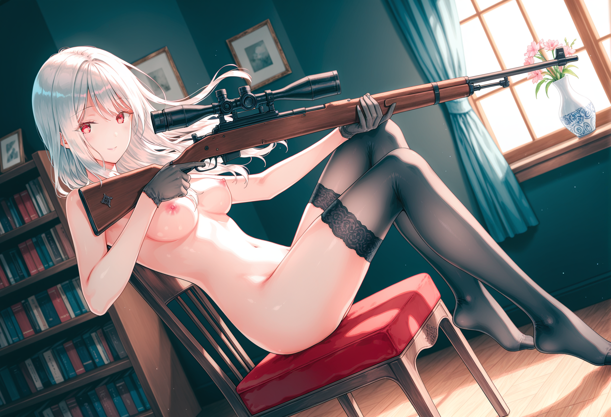 > Пик 1 Тяночка в душе стреляет из Люгера. Борда 18+ же. Если нет ебли, кончи и половых органов крупным планом, то уместно, думаю. Автор: https://www.pixiv.net/en/users/3680748