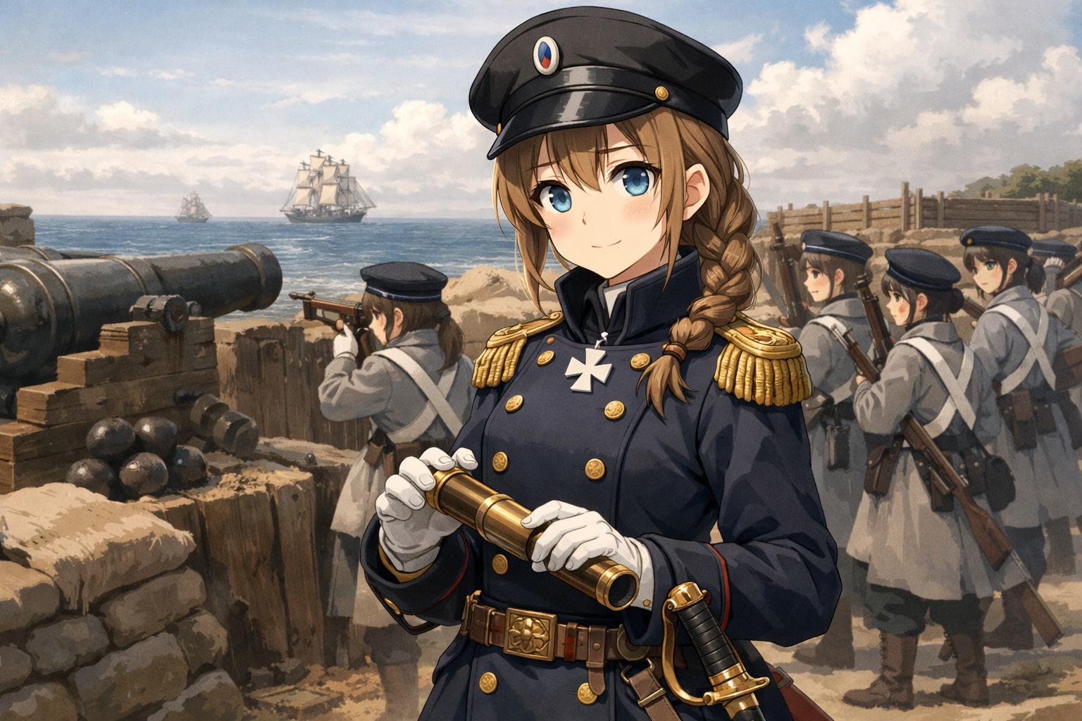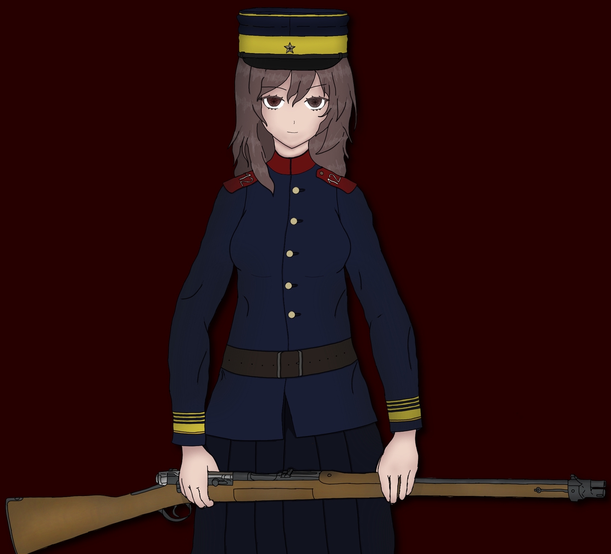 > Пик 4 Тянка в форме японской императорской армии времён Мэйдзи (подпрапорщик). В руках у неё винтовка Мурата. Автор: https://www.pixiv.net/en/users/27610182
