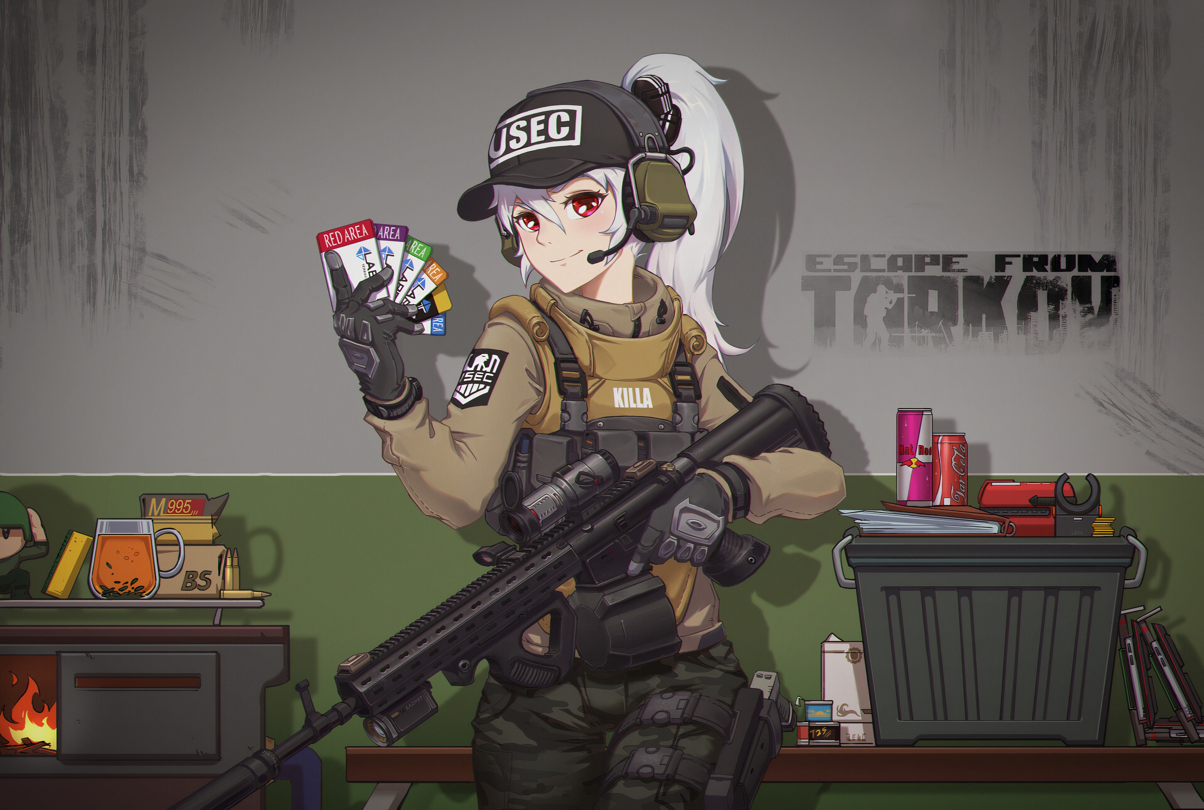> Пик 1 ОСка автора с баночкой "Монстра" (не пейте энергосы — это дрянь, бьющая по сердцу) и пулемётом KAC LAMG. Автор: https://x.com/jeremyzxc123