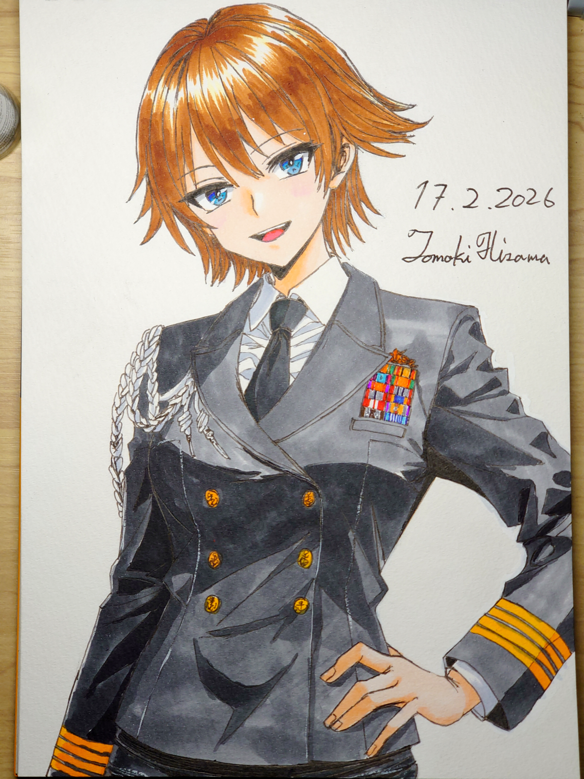 > Пик 2 Сигурэ из KanColle в форме офицера морских сил самообороны. То ли лейтенант, то ли мичман (одна полоска на рукаве, которая отличается лишь толщиной). Склоняюсь, что это всё же мичман. Тот же автор (его рисунки на бумаге лучше, чем в цифре, однако).