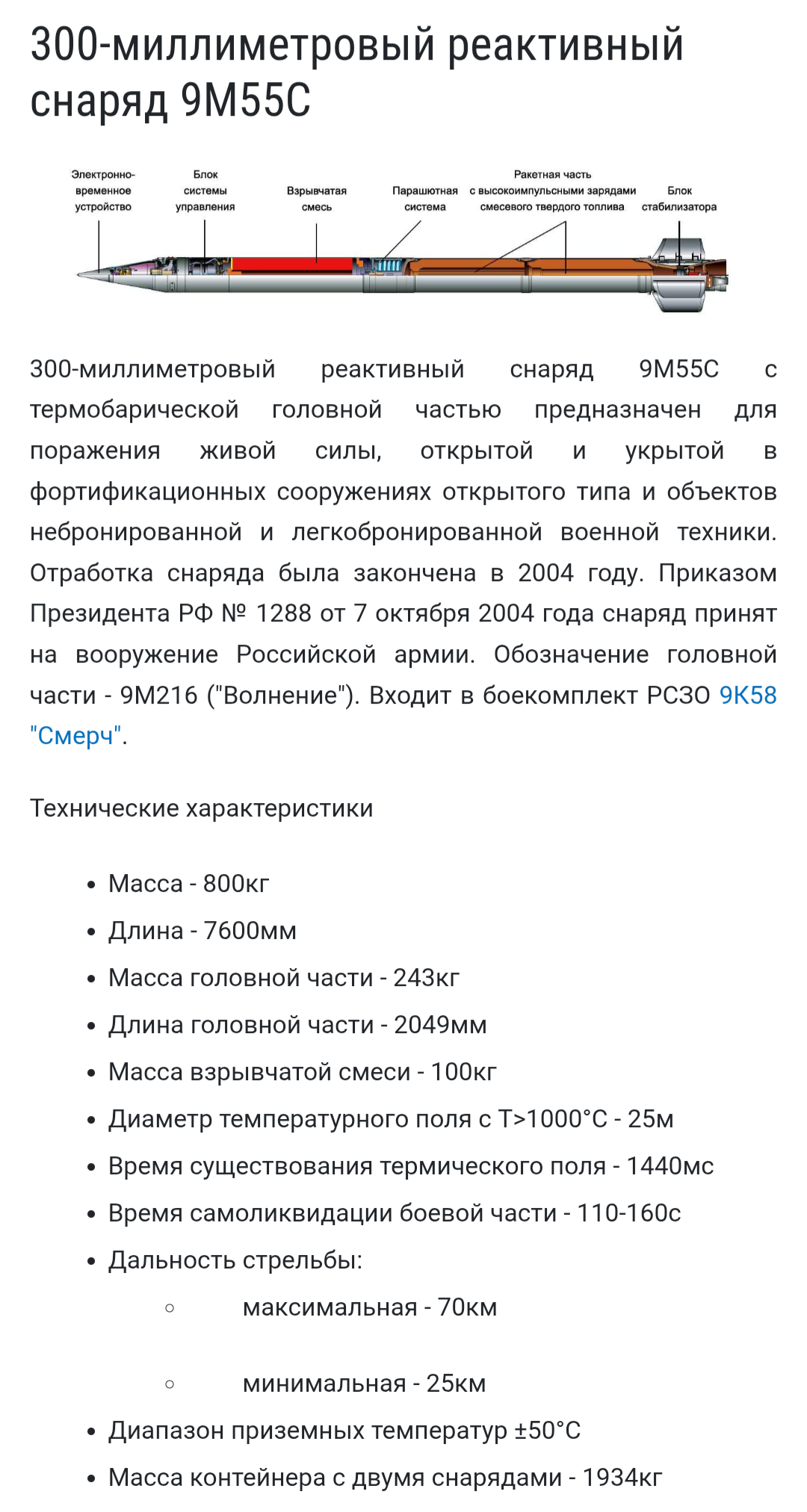 >>10178897 >Каждая неуправляемая ракета весит 175 кг, масса боевой части зажигательного боеприпаса составляет 45 кг, дальность стрельбы – от 400 до 3600 метров. Вес боевой части термобарического боеприпаса значительно больше – 74 кг, максимальная дальность стрельбы составляет 2700 метров. Ну термобары Урагана летят меньше чем обычные урагановские 220мм ракеты с дальностью 35км, но дальше чем Буратино из-за меньшего БЧ, шило на мыло какое-то Только термобар Смерча летел как его ОФС браток на 70км А снаряд Буратино судя по тексту энивей имеет меньшую мощность чем 9М55С и просто смешную дальность Поэтому эта машина становится ещё более странной, просто сделали более мощный 220мм термобар чем обычно, поставили на шасси танка, дали отдельное название в чем профит? Смерч/Торнадо-С с термобарами и глонасс ракетами по нужде выглядит кратно лучше и вообще каждый Смерч может стать всеми любимым солнцепёком