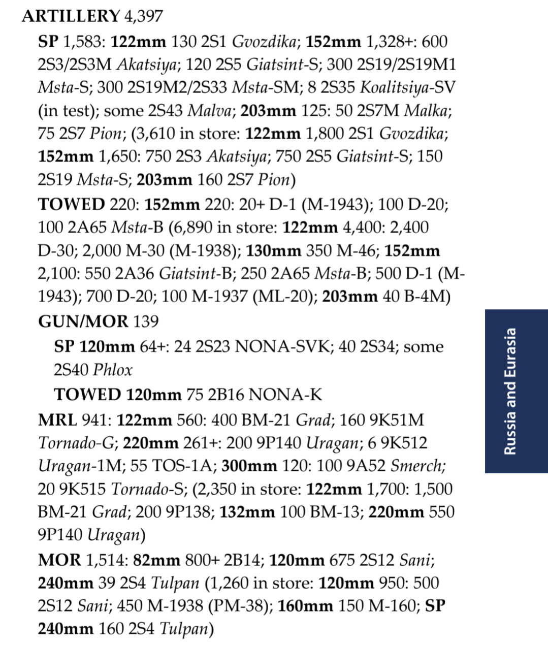 Итак, высру сразу свои диванные шизомысли: 1) То, что Мста-Б и Гиацинт-Б всё ешё находятся на передовой вместо переделки в самоходные - это недопустимо. 2) Возобновление производства Пионов, как самого орудия, так и шасси, и разработку номенклатуры боеприпасов к ним. Подбираем шасси к Пионам всем вармашем. 3) Из Д-1 и Д-20 запилить САУ, установить бронекабину, защищающую от осколков снарядов калибра 155мм на телеги от т-54 и т-55, ввиду малой дальности стрельбы, а соответственно большего риска поражения. 4) Внезапно показавшую годность Рапиру массово установить на МТЛБ.