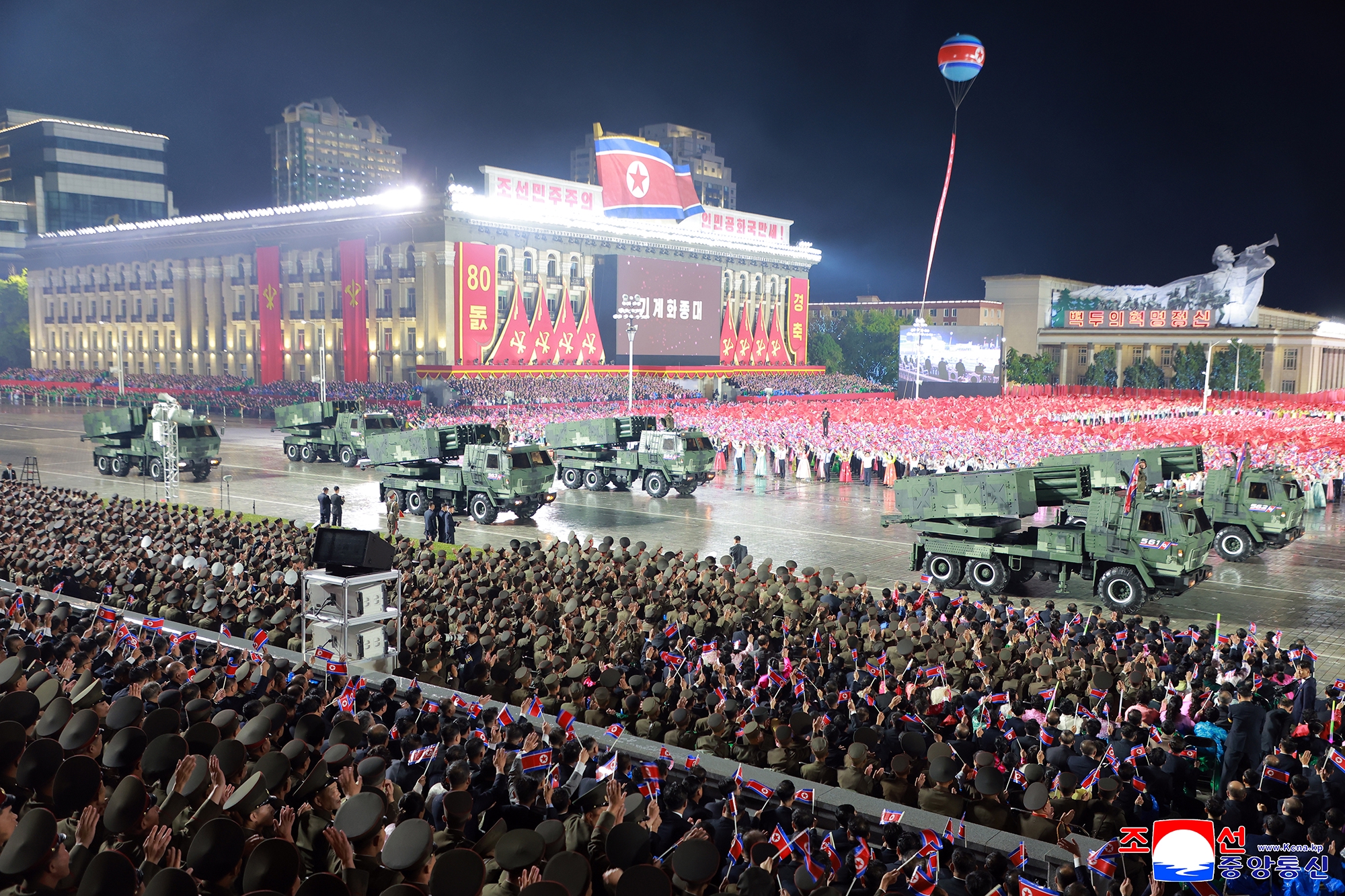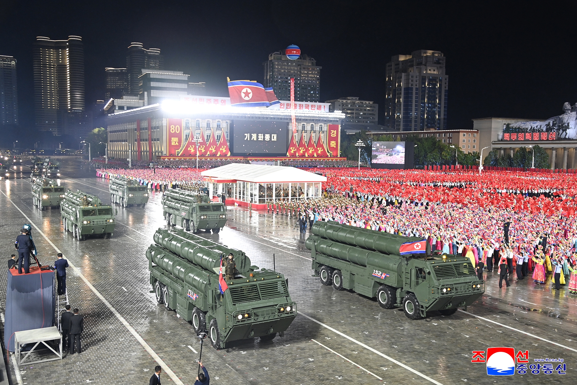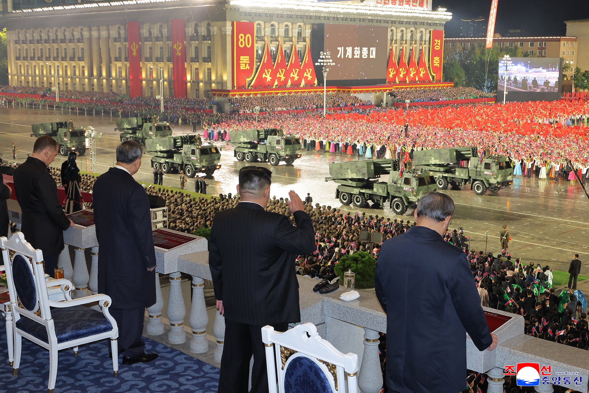Впервые на параде в Пхеньяне показали новые модульные мультикалиберные РСЗО. Насколько можно судить по кадрам с парада, боевые машины РСЗО способны применять модульные блоки c как минимум тремя различными типами боеприпасов. Предположительно 122-мм и 240-мм реактивными снарядами и некими управляемыми оперативно-тактическими ракетами. (пик 1)