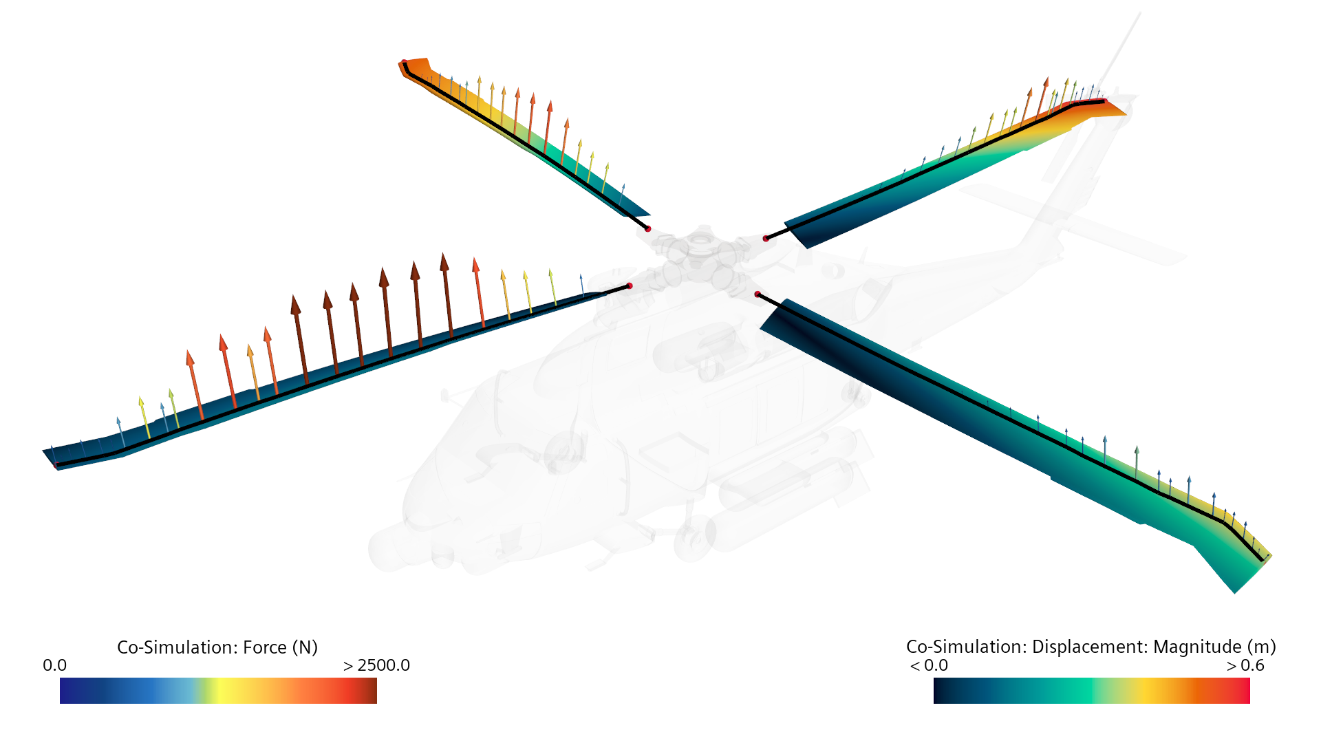 У Ка-50 за счёт соосной схемы по правому борту выходит снизу идущая вперёд лопасть, которая отгибается вверх сильнее, а сверху идущая назад лопасть, которая отгибается вверх слабже. Машину на самом старте её разработки проектировали под довольно неспешный полёт, а потому и запас на эту разницу отгибания лопастей тоже был небольшим. А ударной вертушке вообще полезно быть быстроходной - и Ка-50 получился довольно быстроходным приблизительно на уровне американской "Кобры" (а с некоторой доводкой по идее может и быстроходнее) - вот только расстояние между винтами изначально было выбрано под меньшие скорости, а потом его забыли пересчитать (ну и по слухам лопасти после облегчения оказались более гибкими, чем хотели изначально).