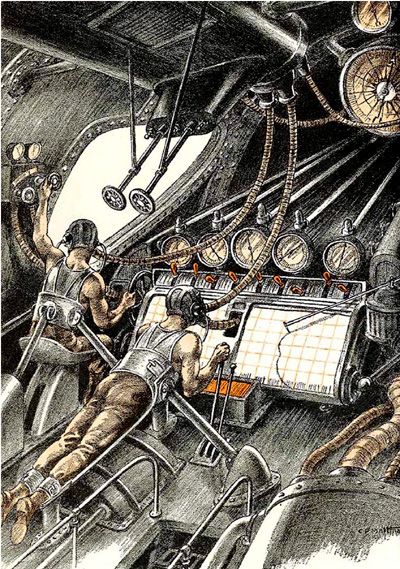 >>849394 Густые серебряные облака плыли над Грозногорским кремлём, и холодное зимнее солнце едва просвечивало сквозь эту блестящую серую пелену. Десятки людей спешили пройти через караул у Главных ворот: лакеи, повара, прачки, гвардейцы, мелкие чиновники и беженцы с многостраничными челобитными губернатору пробегали мимо бойцов, лишь мельком оглядывая столь привычных для центра губернской столицы титанов. В это время вдалеке прозвучал зычный заводской гудок, и рабочие металлургических заводов вместе с шахтёрами заступили на очередную двенадцатичасовую смену. Впрочем, дым из заводских труб валил всё так же размеренно, как и вчера, впериваясь в плотные облака, делая их грязно-серыми, под цвет промышленных окраин города. Словно вторя фабрикам, мимо кремлёвских ворот проехала безжалостно чадящая и ревущая мотокарета фирмы "Борисовъ&Ко", распугивая прохожих и солдат. А в столице никто бы и ухом не повёл от этого чуда карательной инженерии — подумал Фома, бывший невысокого мнения о нынешних каретостроителях. Шум двигателя словно вернул его в реальность, и он принялся проводить уже вторую за день диагностику систем своего титана. Пальцы Фомы забегали по огромной панели управления, затем дернули несколько рычагов и устремились к выдвинувшимся из под потрескавшихся экранов клавишам. Наконец, на экране появился бело-голубой логотип: две ветви, слева и справа от круга, внутренняя часть которого была усеяна точками и крестиками звёзд. Фома смутно представлял, что такое Союз, но с самого детства он слышал жуткие рассказы о людях с неба, не знающих ни царя, ни бога. Легенды гласили, что люди эти летали на кораблях, способных преодолевать сотни верст за доли секунды, а титаны были для них лишь примитивными средствами передвижения, навроде мужицких бричек. Фома с ужасом думал о том, что, быть может, он — их потомок. Иначе откуда у его предков взялся титан? Впрочем, люди эти не давали о себе знать уже очень долго. На лекциях в институте некоторые профессора утверждали, что Союз покинул Ройю после катаклизма, приведшего к появлению Запустенья. Фому история Империи интересовала слабо, но рассказы о небесных людях заставляли его внимательно слушать даже самое скучное занятие. Тогда же он смог на базовом уровне освоить то, что называлось "небесным языком", так что для него не составляло труда разобраться в программном устройстве титана. Проверив все системы и прислушавшись на пару секунд к гудению ржавого реактора, Фома включил коммуникатор: — Всё в норме. Дайте знать, во сколько выдвигаемся.