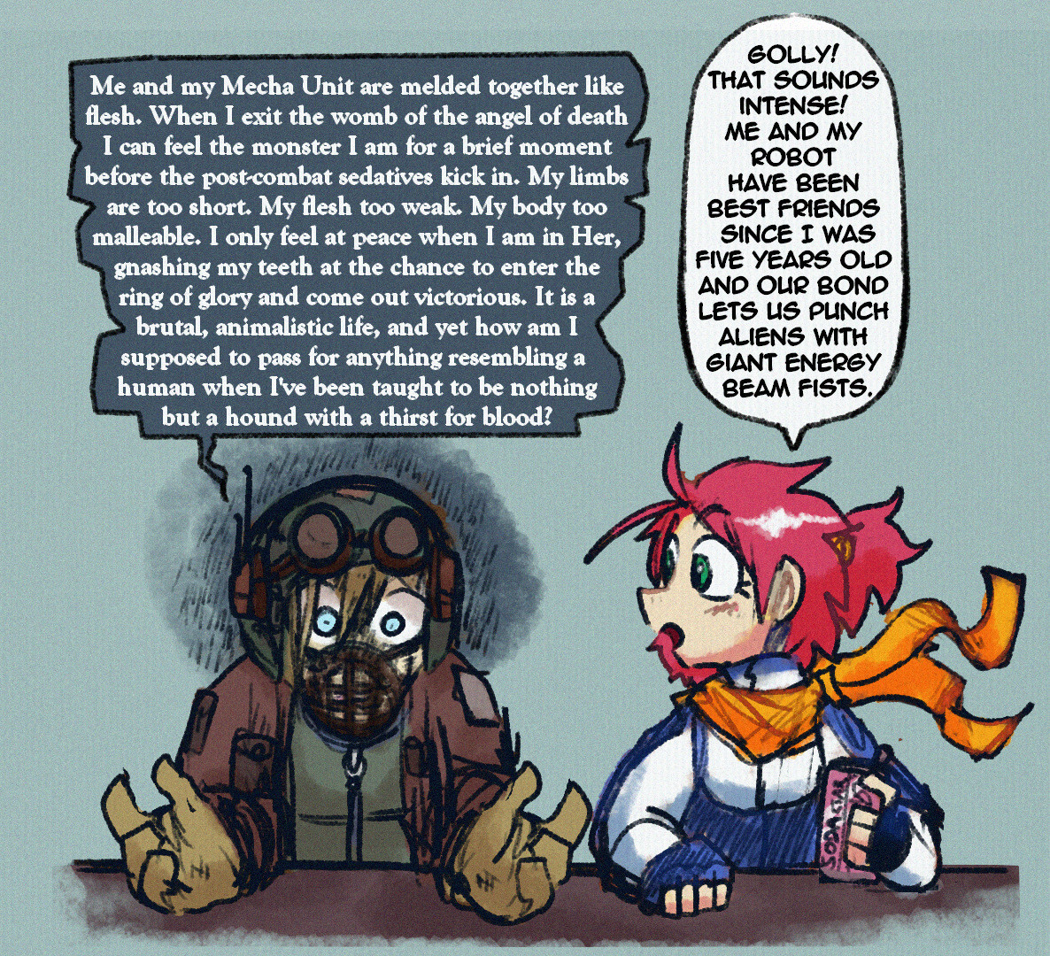 >>849828 >>851038 — Чудесно! — отозвалась лейтенант. — Пока остальные проверяют свои машины, кратко о задаче на сегодня. Просто разминка, ничего серьезного... в общем, на южном тракте разбушевались бандиты, вроде бы даже кочевники из Запустанья. На вас патруль в течении дня, при встрече с враждебными элементами — уничтожить. Солодников-младший фыркнул в микрофон: — Будто нам стрелять вообще придётся. Вряд ли бандиты ждут титанов!