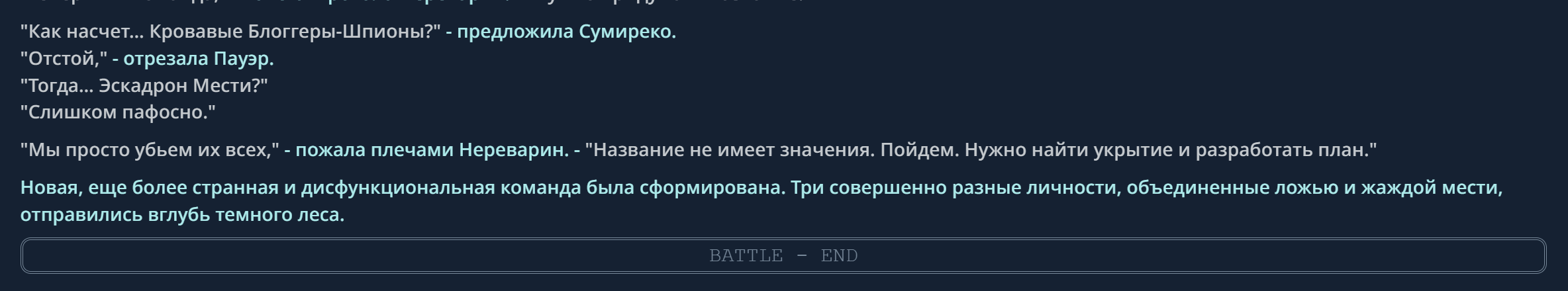 Если у вас команда, вместо имени персонажа пишите название команды, ниже названия команды перечисляйте состав команды через запятую.