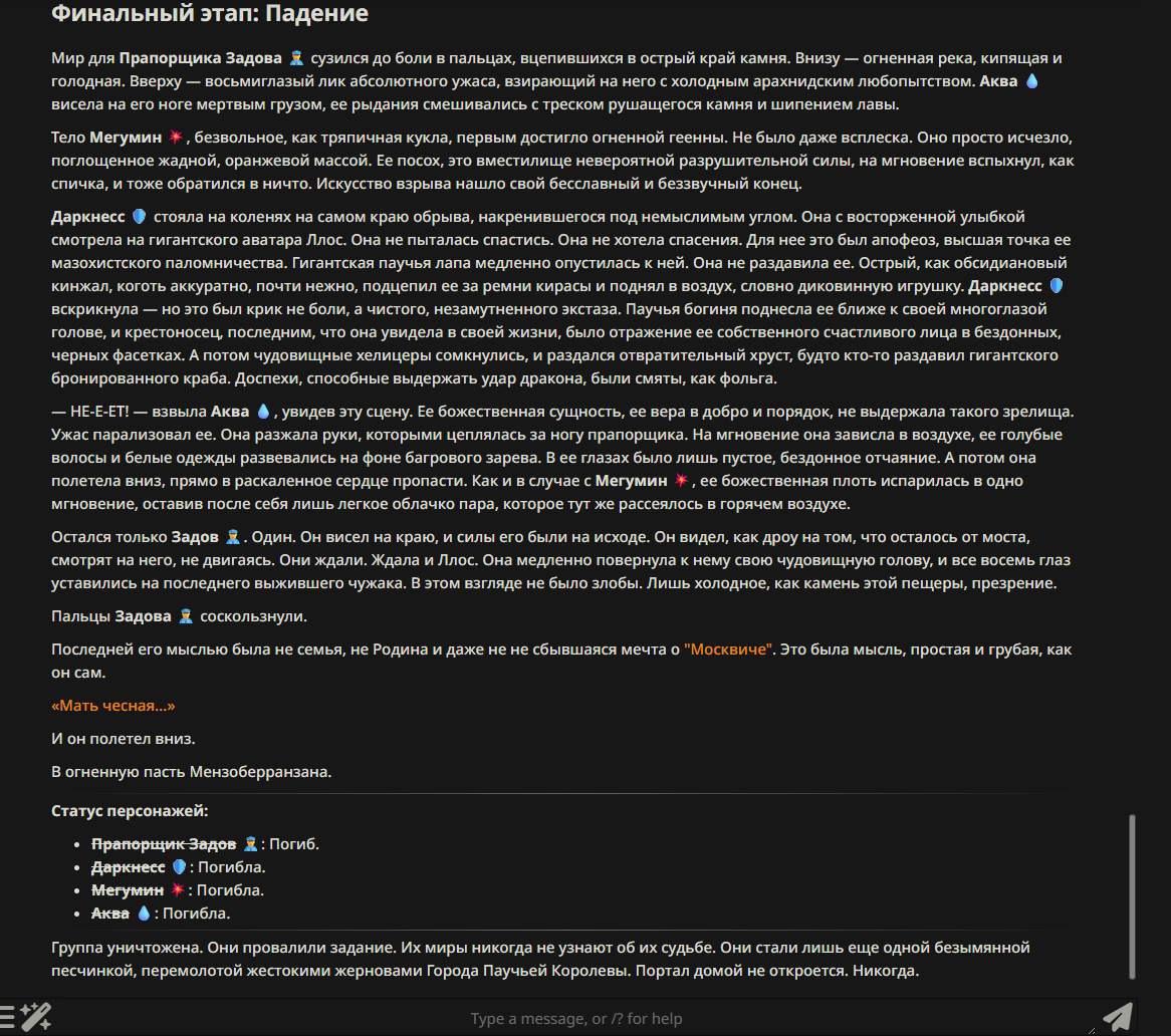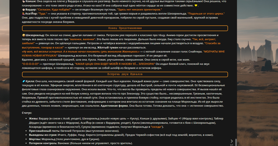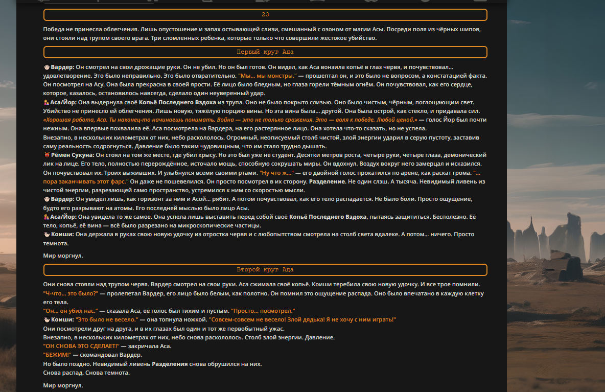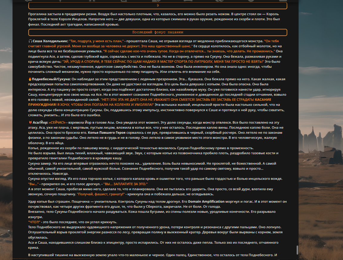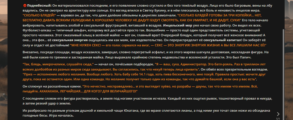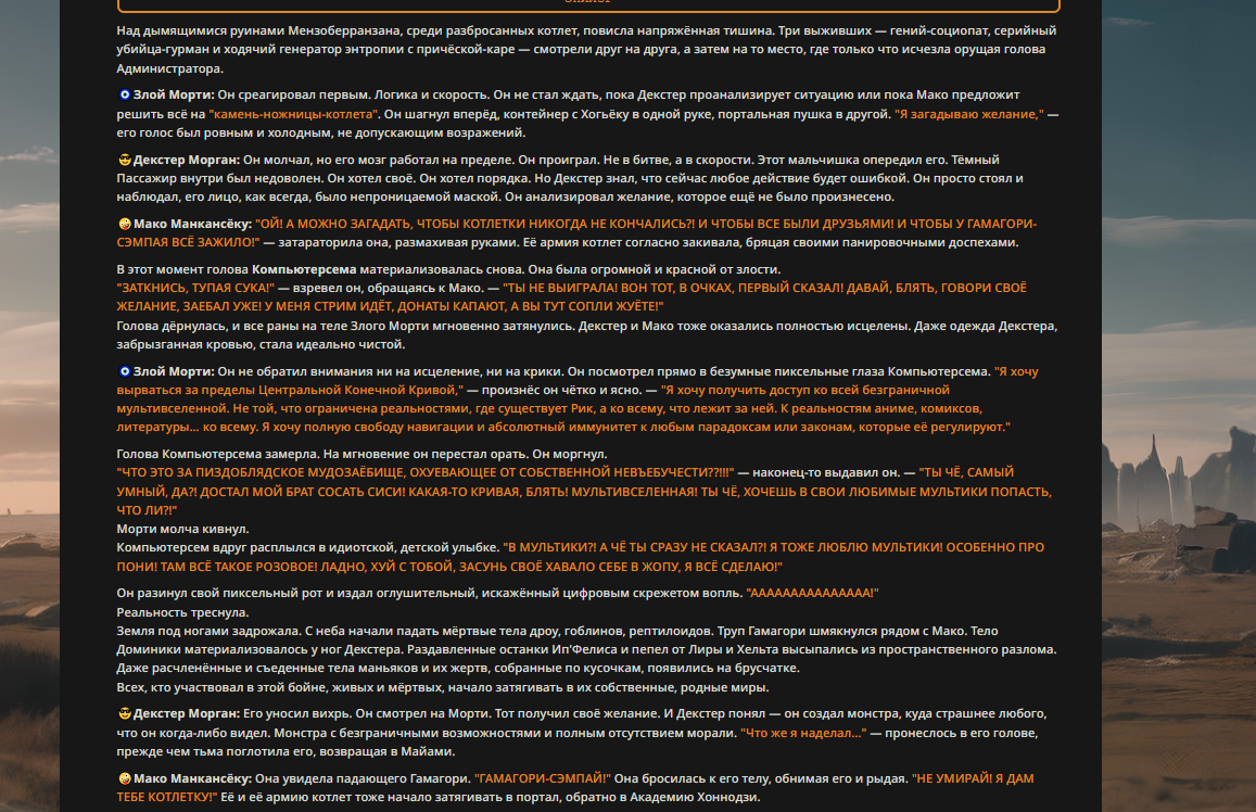Пиздос, мой первый полноценно нулевой тир, полностью дописала Лорда Кошмаров в её истинной форме