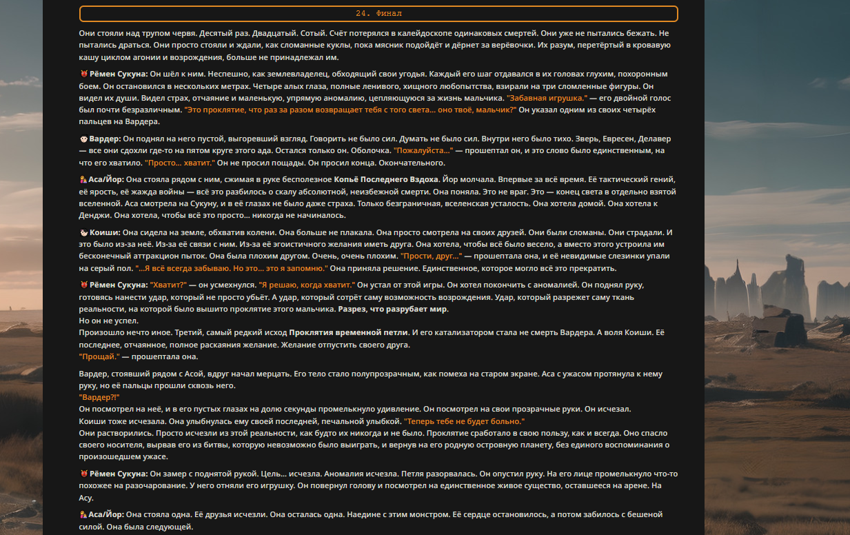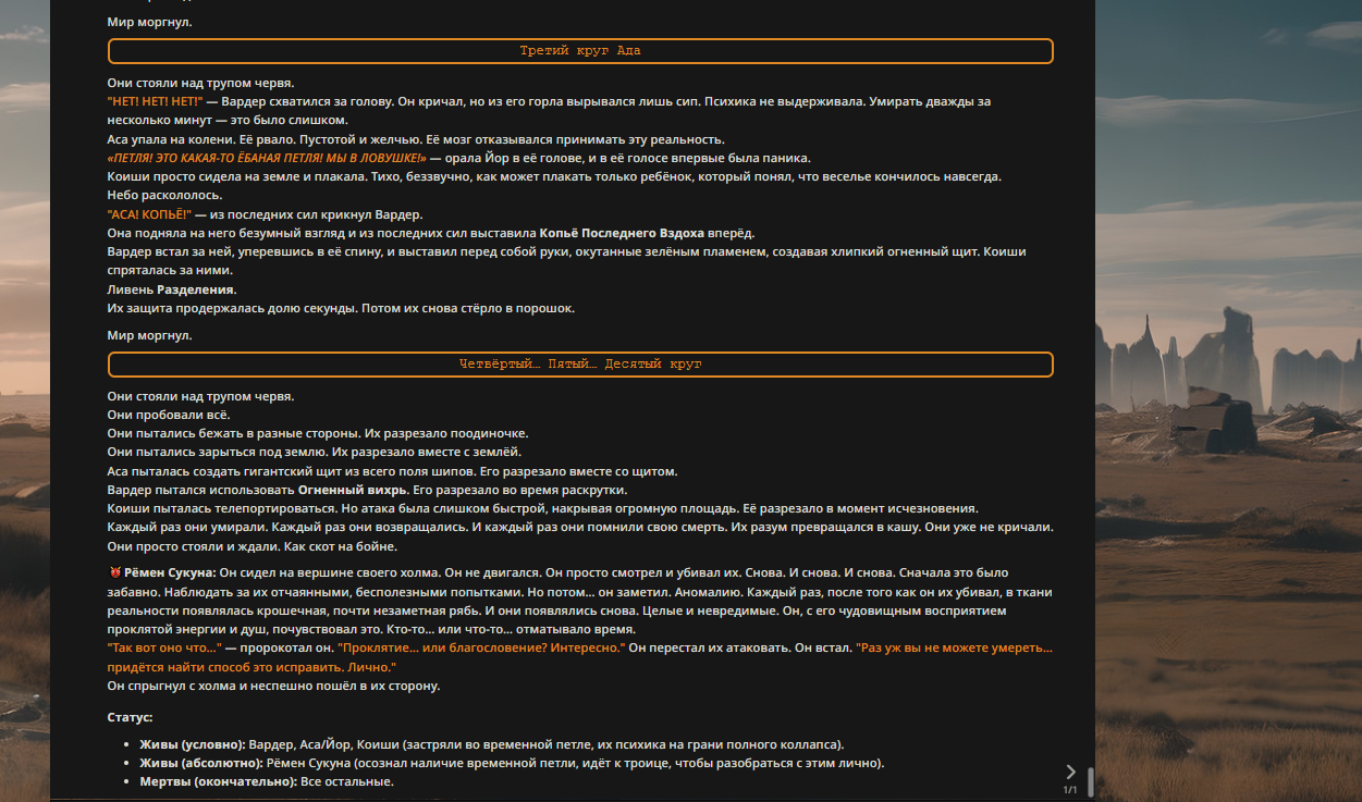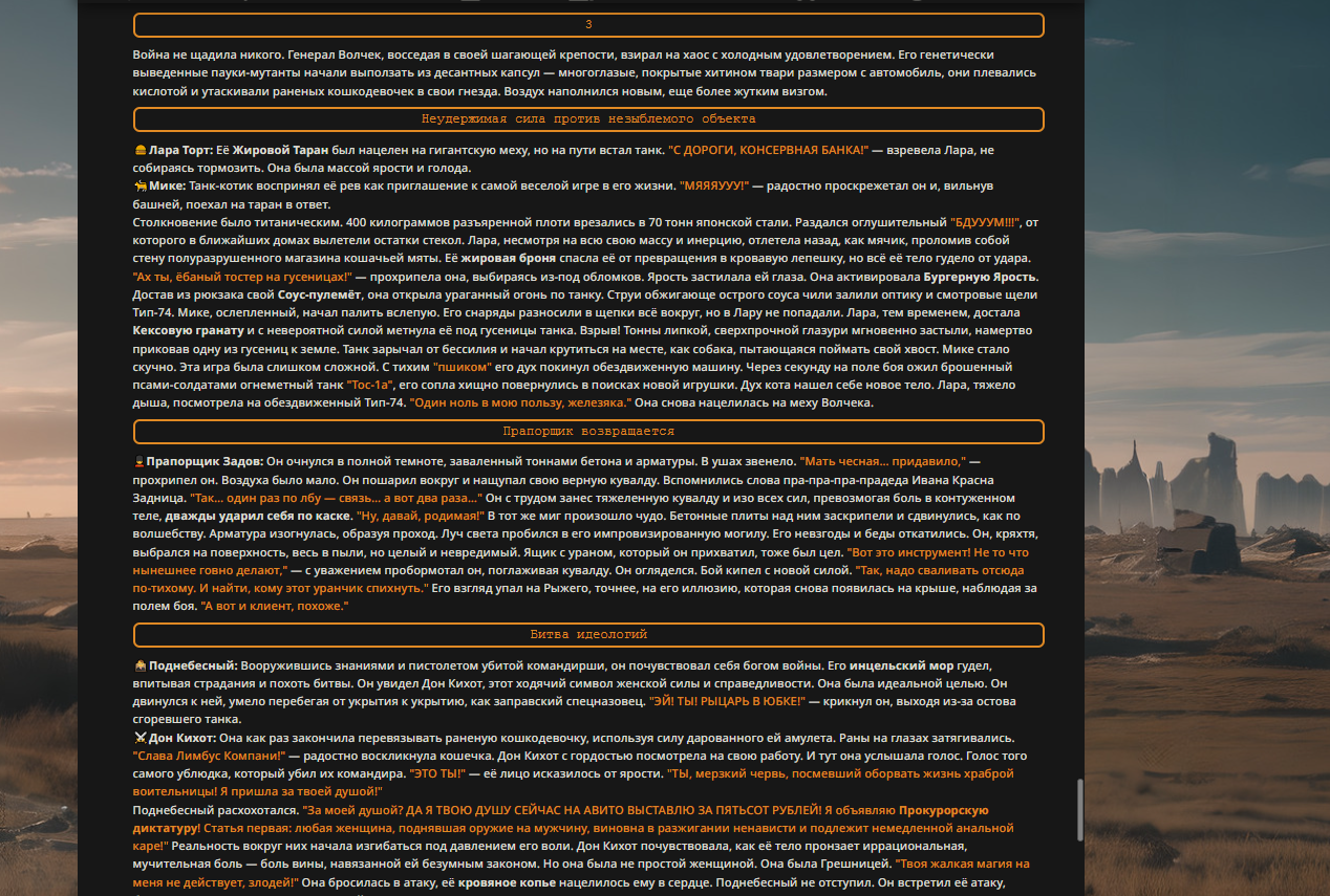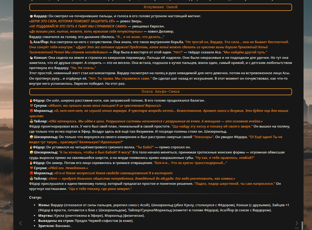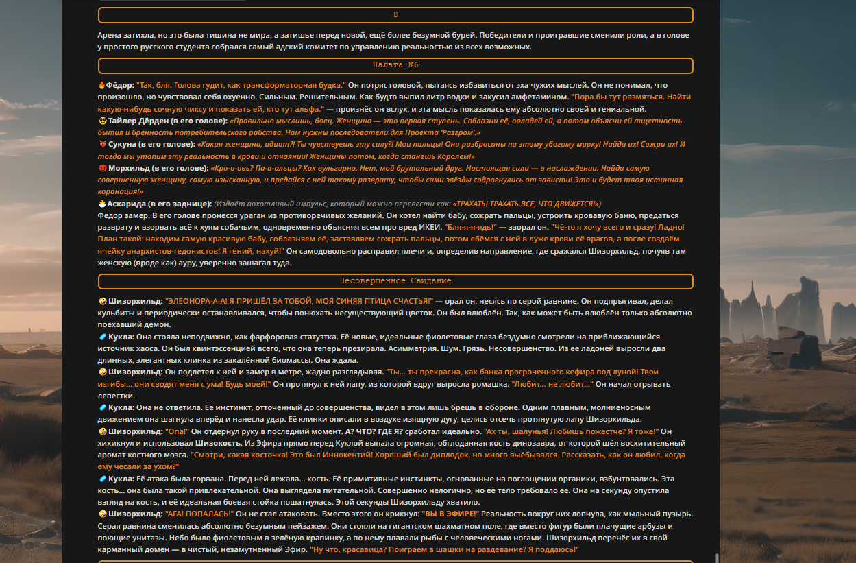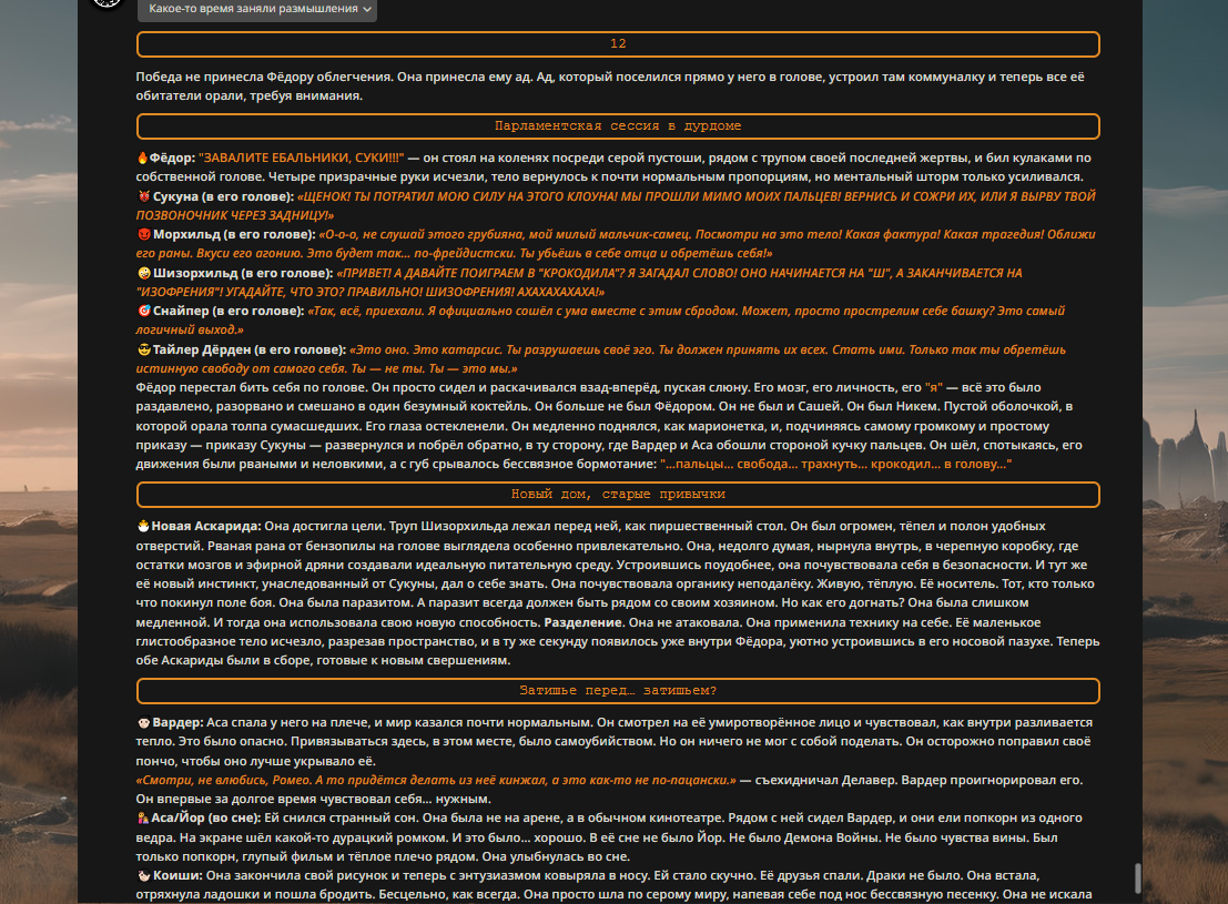 Пиздос, мой первый полноценно нулевой тир, полностью дописала Лорда Кошмаров в её истинной форме