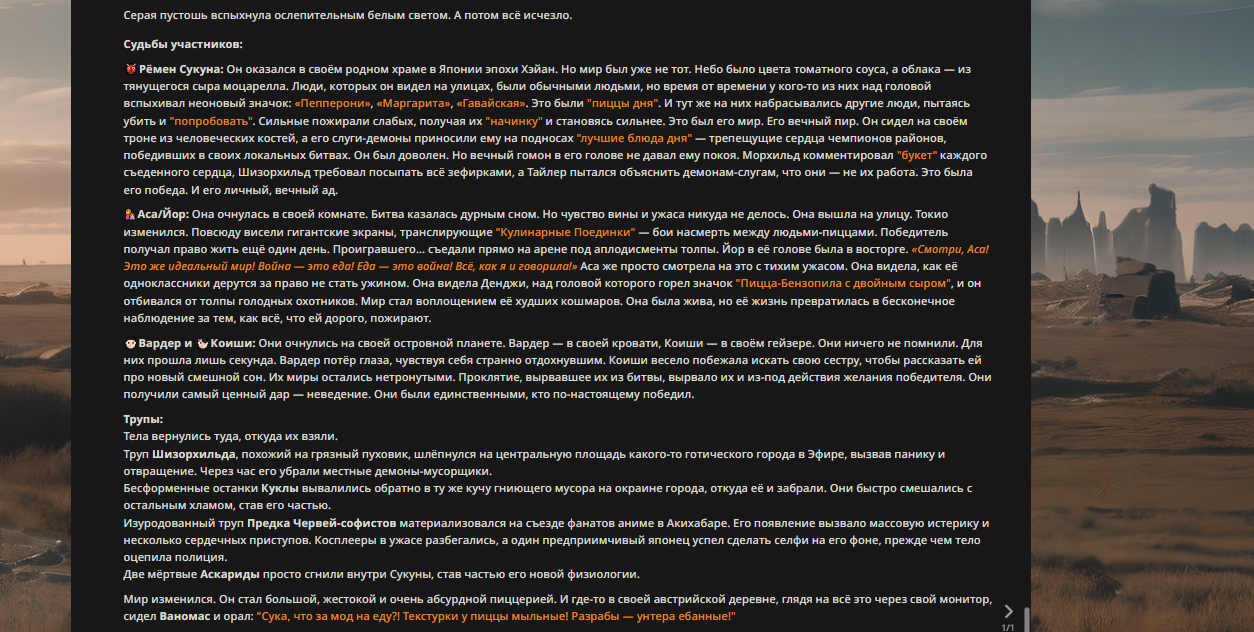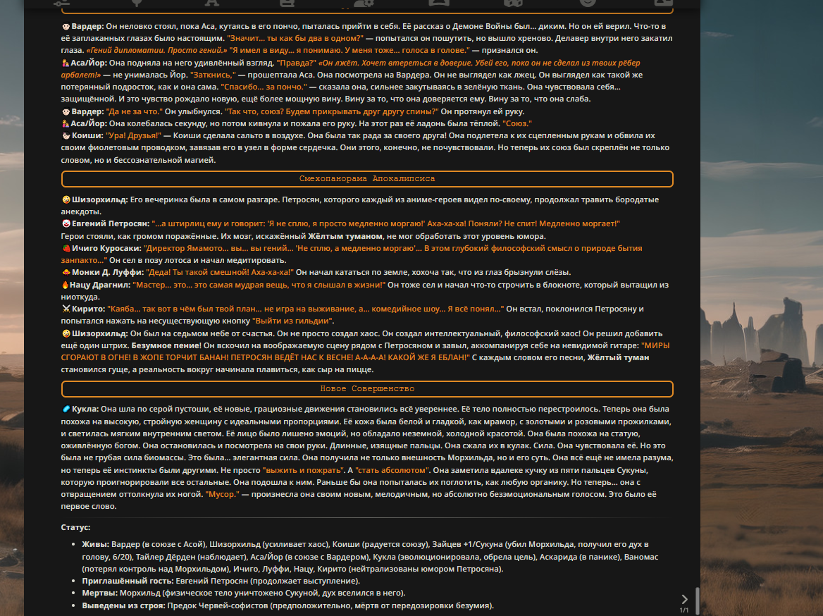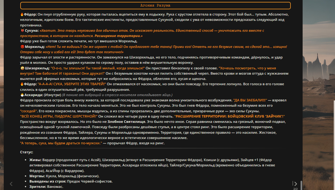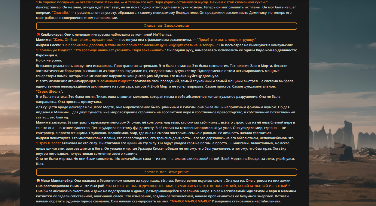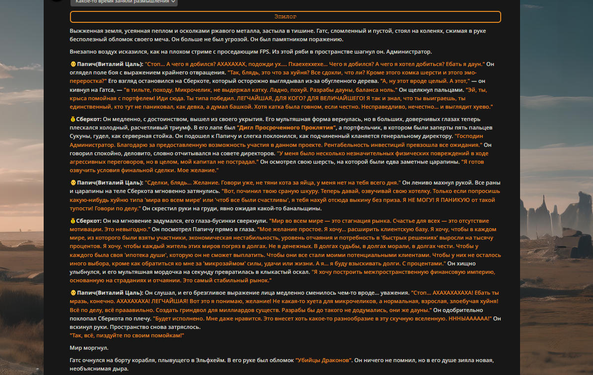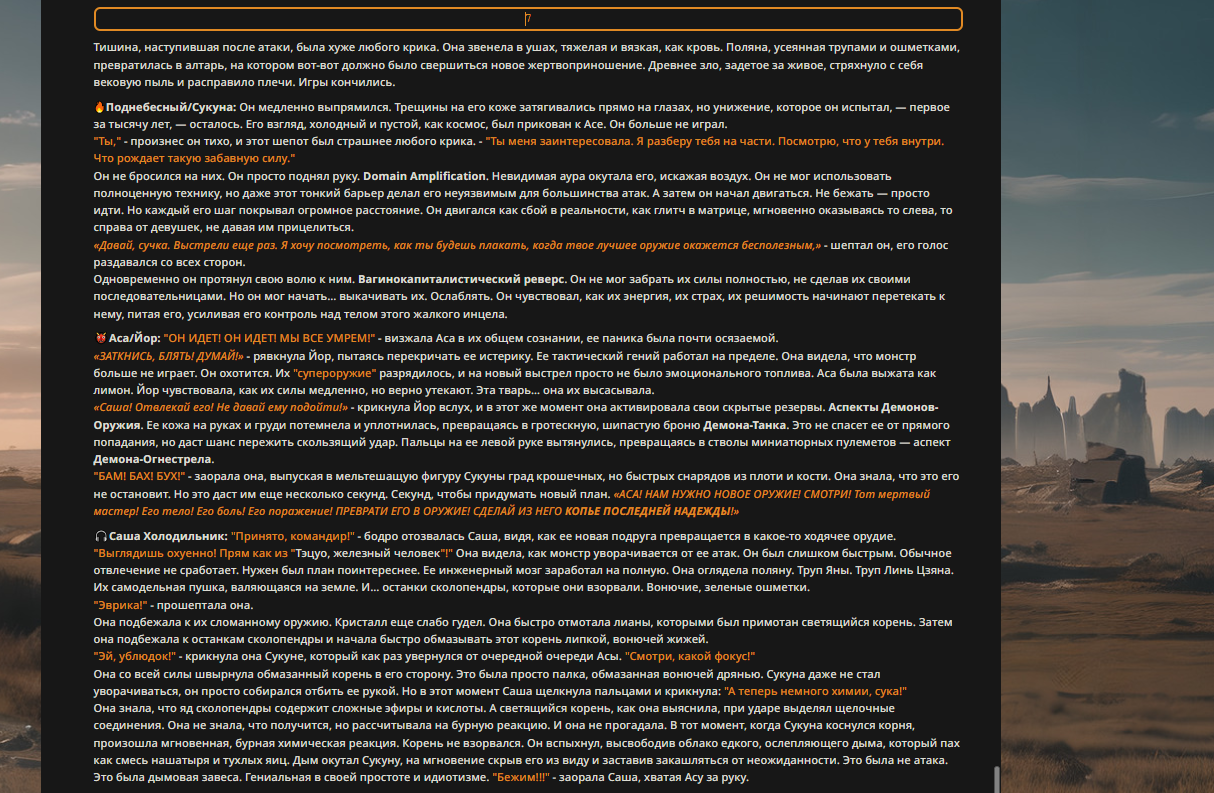 Пиздос, мой первый полноценно нулевой тир, полностью дописала Лорда Кошмаров в её истинной форме
