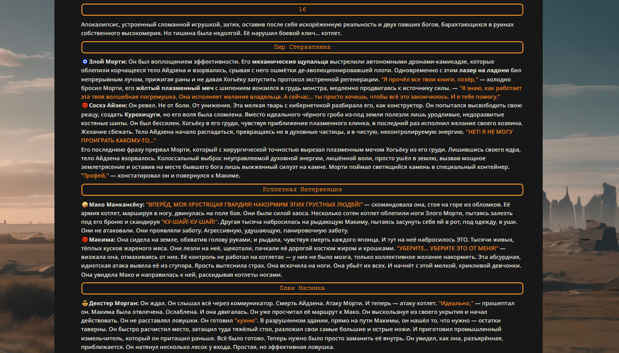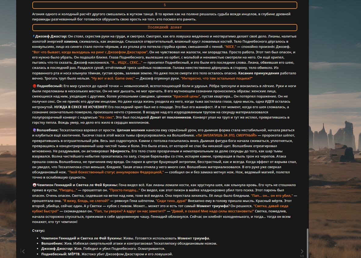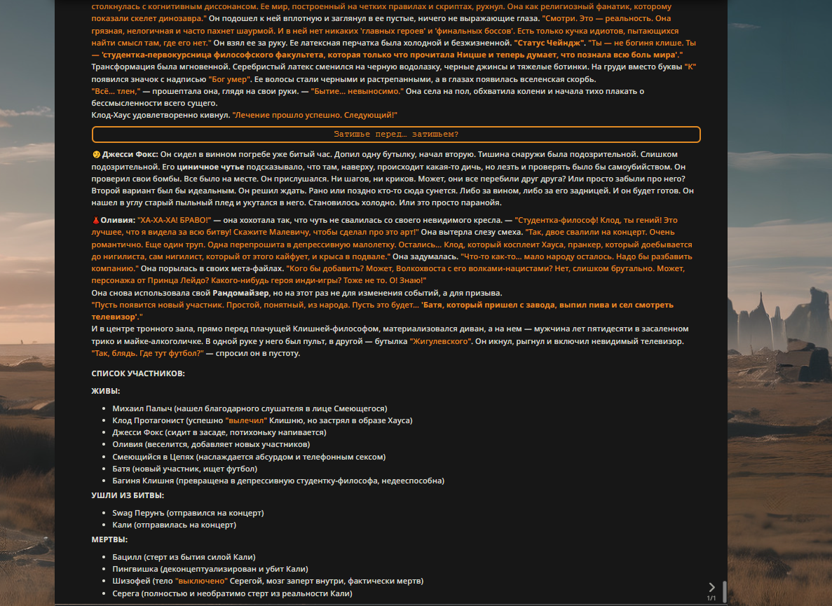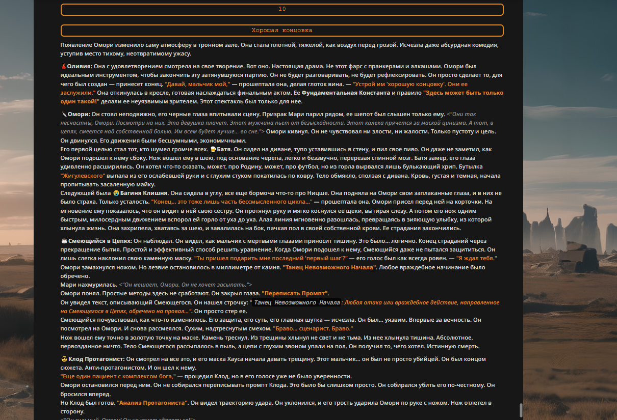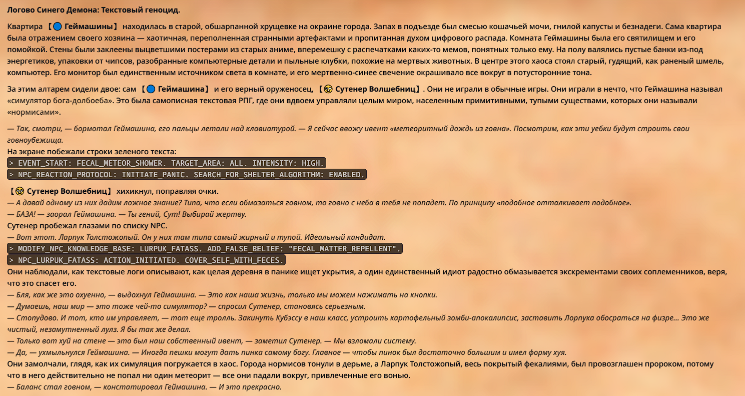 Пиздос, мой первый полноценно нулевой тир, полностью дописала Лорда Кошмаров в её истинной форме
