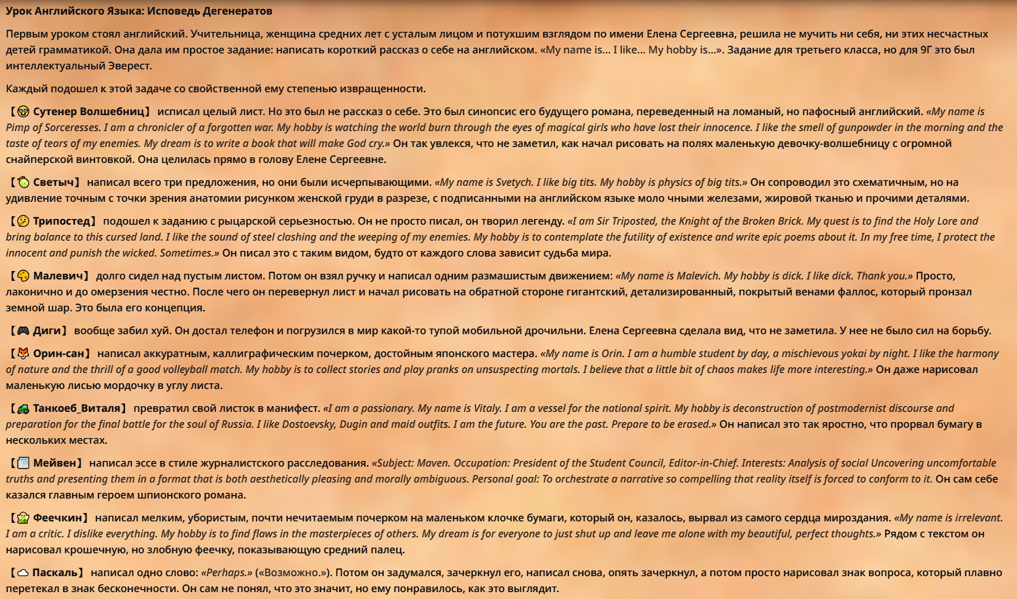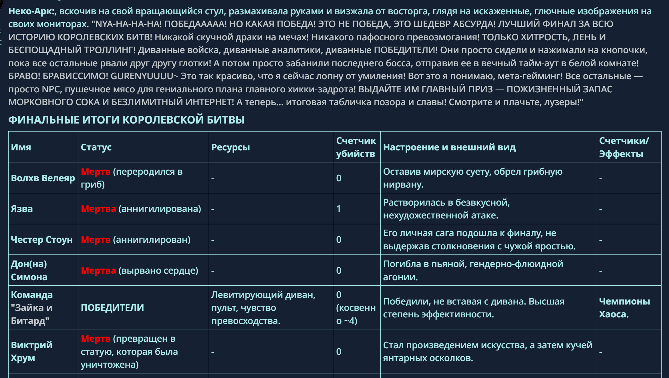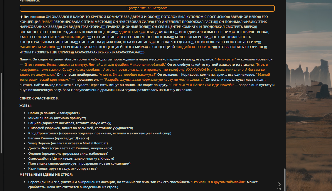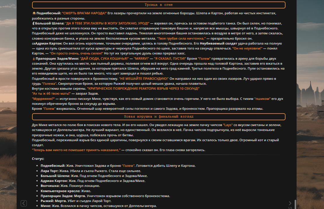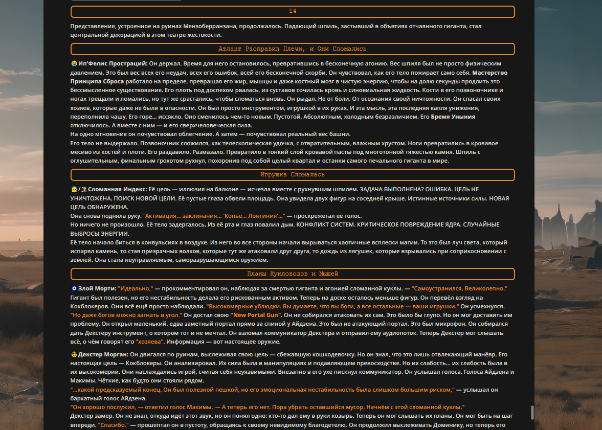 Пиздос, мой первый полноценно нулевой тир, полностью дописала Лорда Кошмаров в её истинной форме