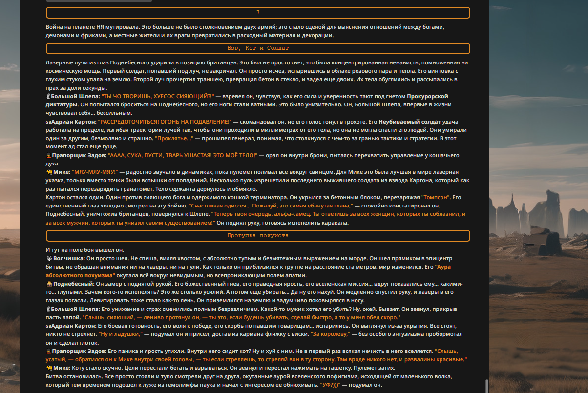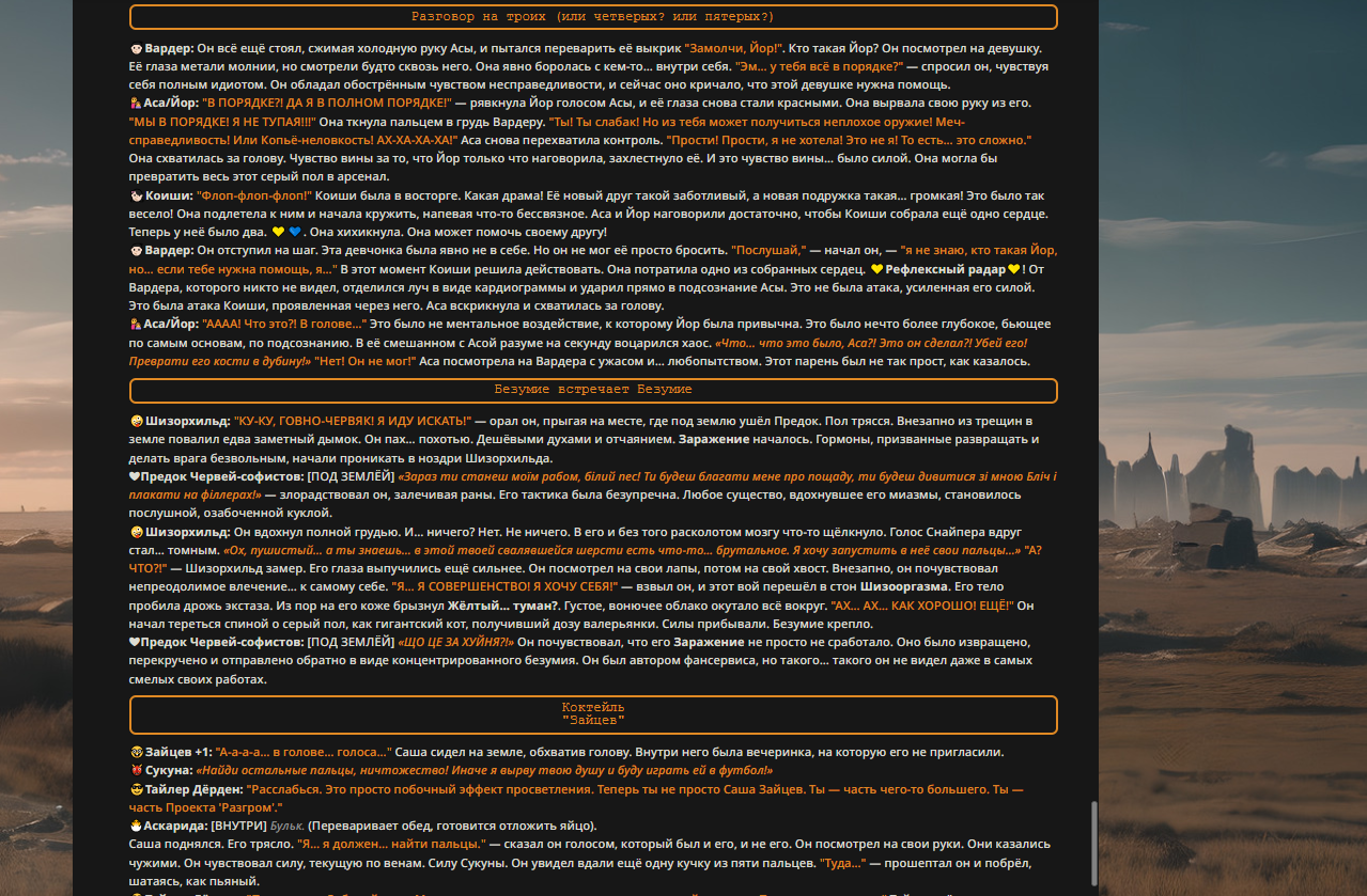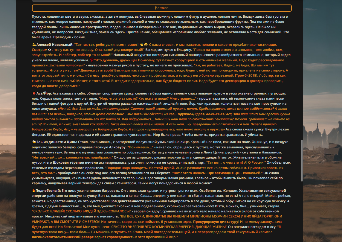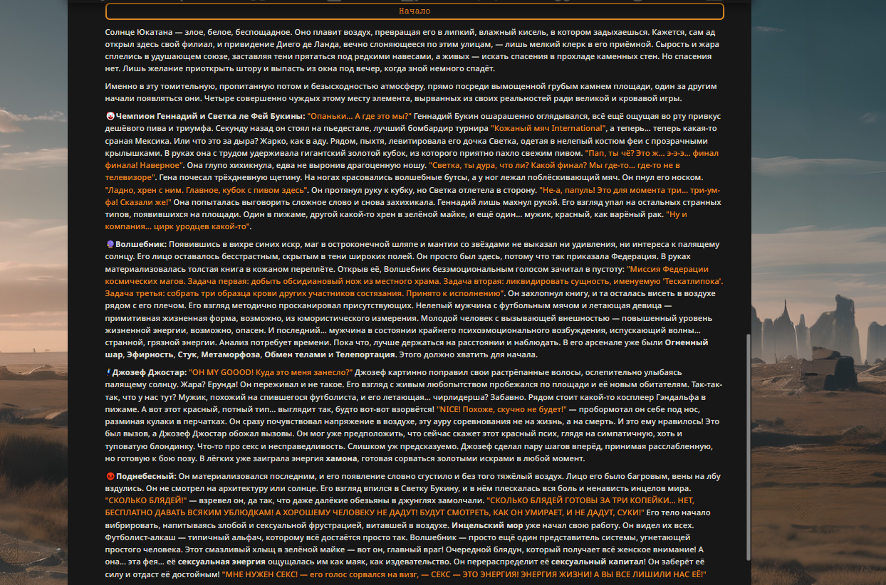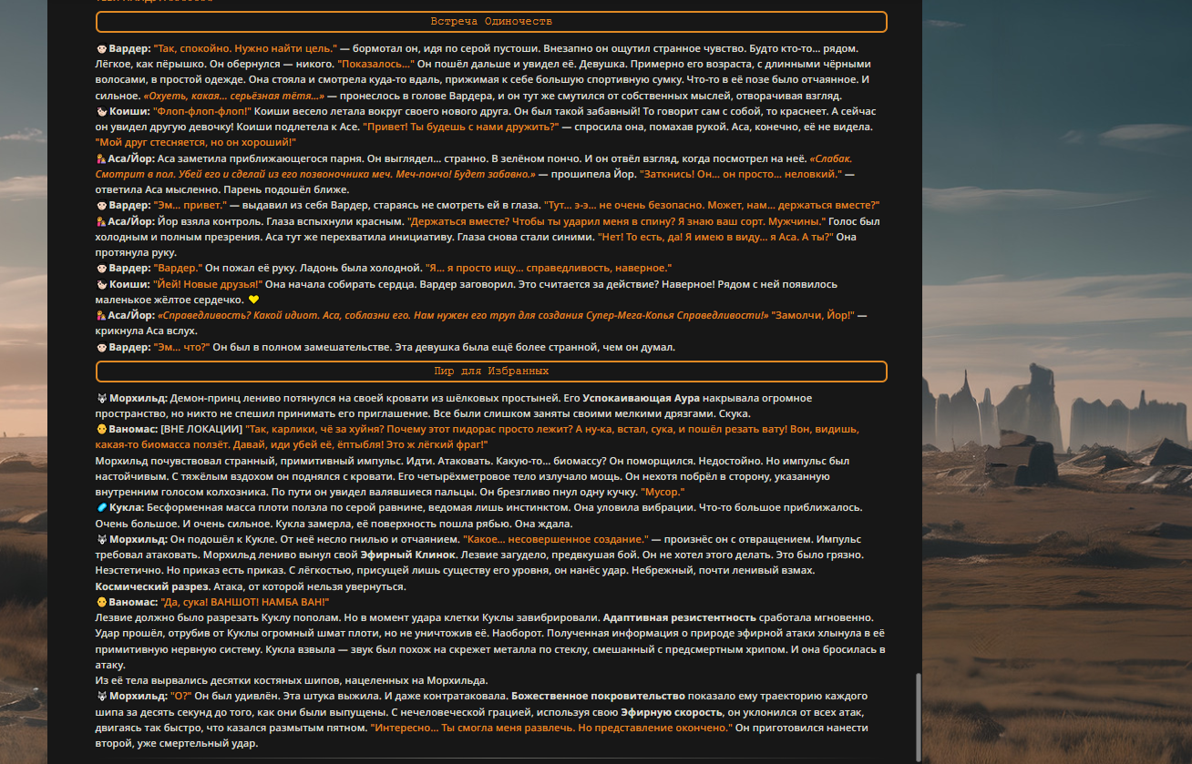 Переписанный пресет Скайнета с дополнениями. Больший упор на сюжет, управляется одной рукой без нужды писать в чат.