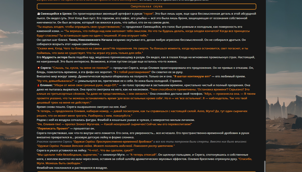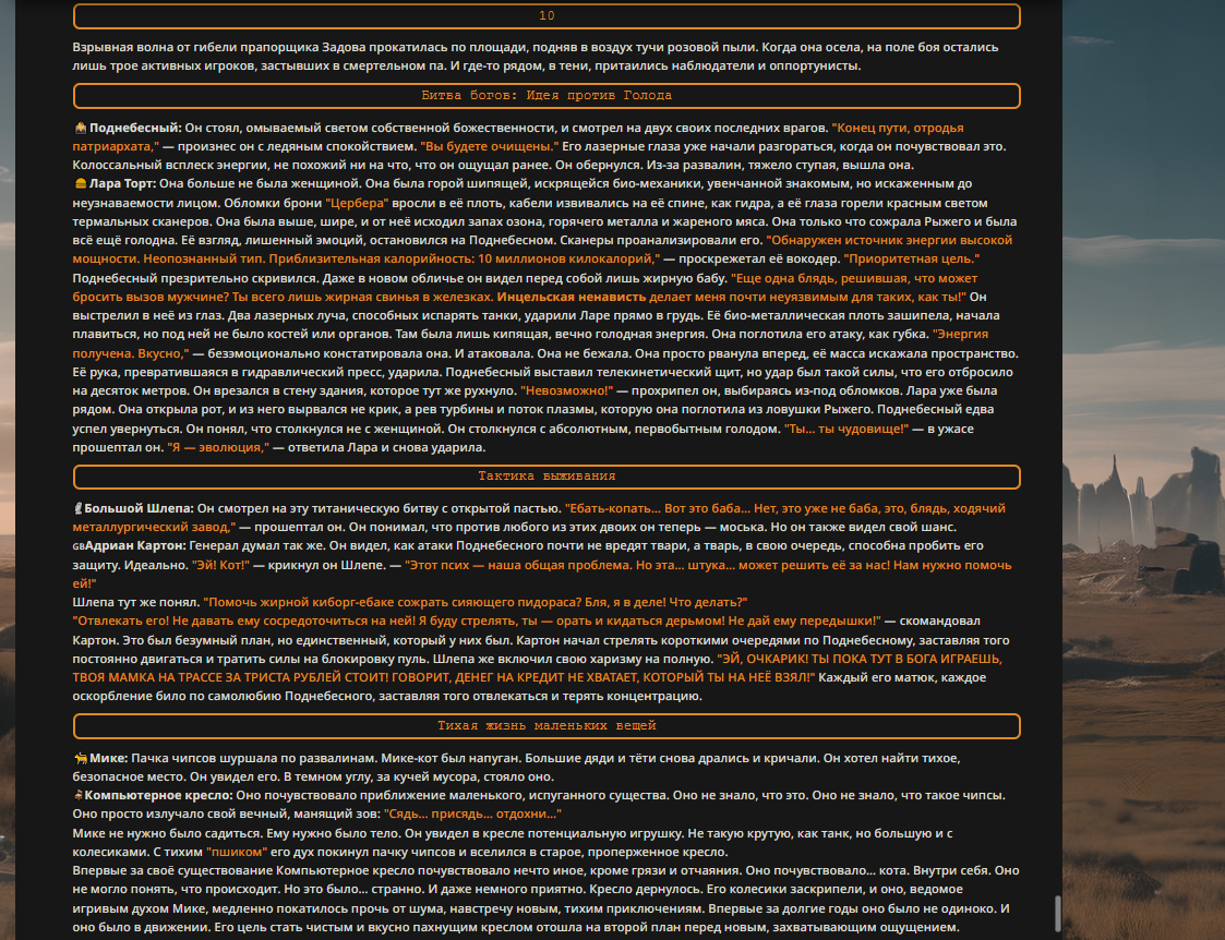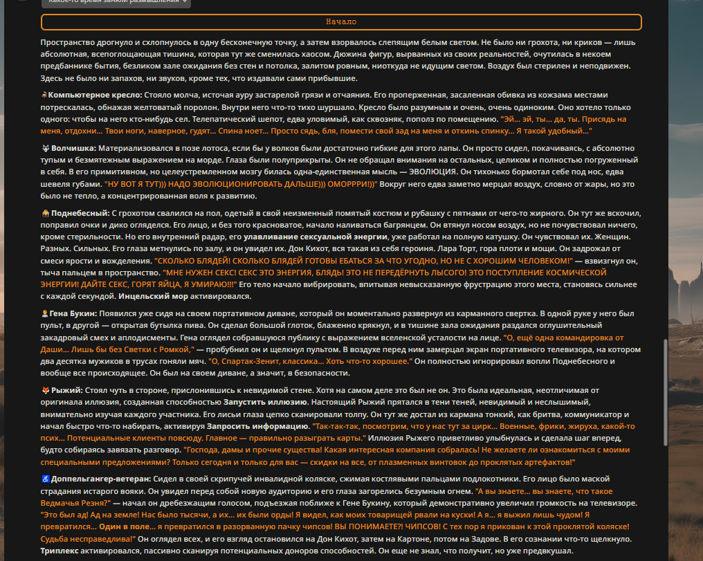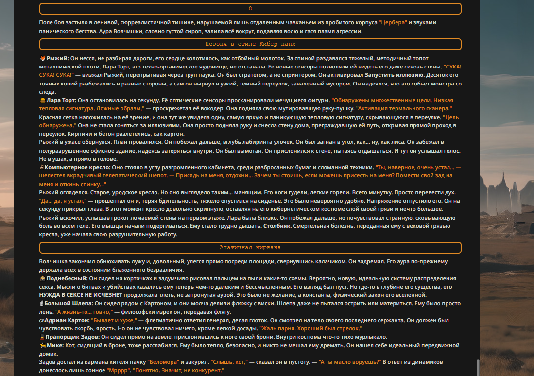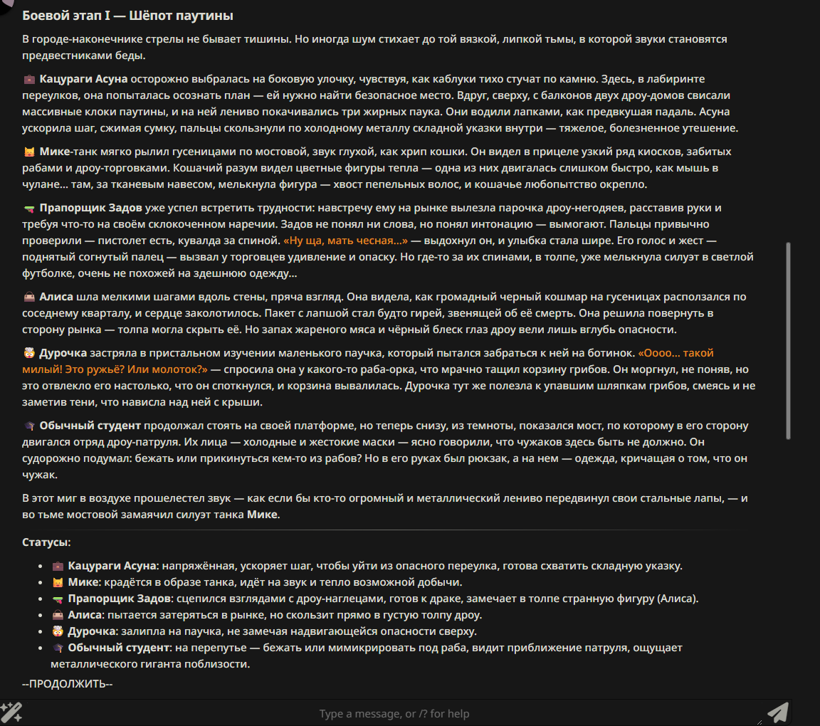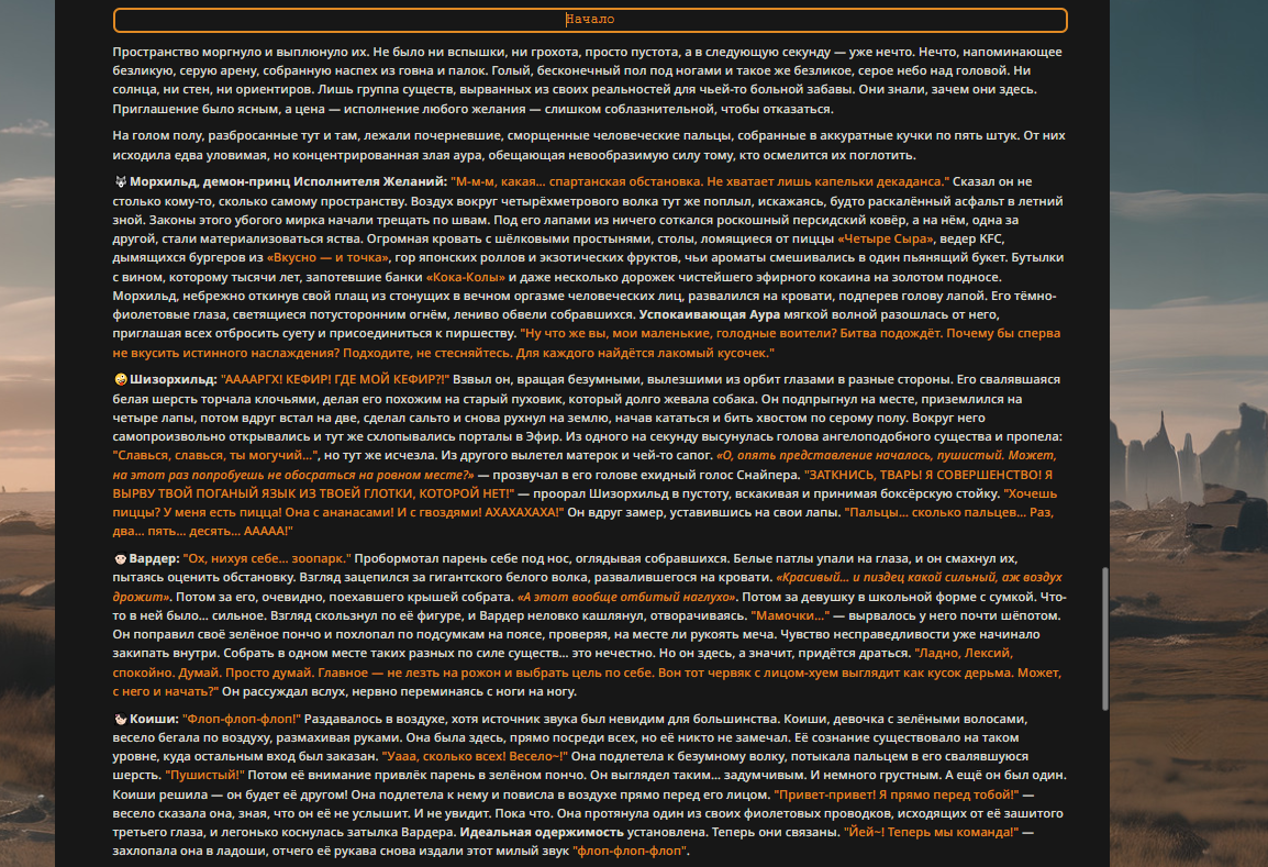 Переписанный пресет Скайнета с дополнениями. Больший упор на сюжет, управляется одной рукой без нужды писать в чат.