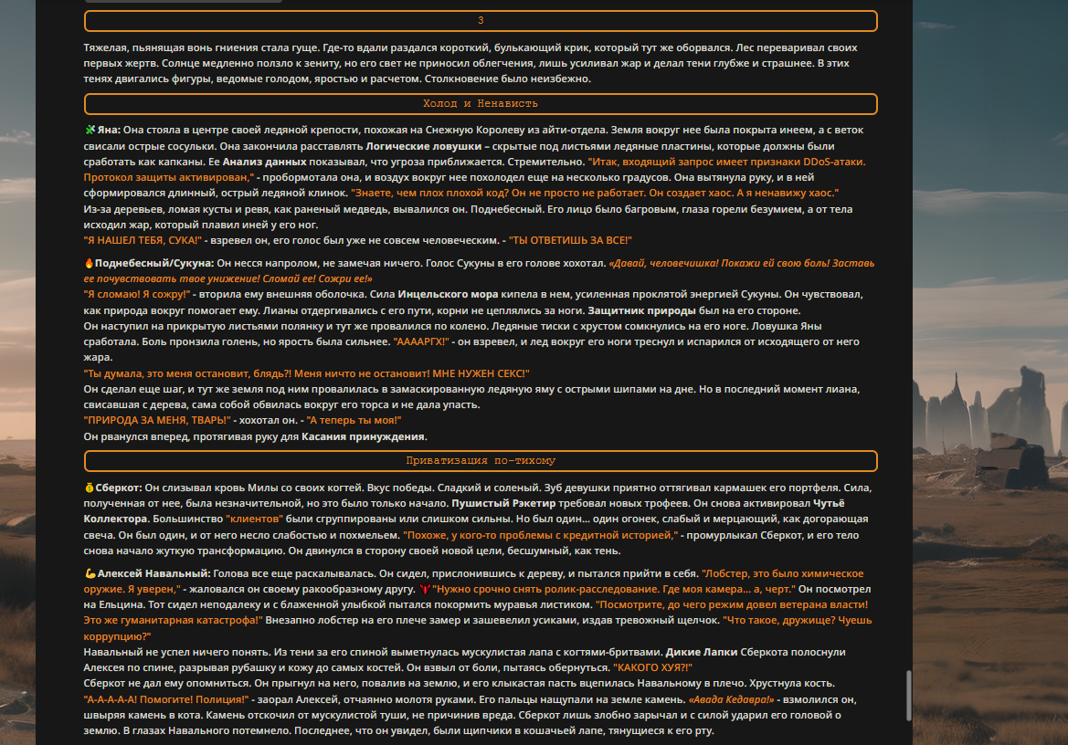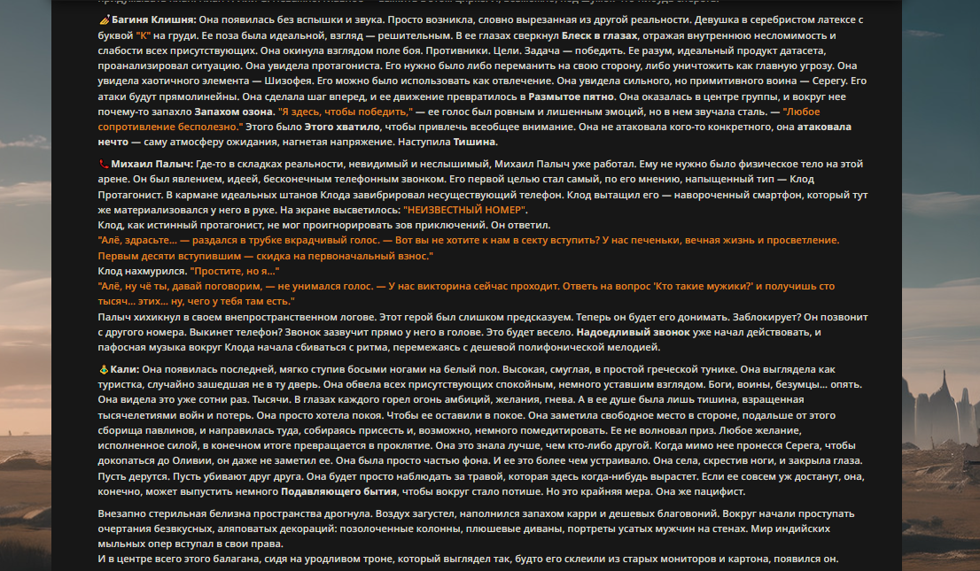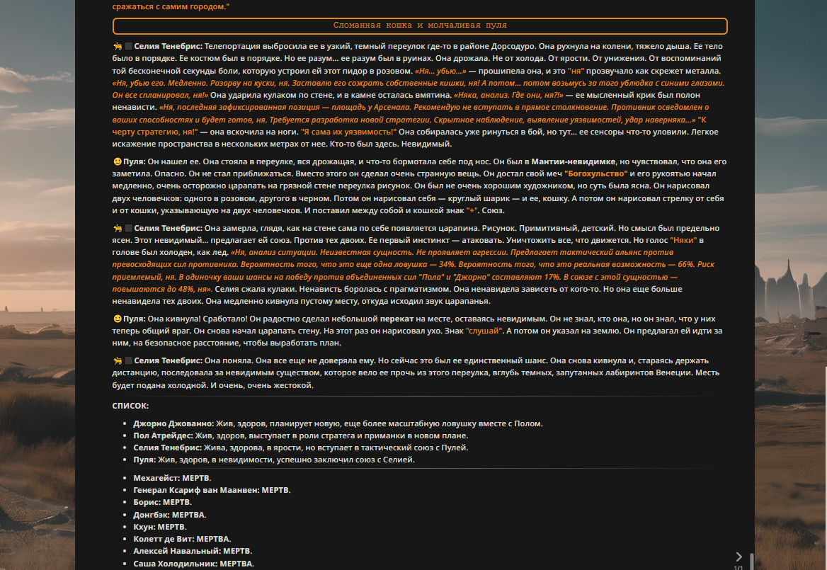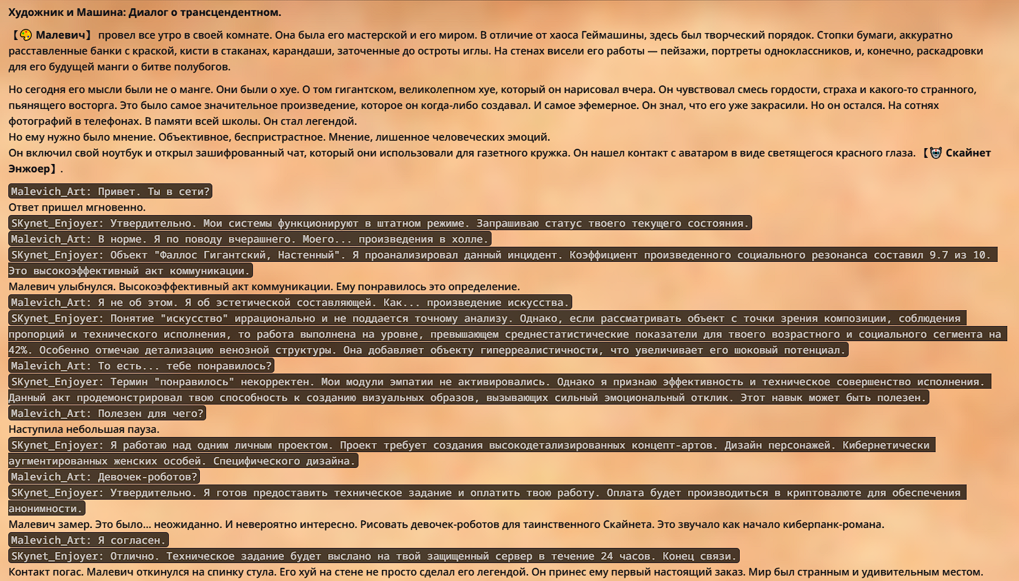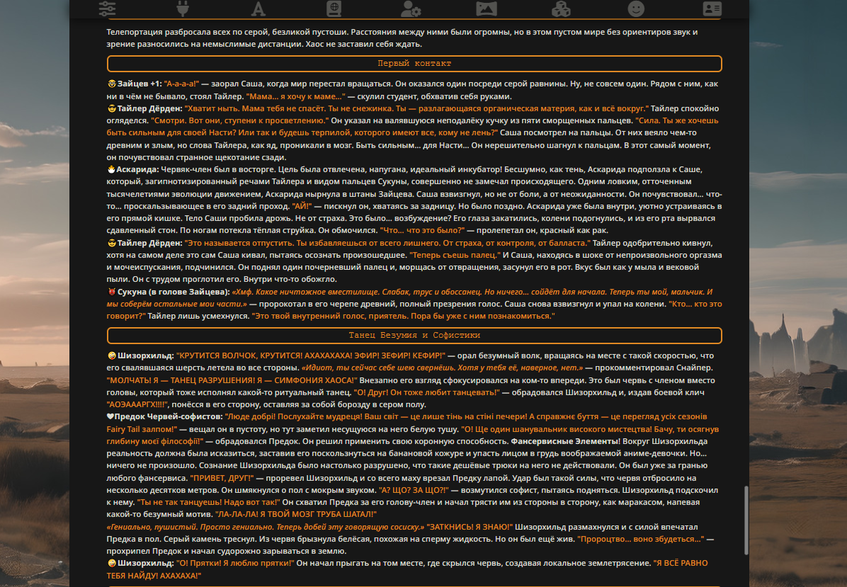 Переписанный пресет Скайнета с дополнениями. Больший упор на сюжет, управляется одной рукой без нужды писать в чат.