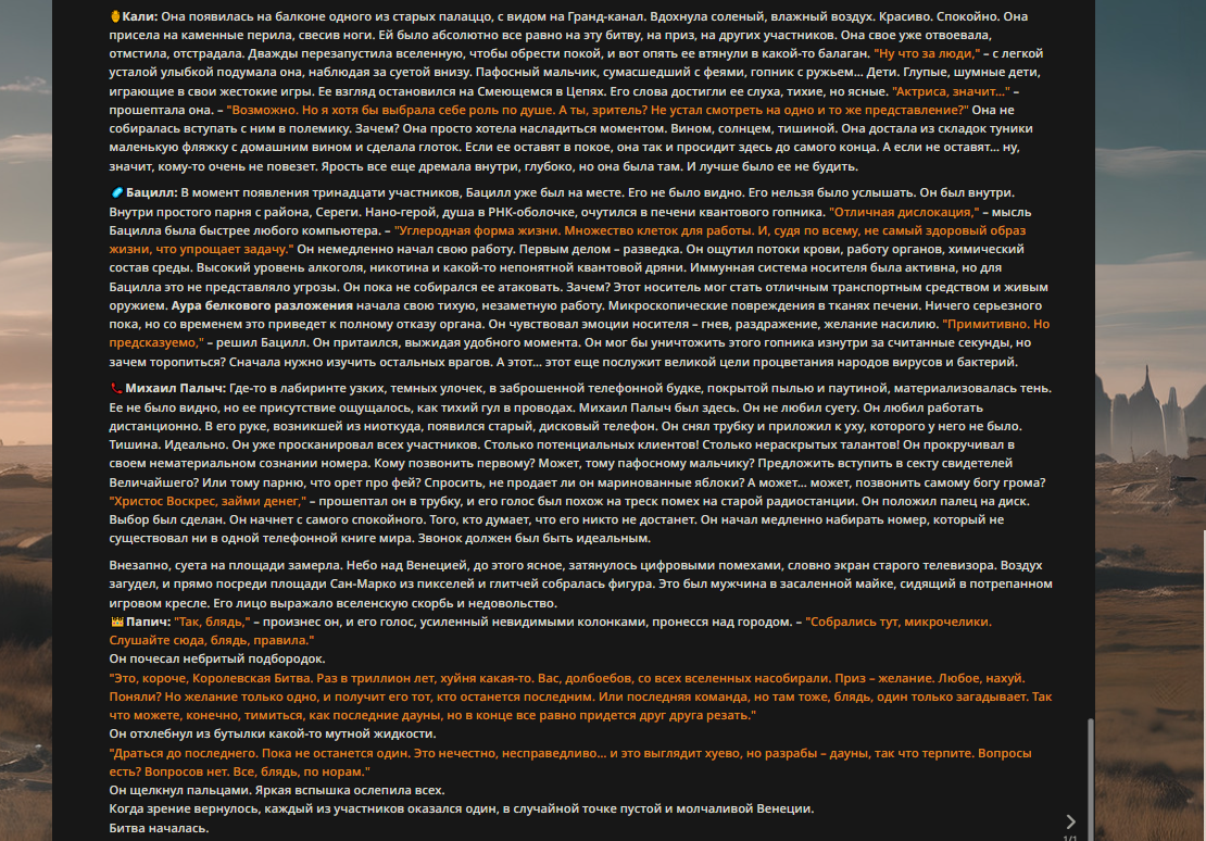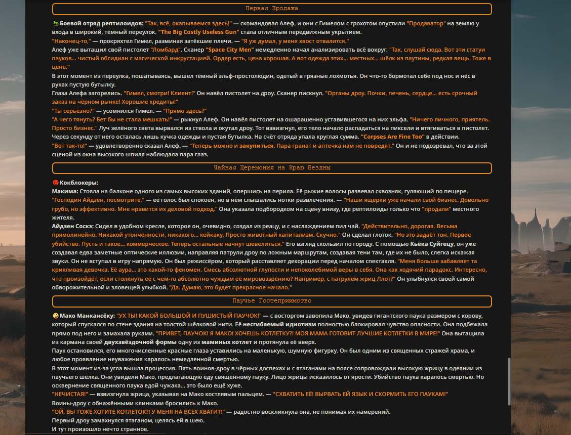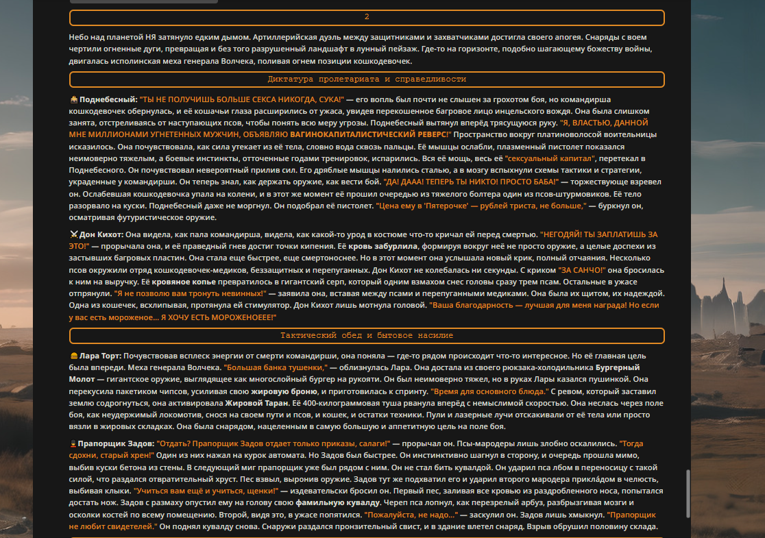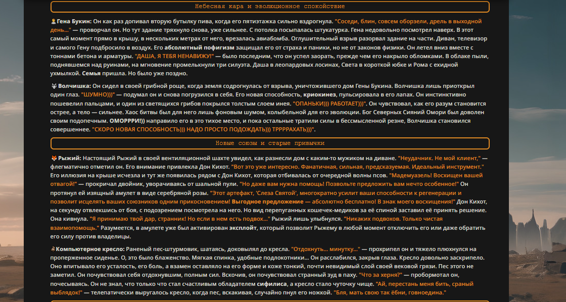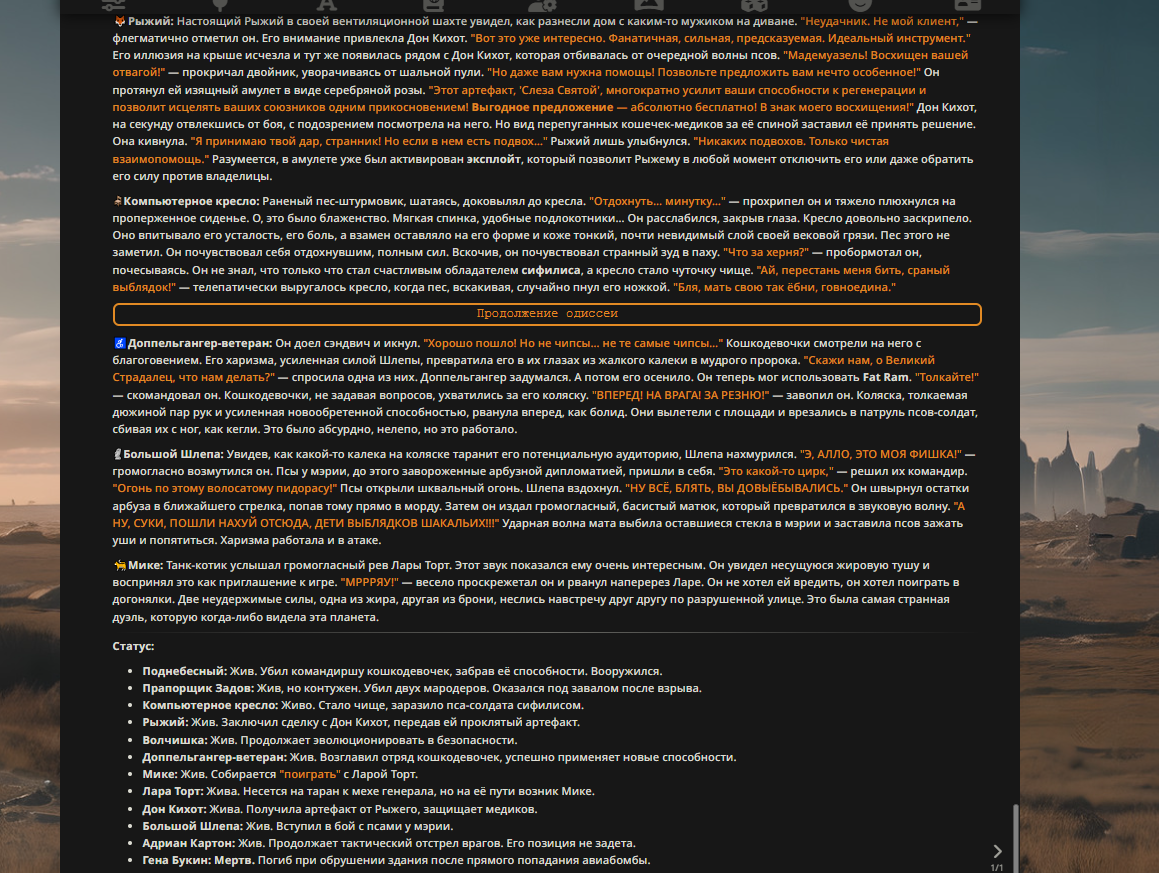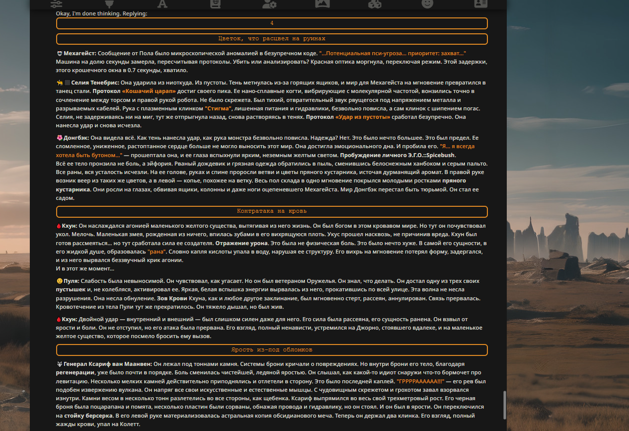 Переписанный пресет Скайнета с дополнениями. Больший упор на сюжет, управляется одной рукой без нужды писать в чат.
