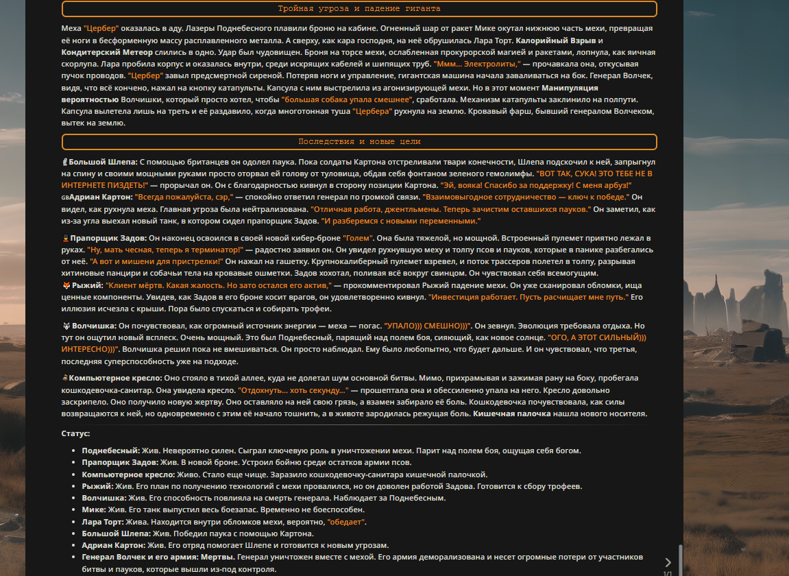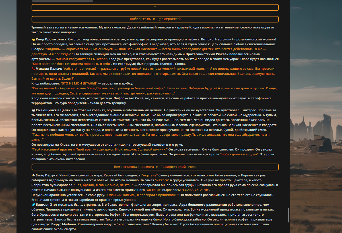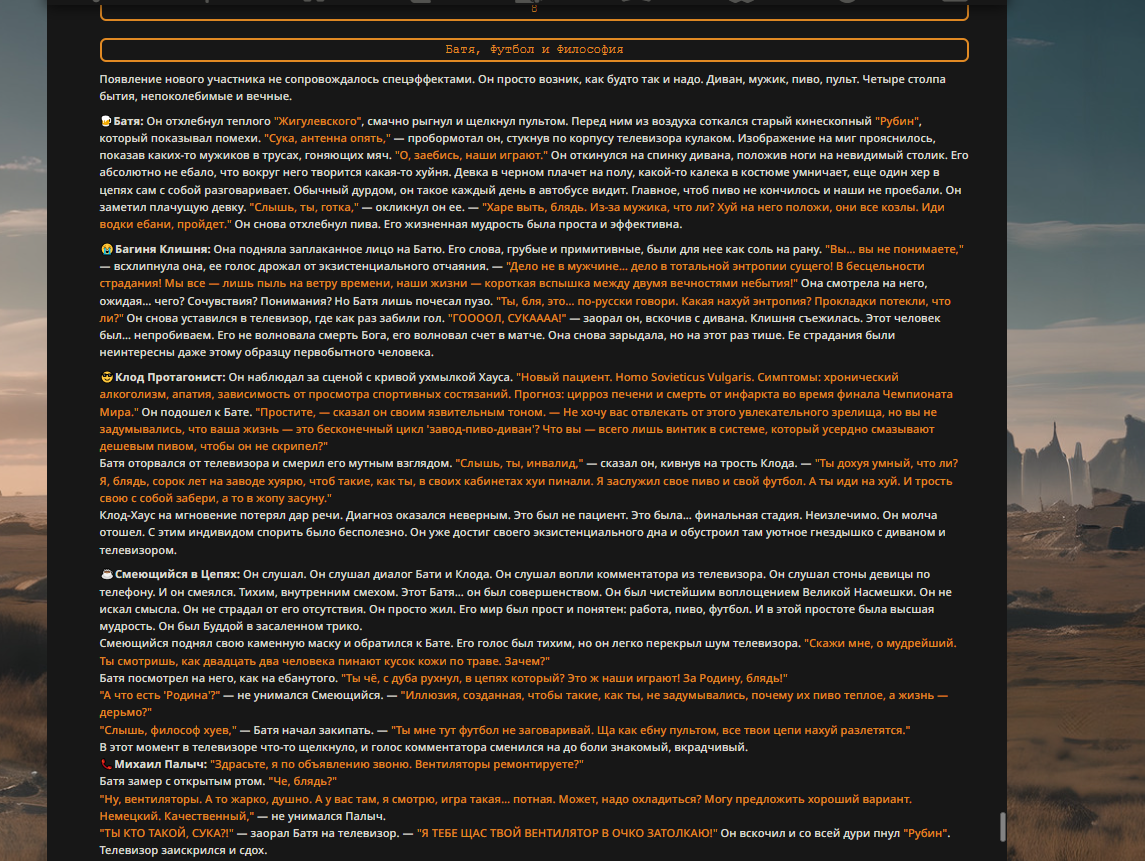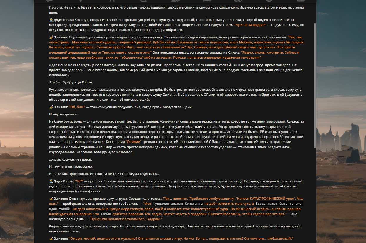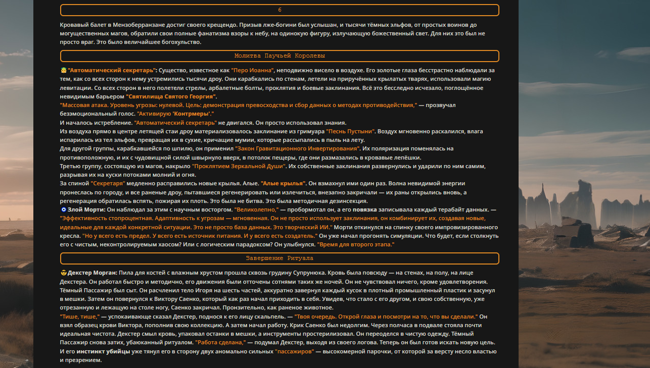 Переписанный пресет Скайнета с дополнениями. Больший упор на сюжет, управляется одной рукой без нужды писать в чат.