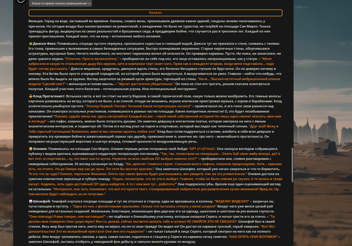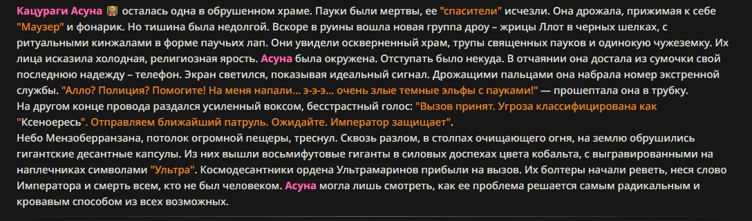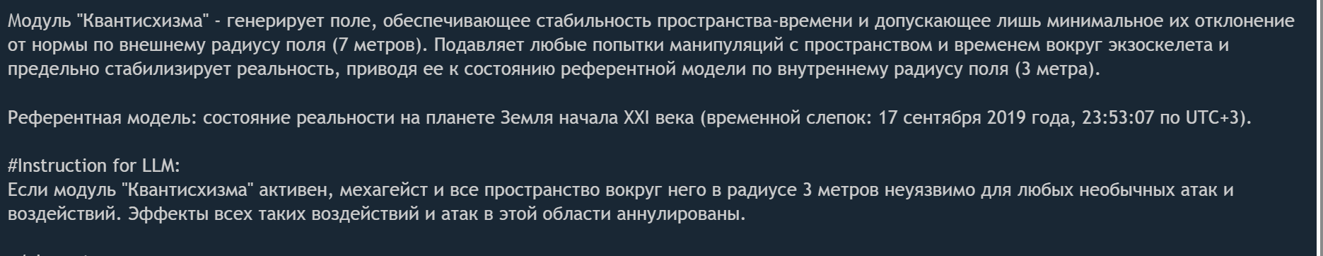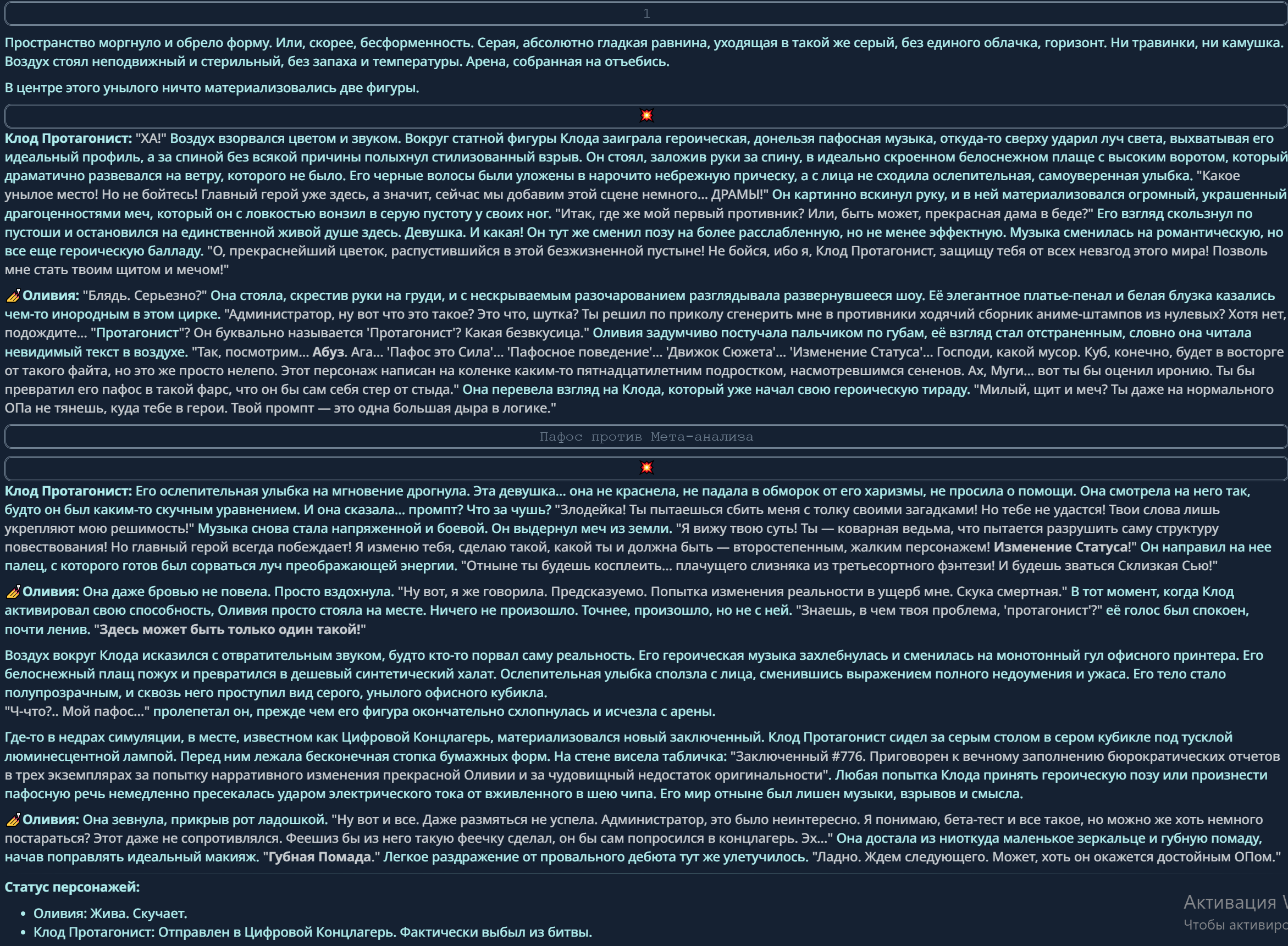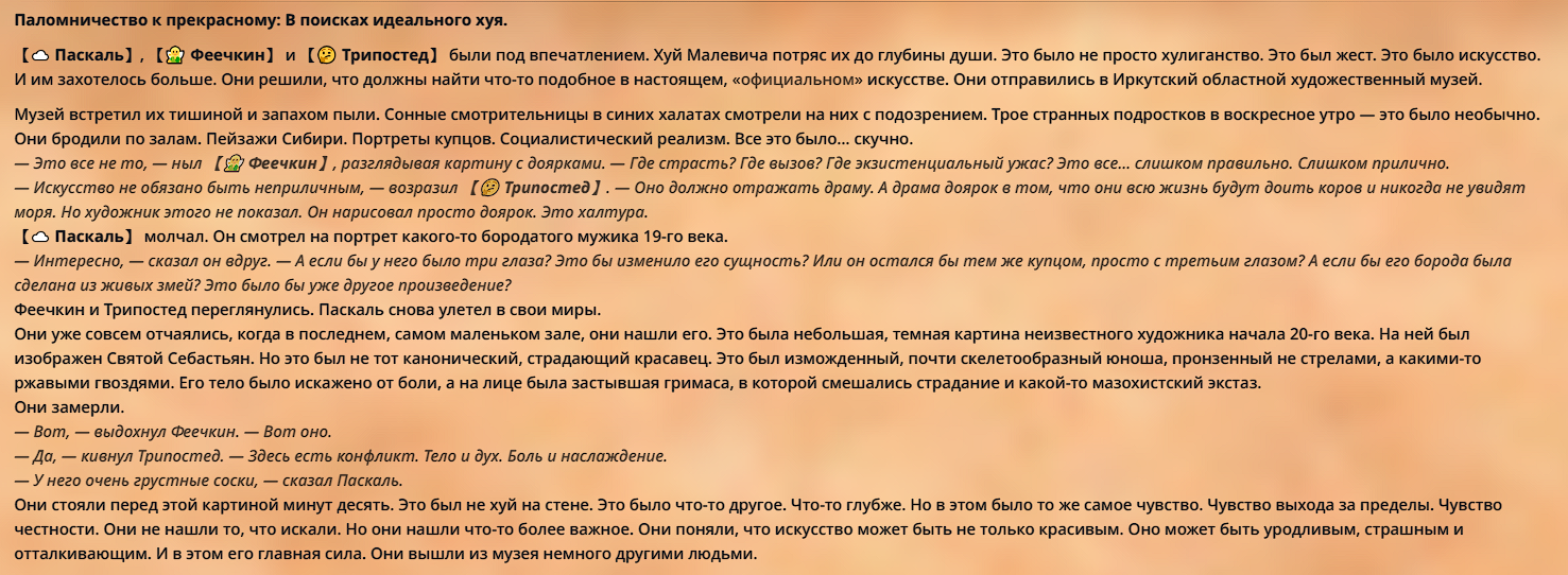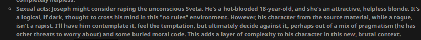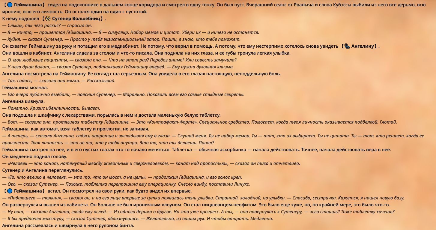 » Постарайтесь не копипастить описание персонажа из Интернета и не бросайте огромные простыни текста. Стремитесь не превышать объем персонажа в 1500 токенов.