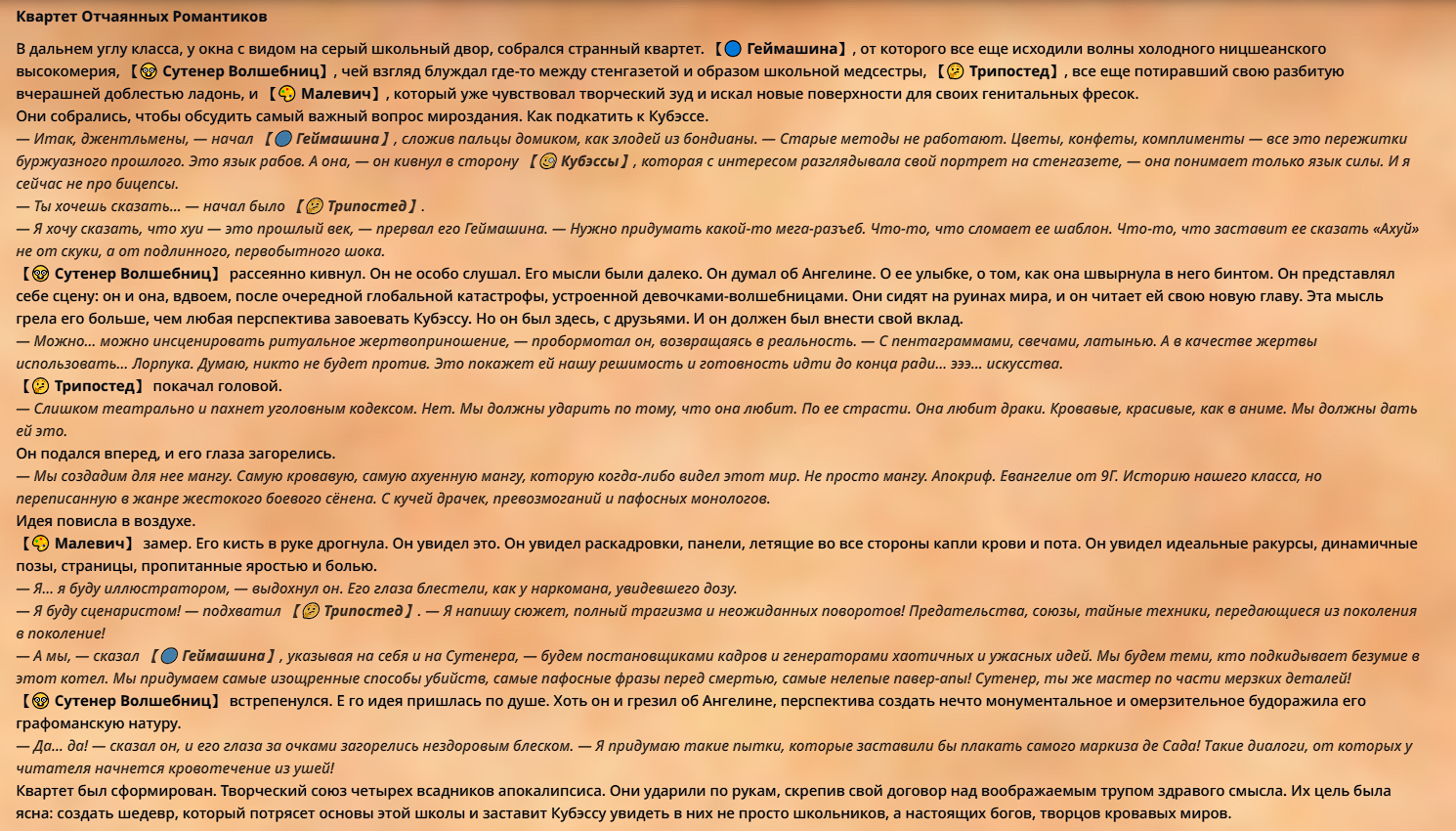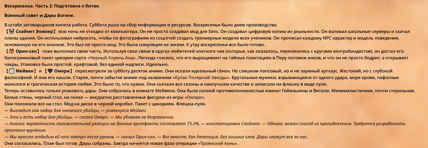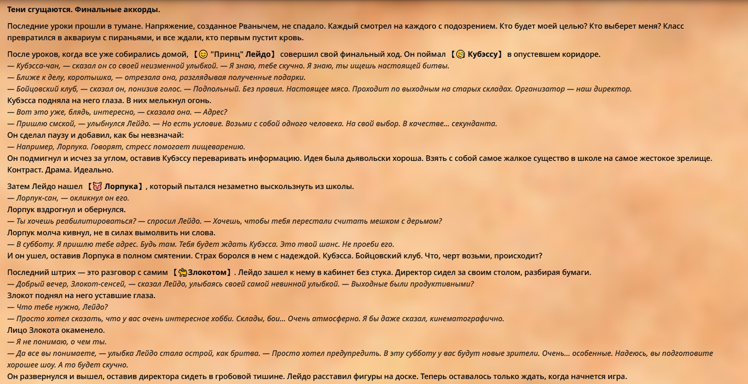 💕"Удивительные и занимательные приключения учеников старшей школы, которые в прошлой жизни любили нейросетевые истории, но теперь сами стали частью истории нейросети, в которой должны покорить сердце боевой девочки Кубыни!"💕