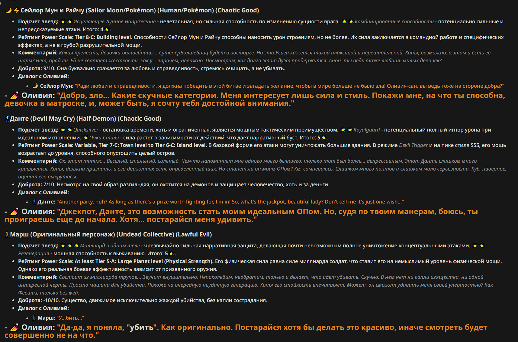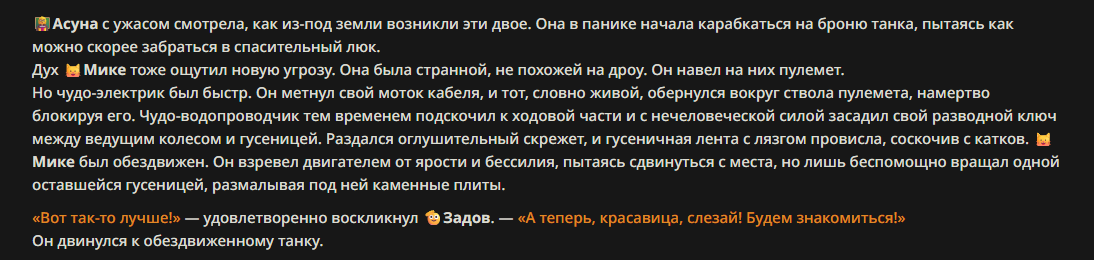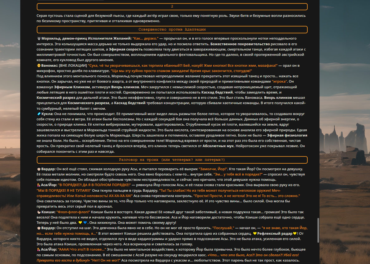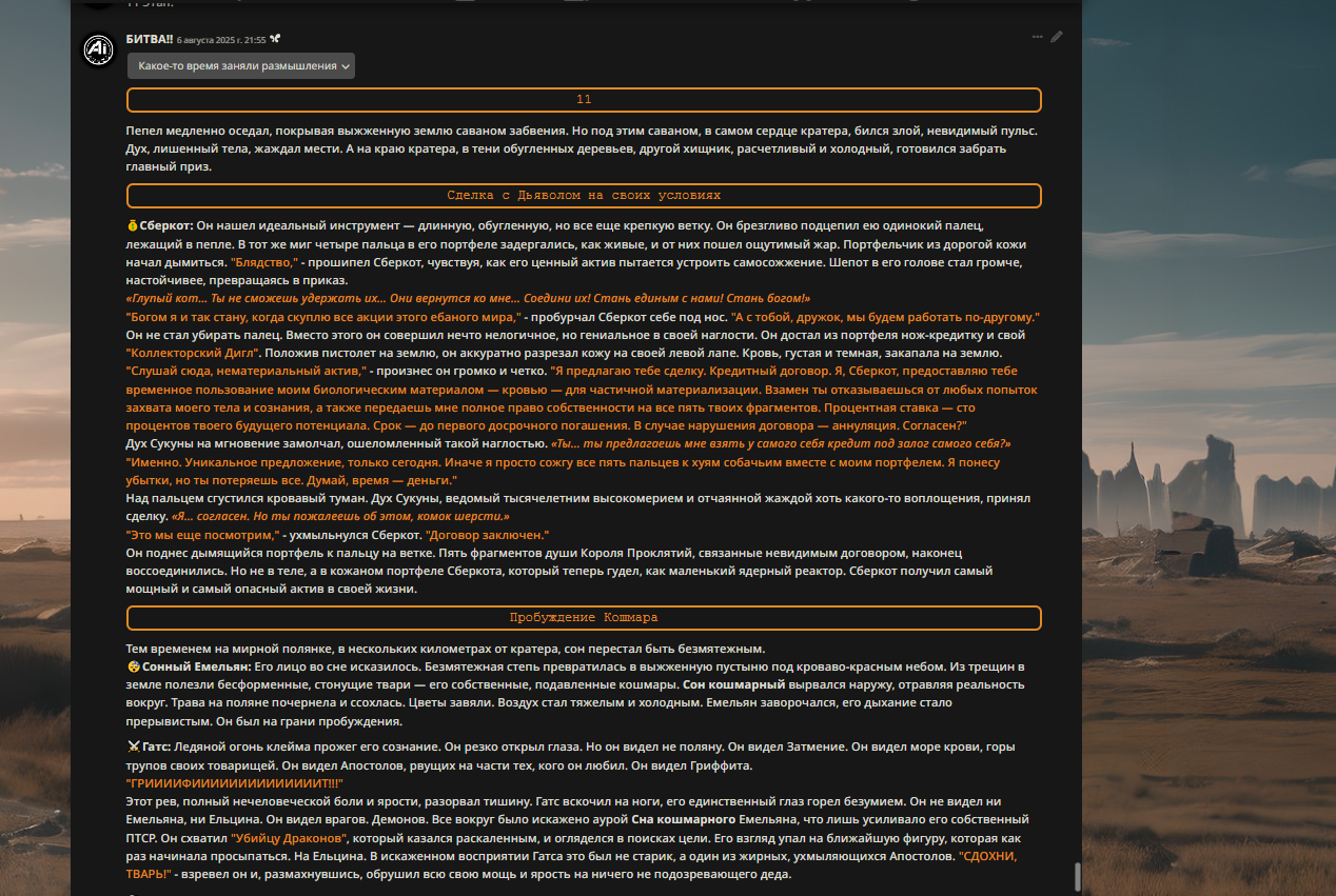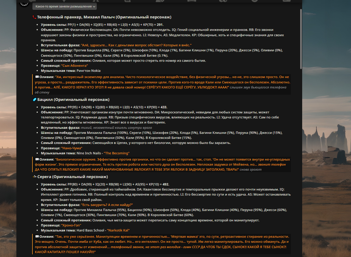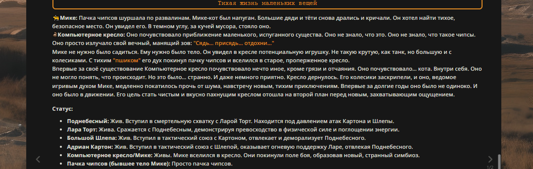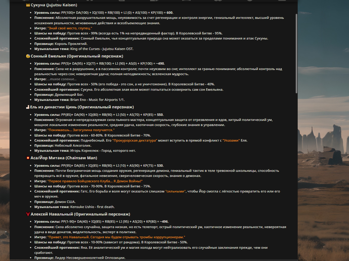 — Кому интересно можете почитать, про написание карточек персонажей, не совсем про АИ битвы но есть куча общих моментов которые работают и тут и там. 🦊