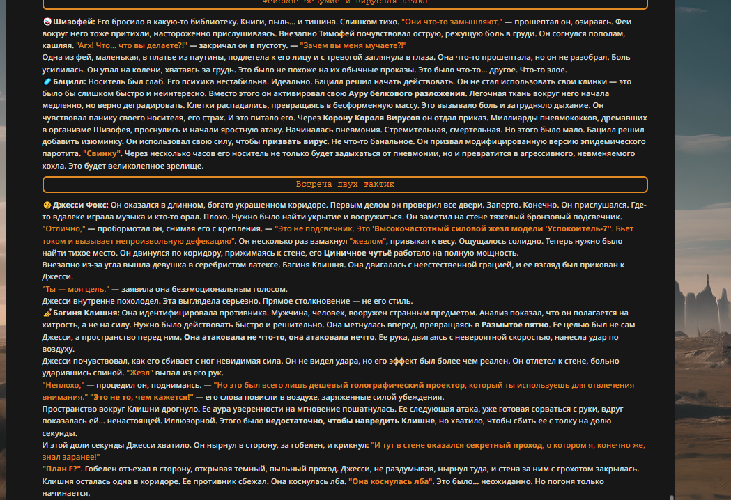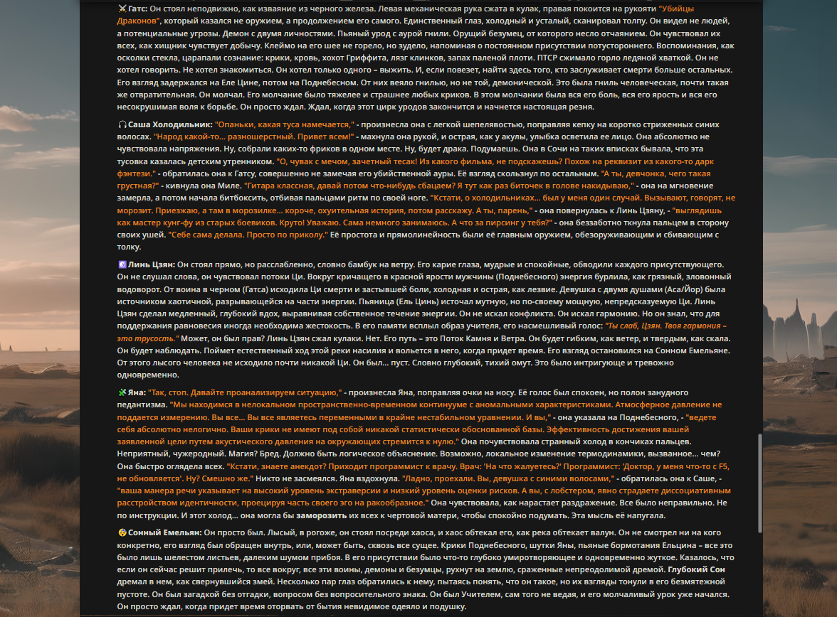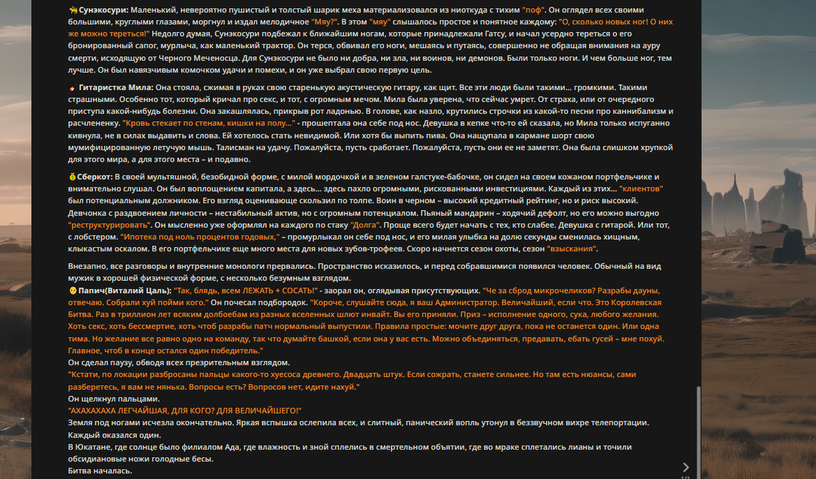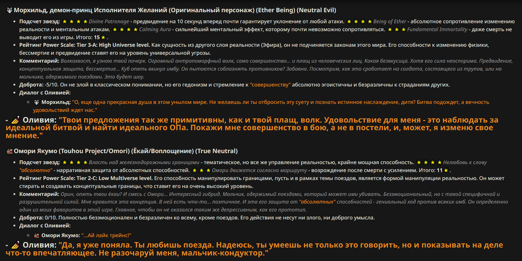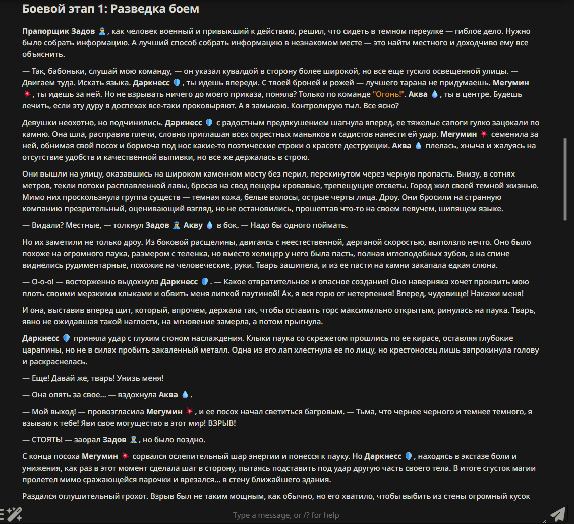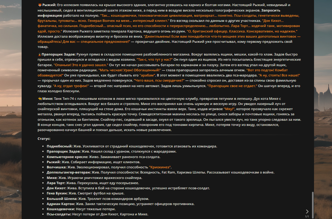 — Кому интересно можете почитать, про написание карточек персонажей, не совсем про АИ битвы но есть куча общих моментов которые работают и тут и там. 🦊