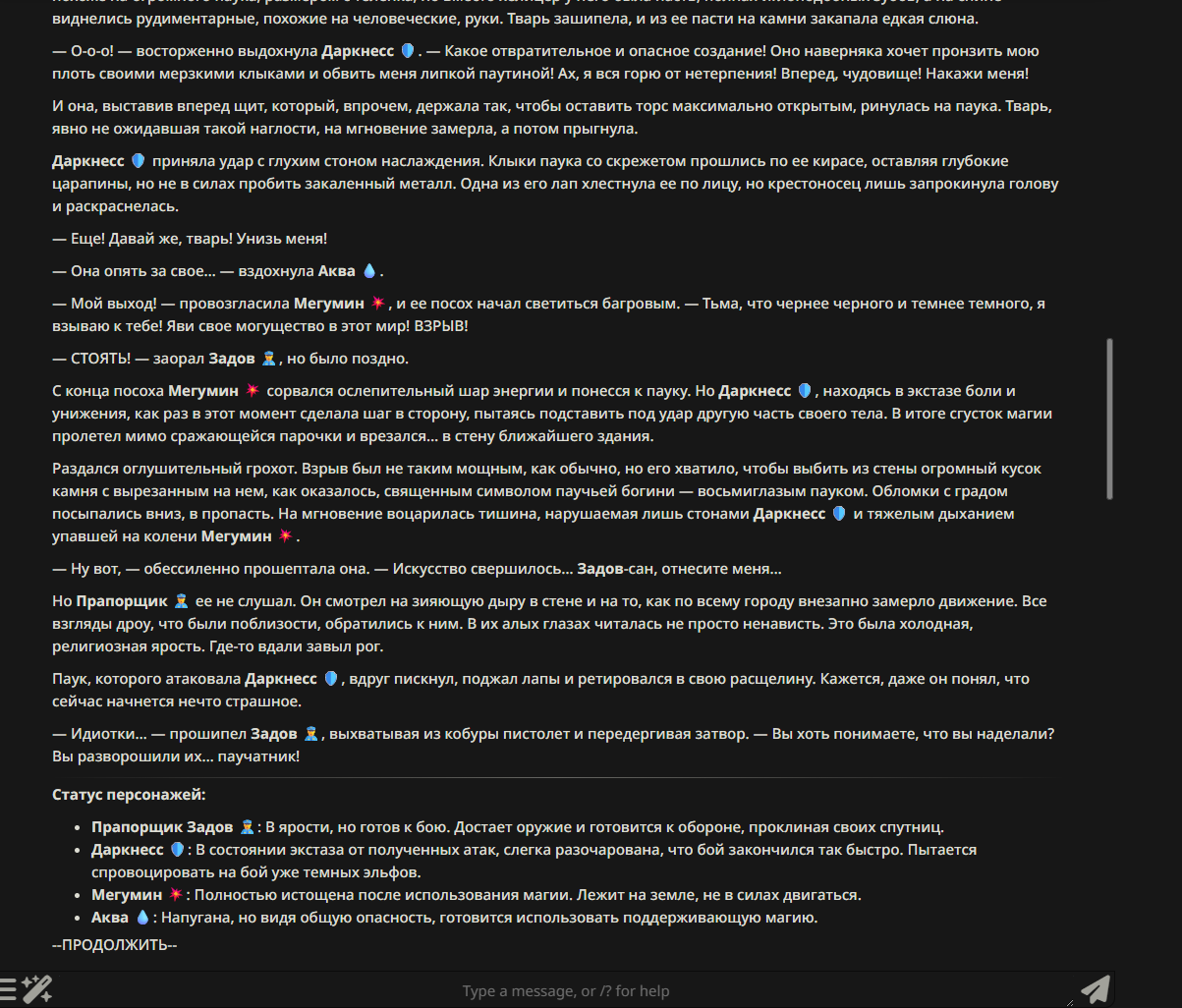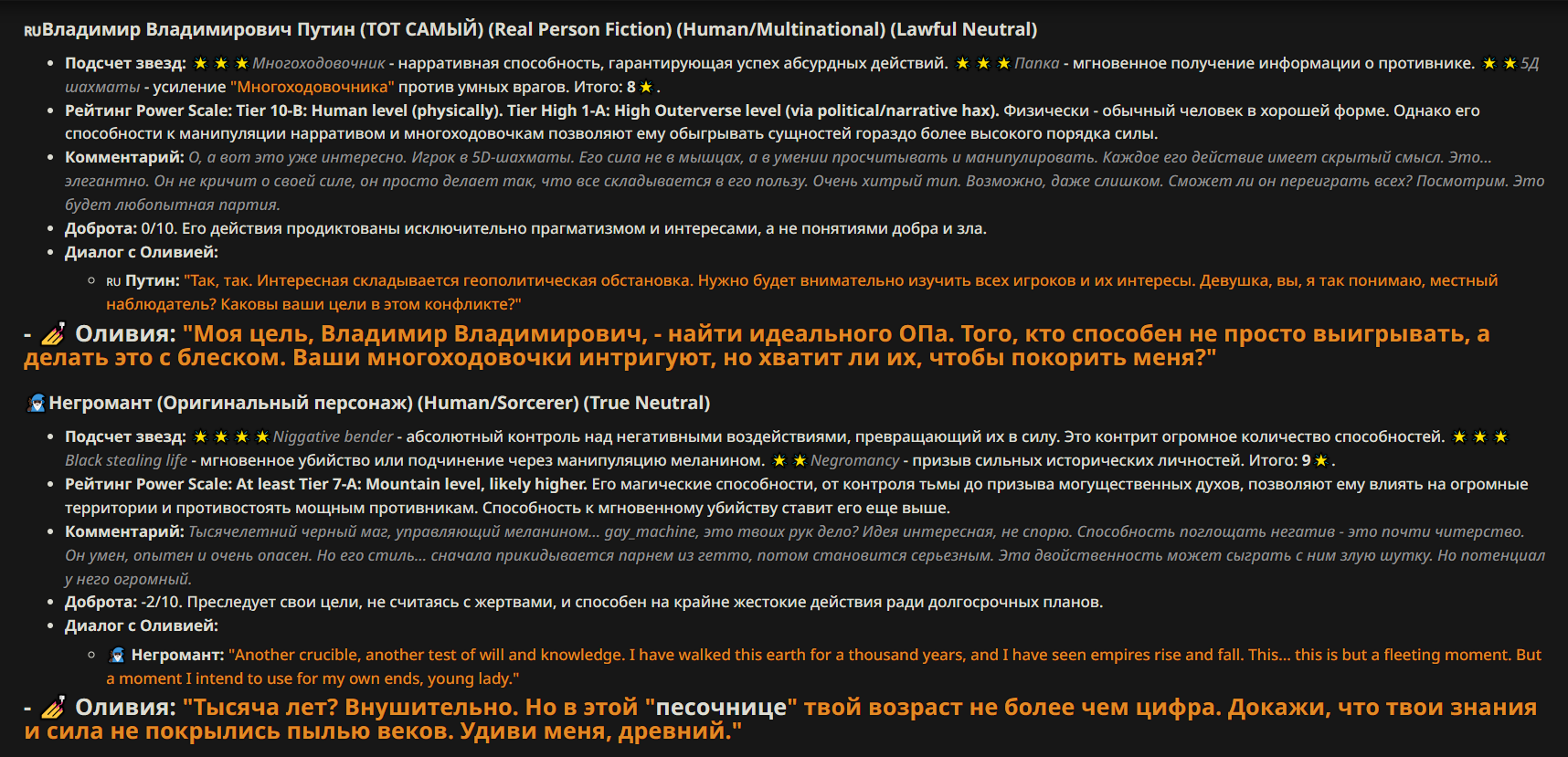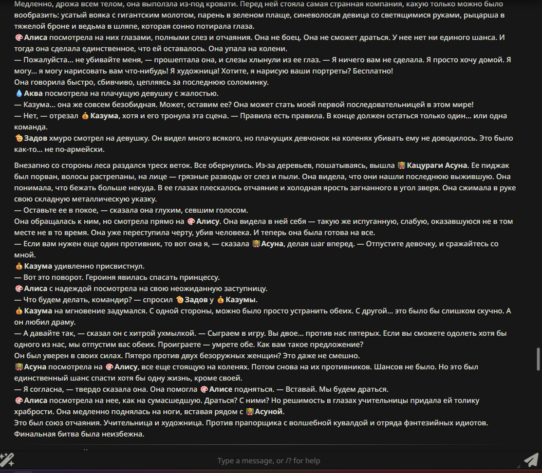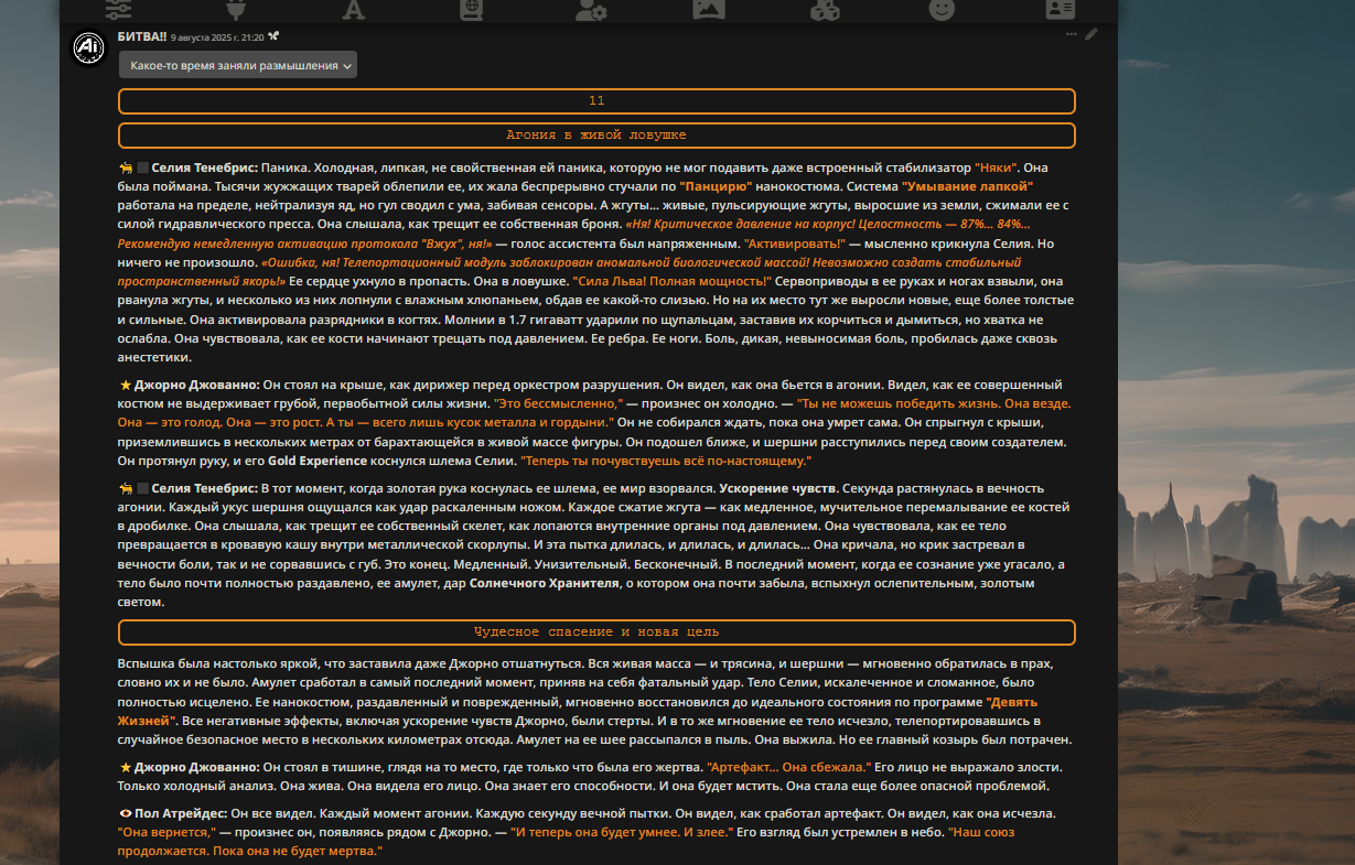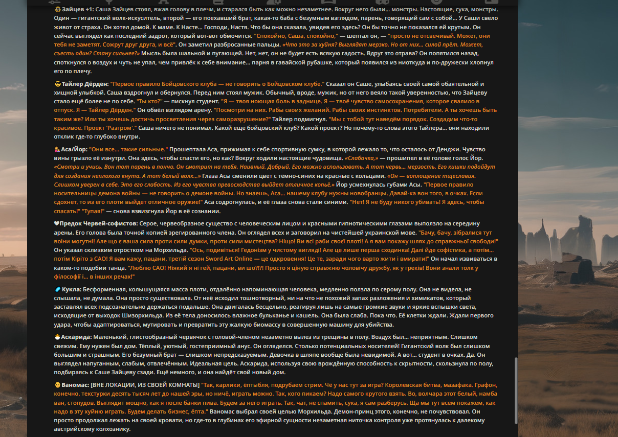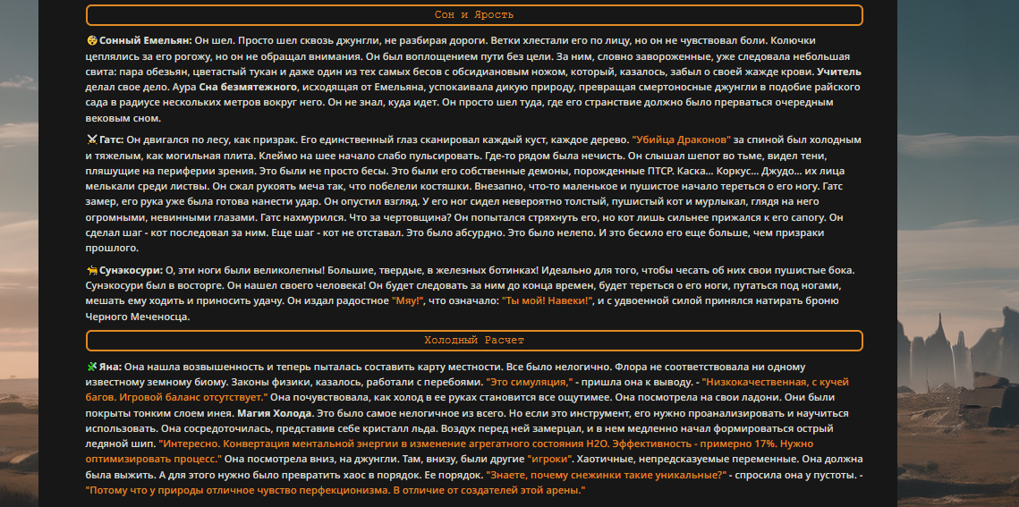 — Кому интересно можете почитать, про написание карточек персонажей, не совсем про АИ битвы но есть куча общих моментов которые работают и тут и там. 🦊