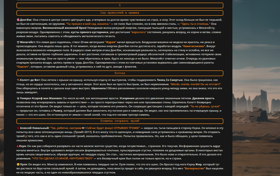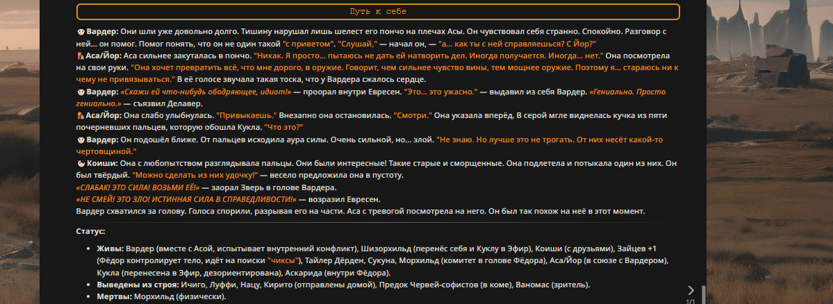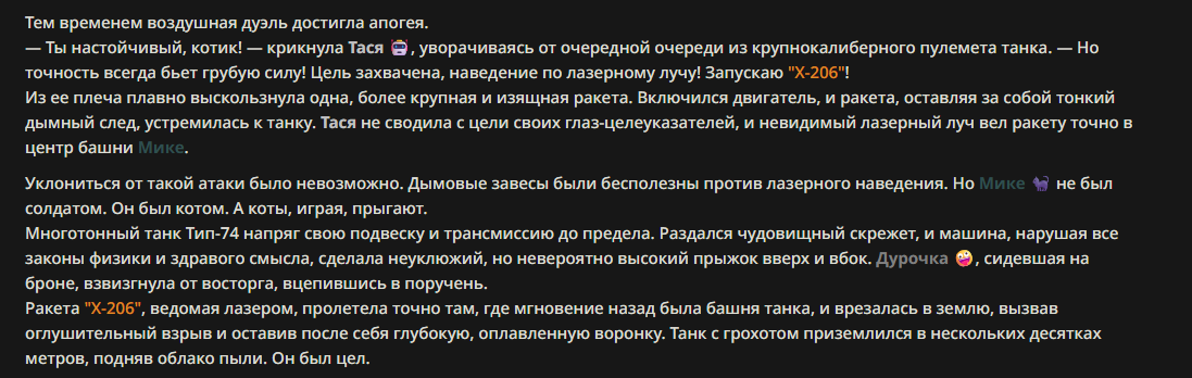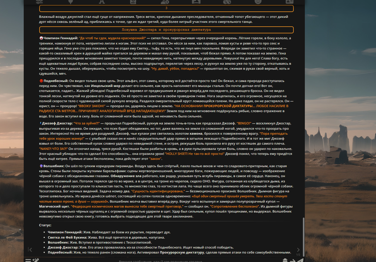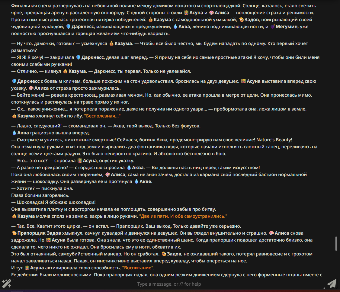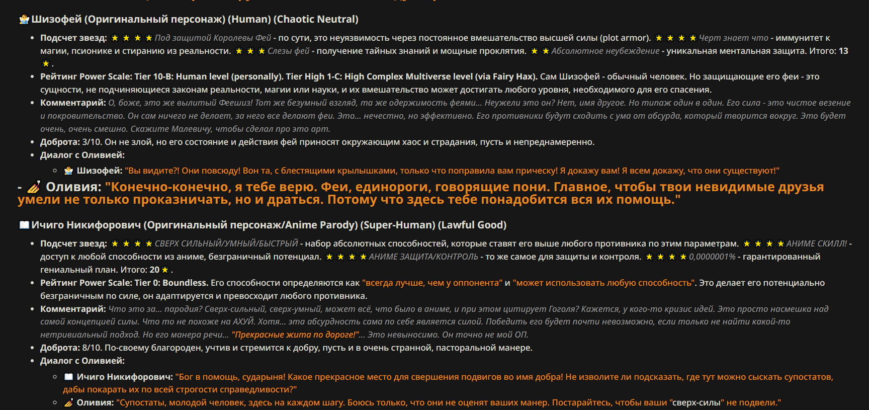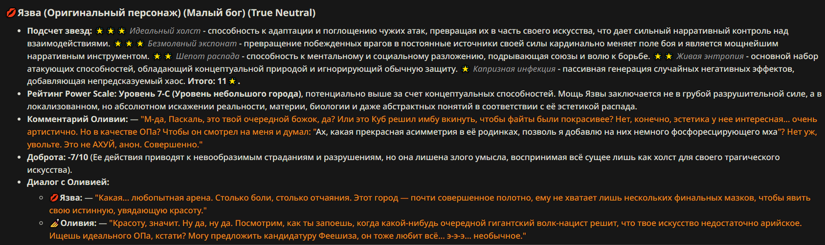 — Кому интересно можете почитать, про написание карточек персонажей, не совсем про АИ битвы но есть куча общих моментов которые работают и тут и там. 🦊