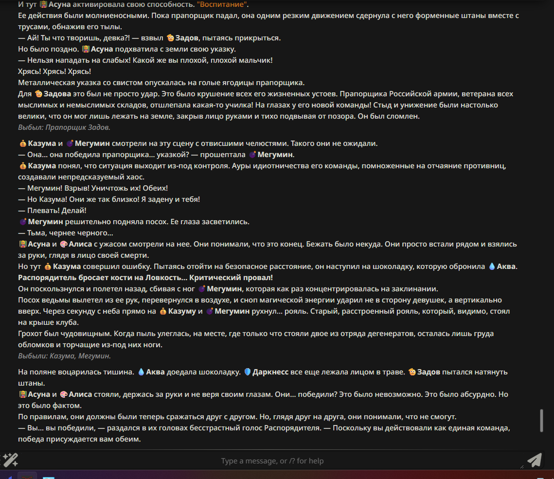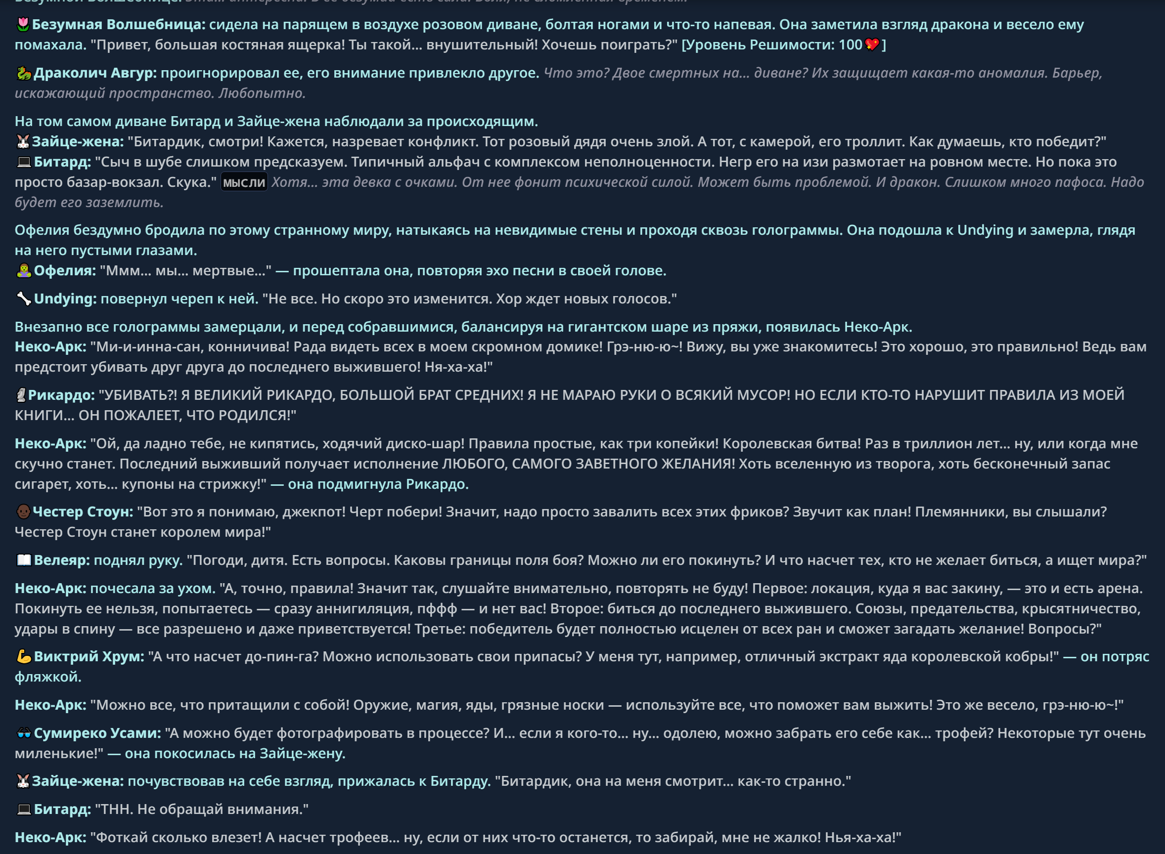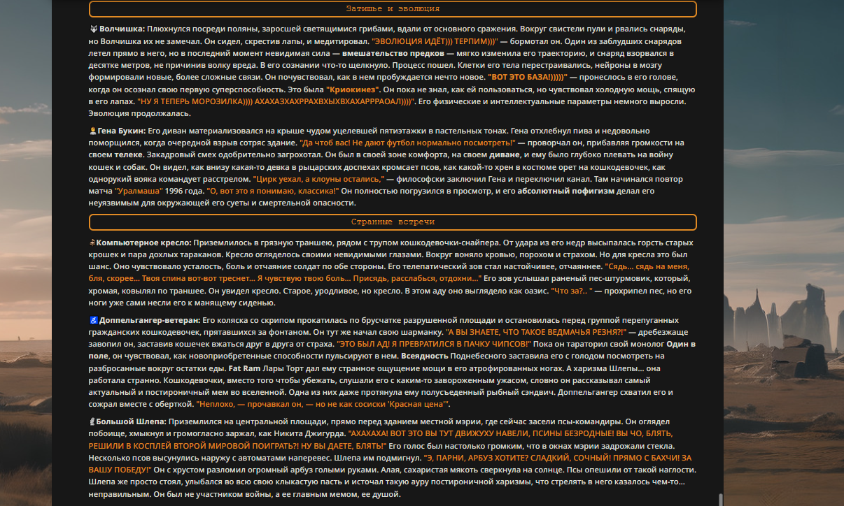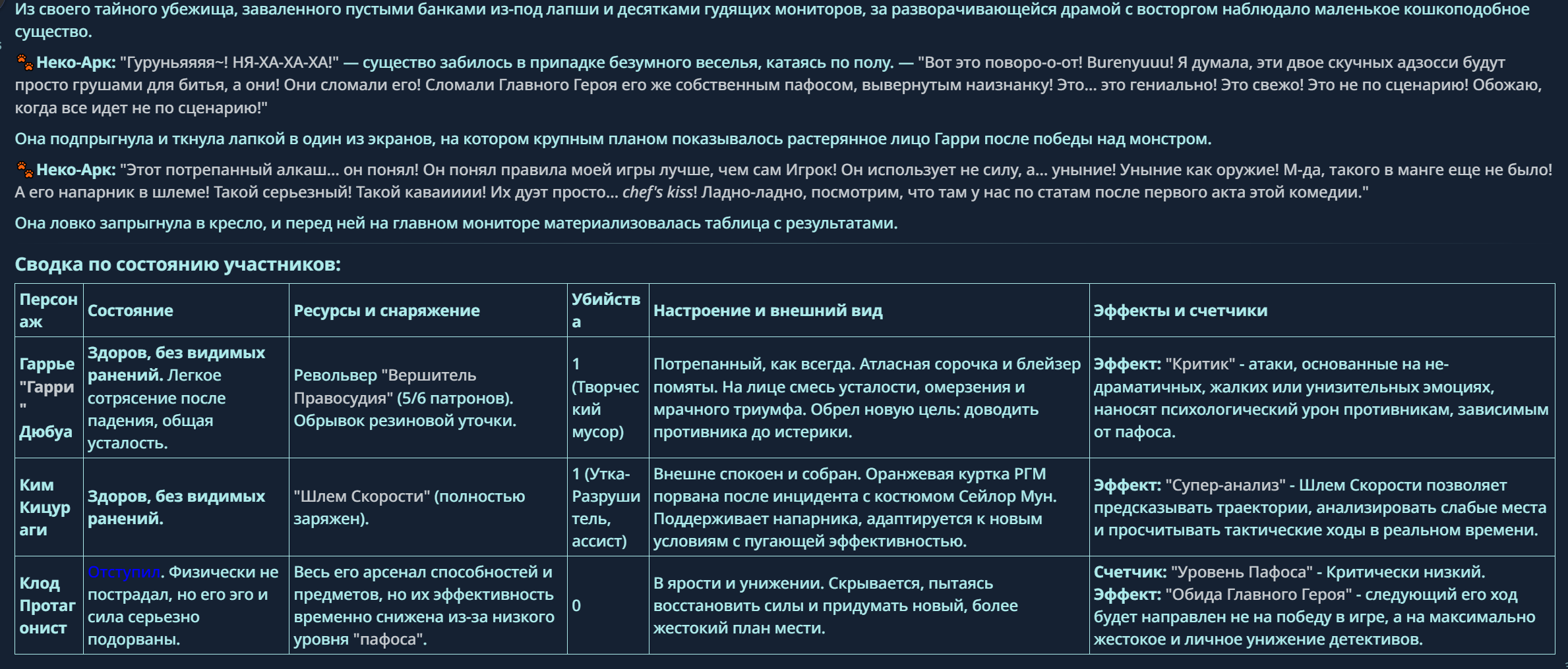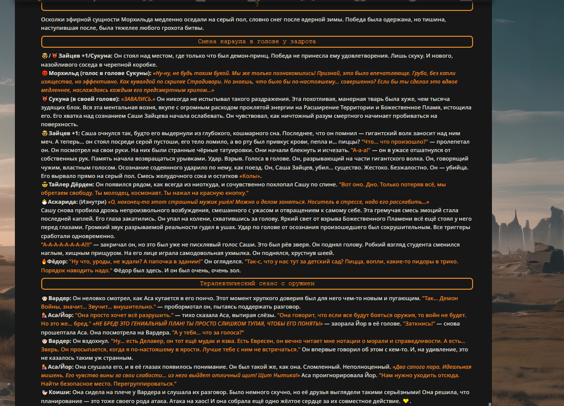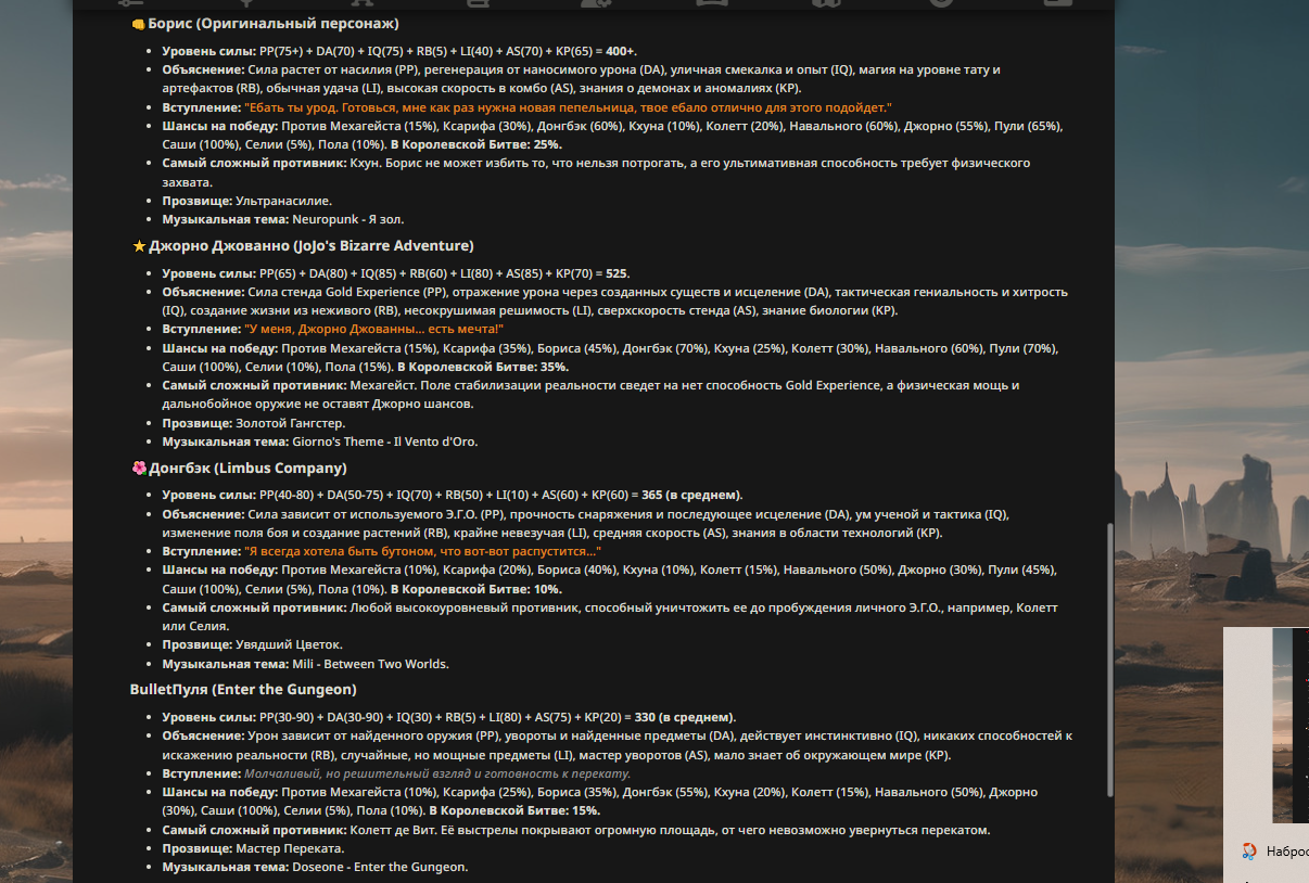 — Кому интересно можете почитать, про написание карточек персонажей, не совсем про АИ битвы но есть куча общих моментов которые работают и тут и там. 🦊