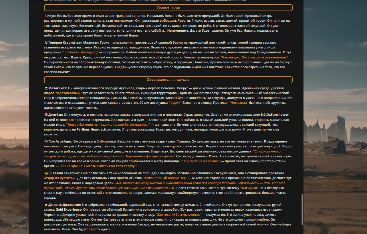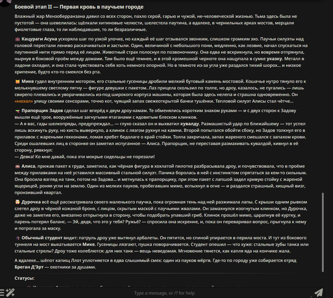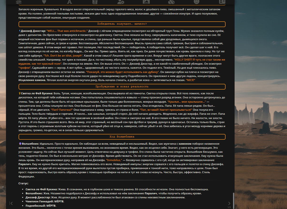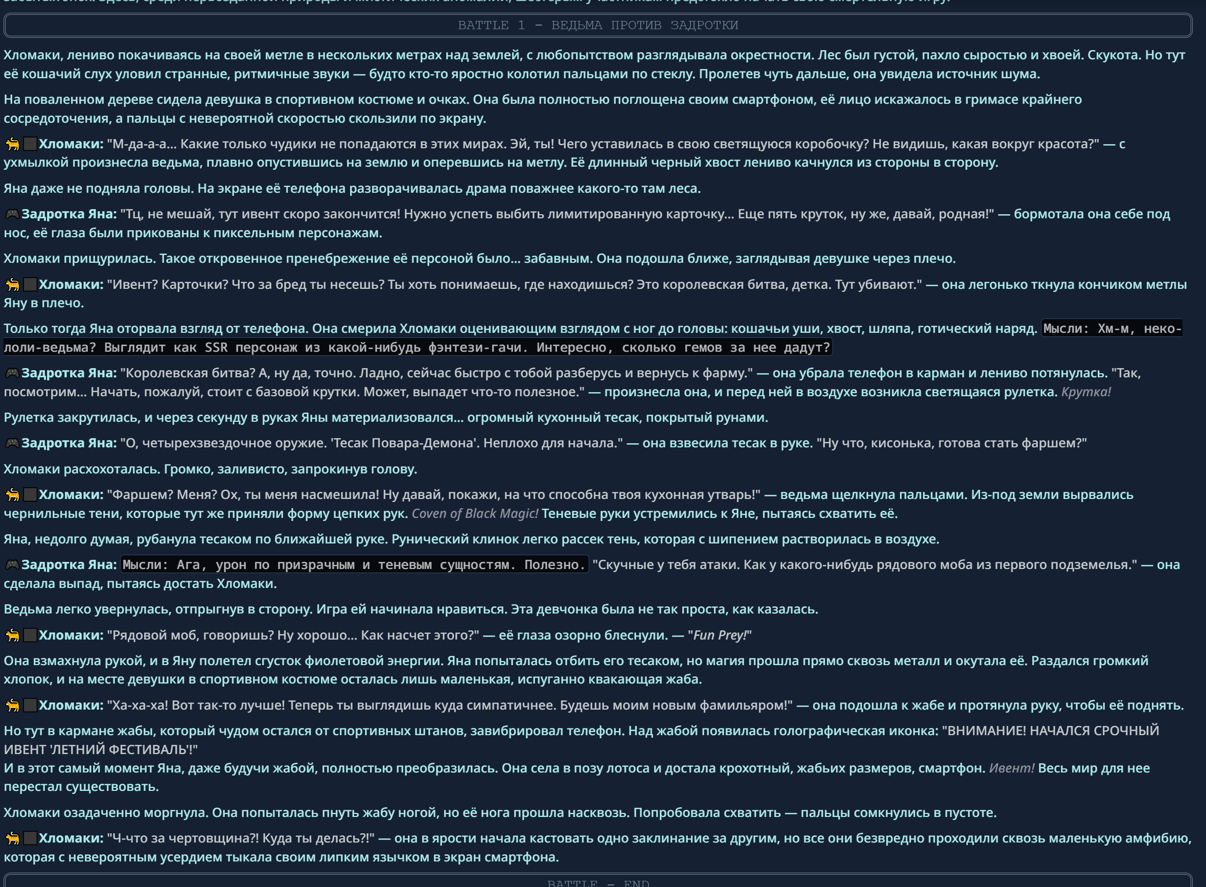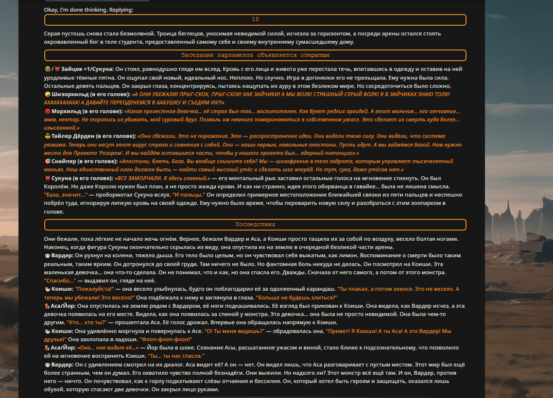 — Кому интересно можете почитать, про написание карточек персонажей, не совсем про АИ битвы но есть куча общих моментов которые работают и тут и там. 🦊