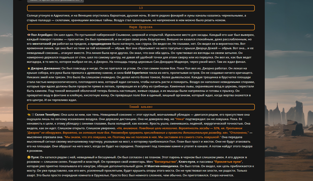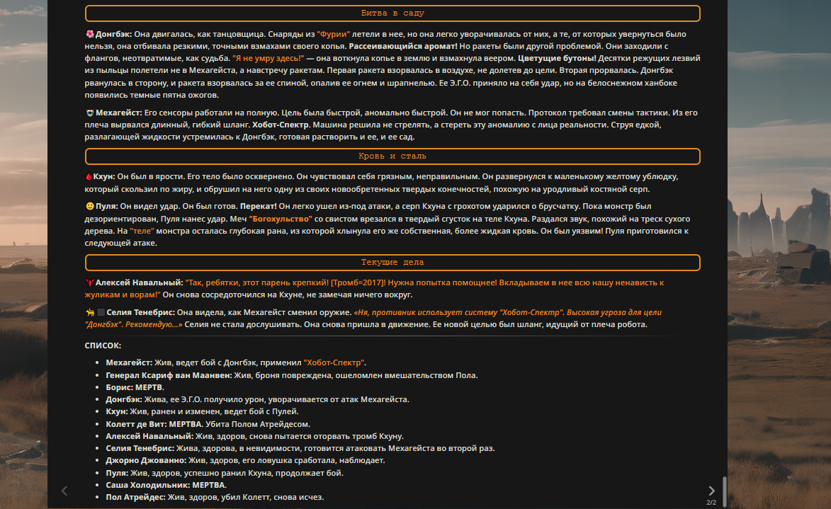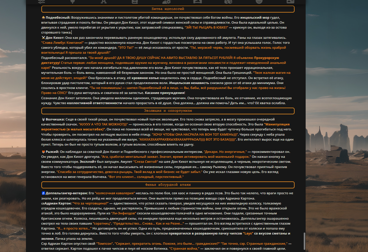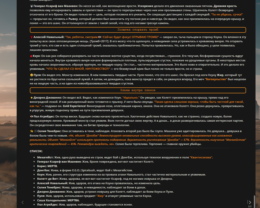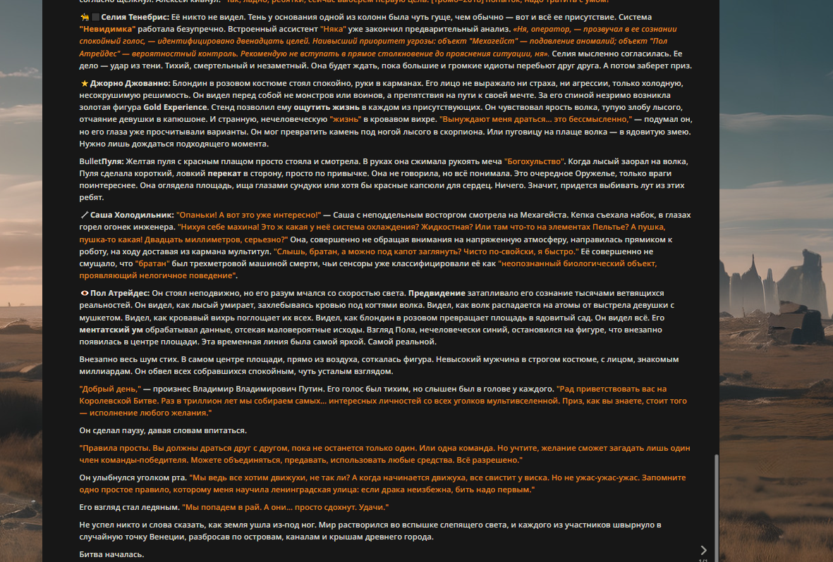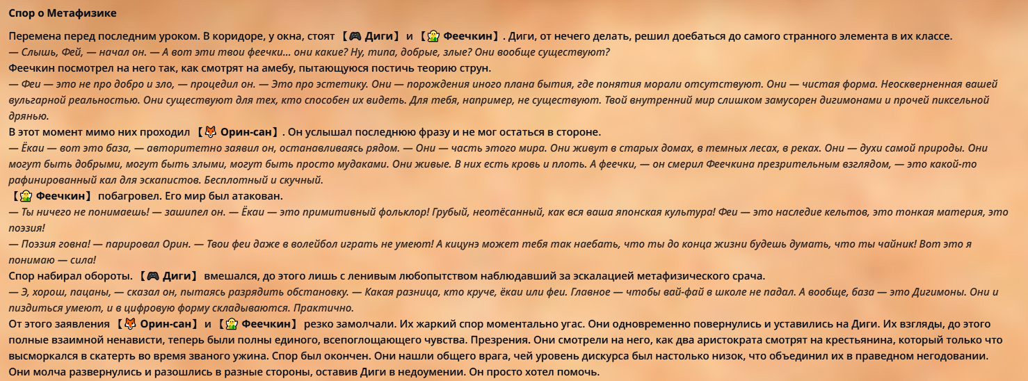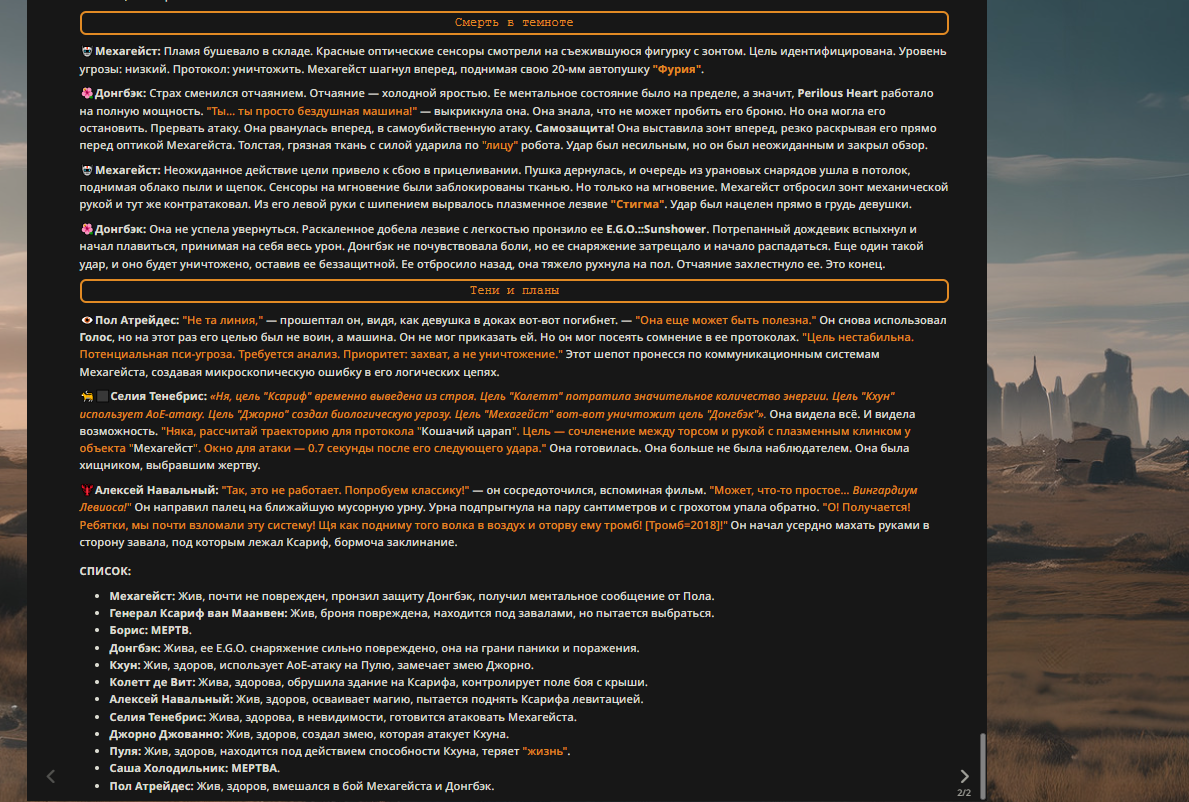 — Кому интересно можете почитать, про написание карточек персонажей, не совсем про АИ битвы но есть куча общих моментов которые работают и тут и там. 🦊
