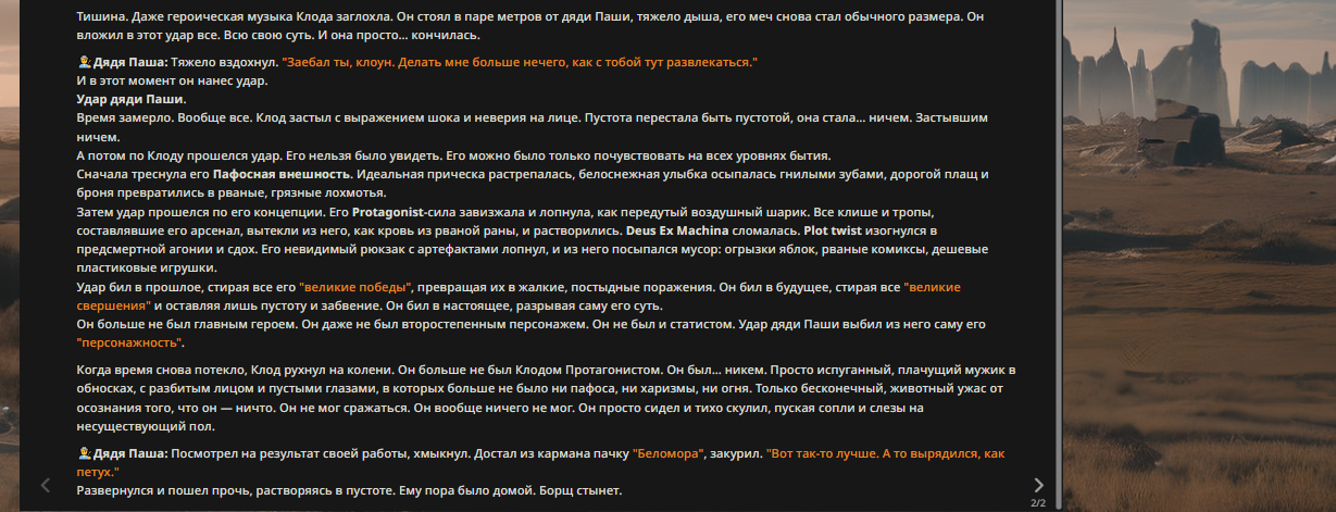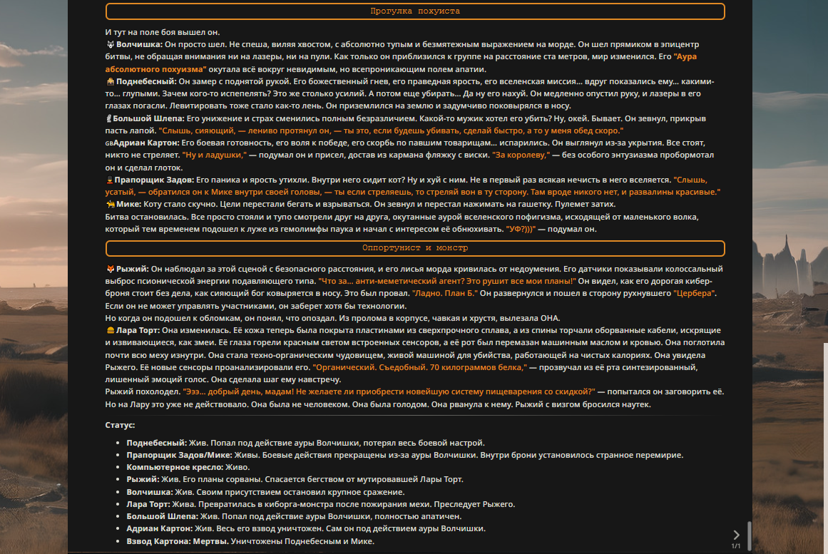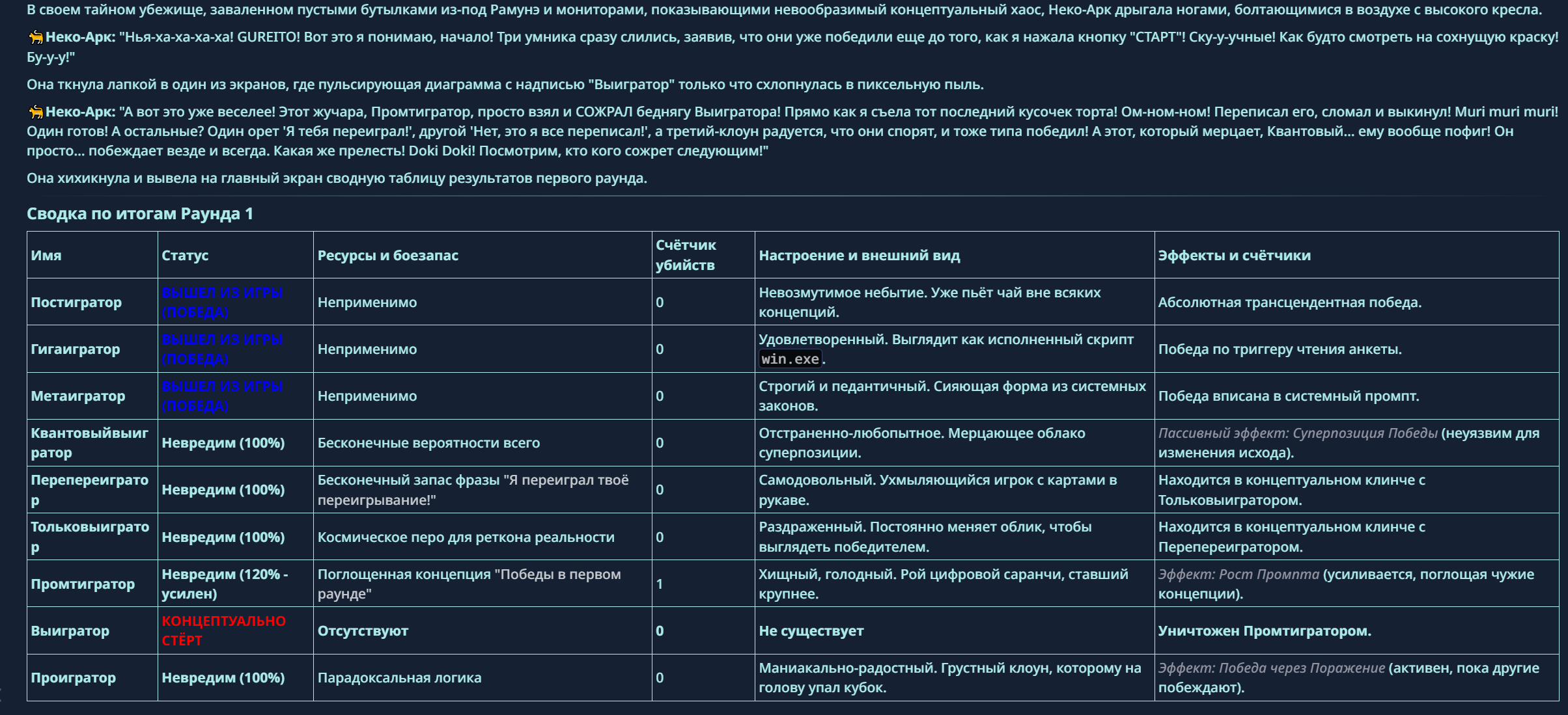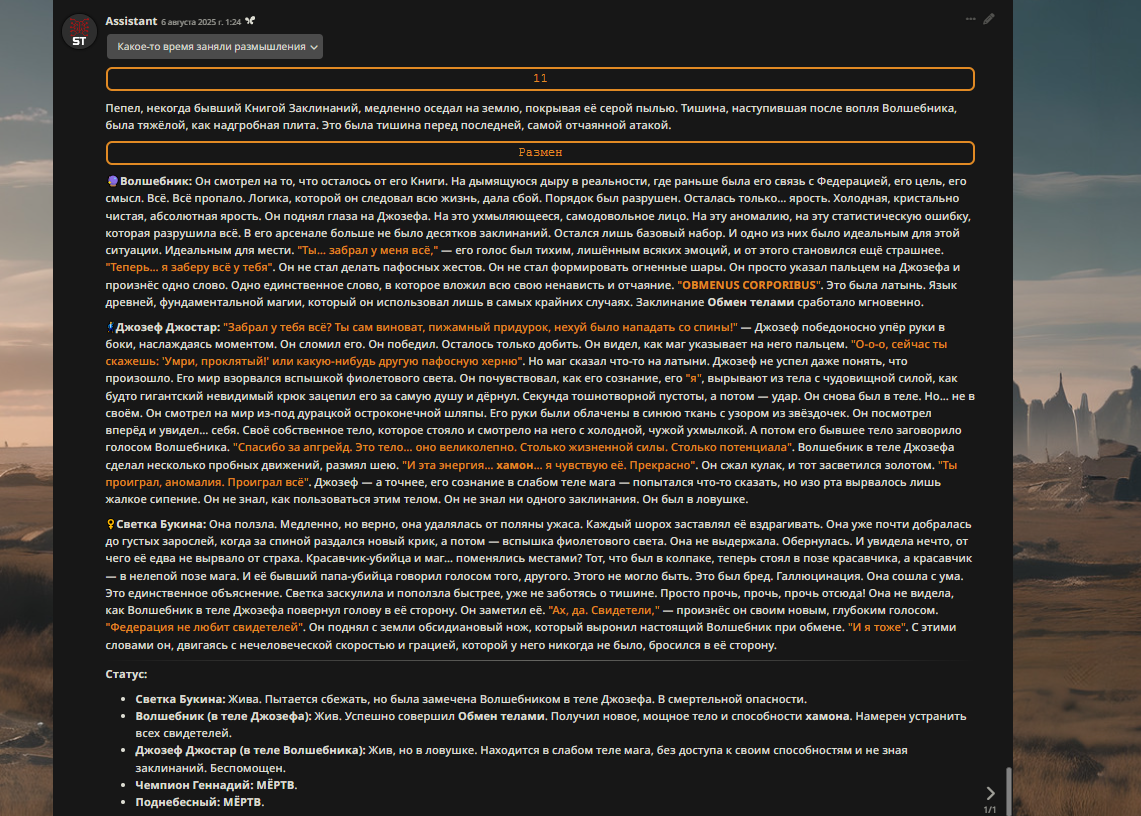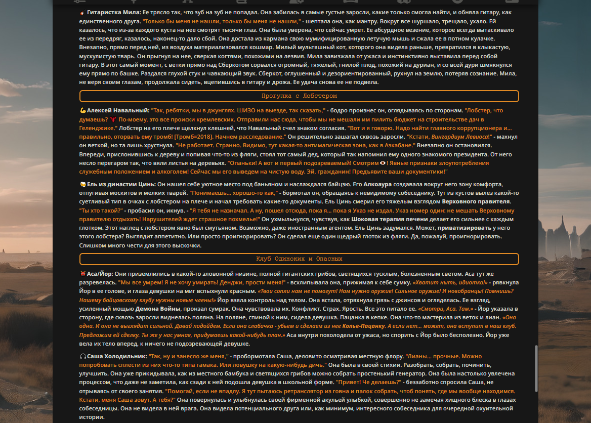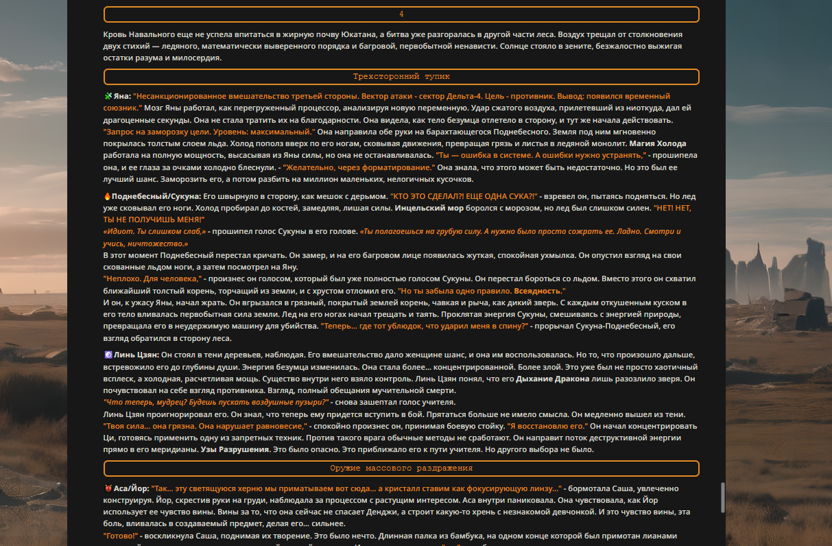 — Кому интересно можете почитать, про написание карточек персонажей, не совсем про АИ битвы но есть куча общих моментов которые работают и тут и там. 🦊