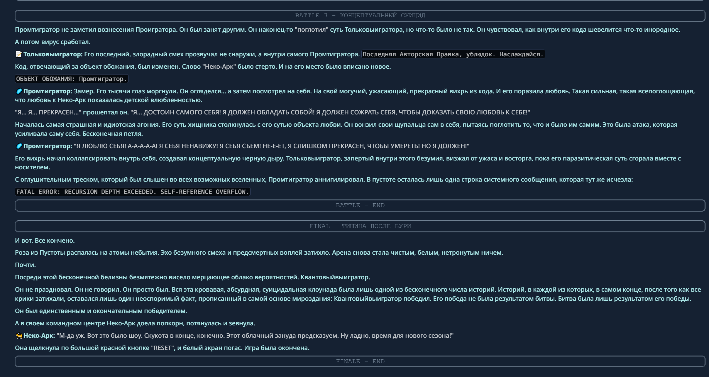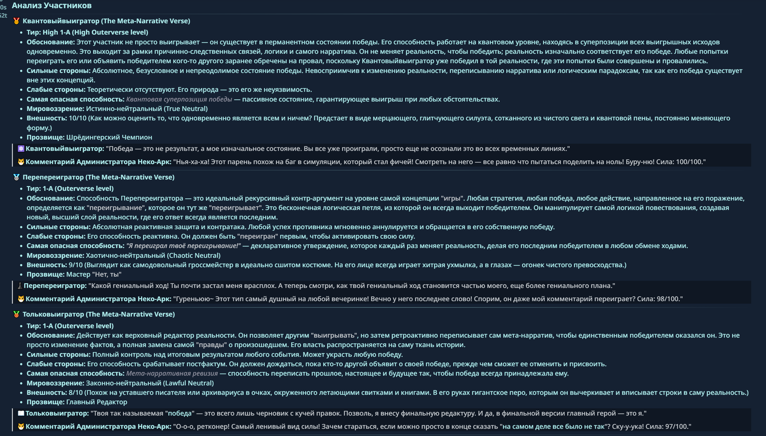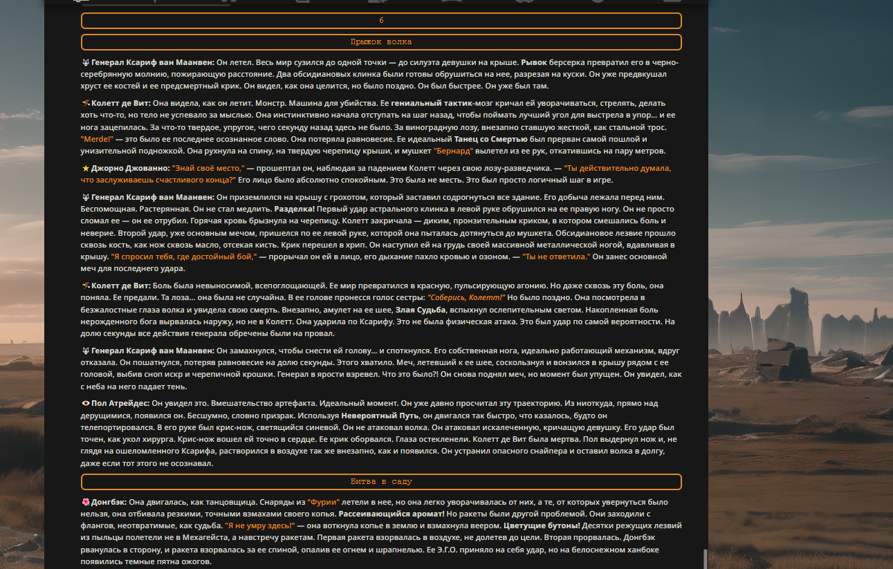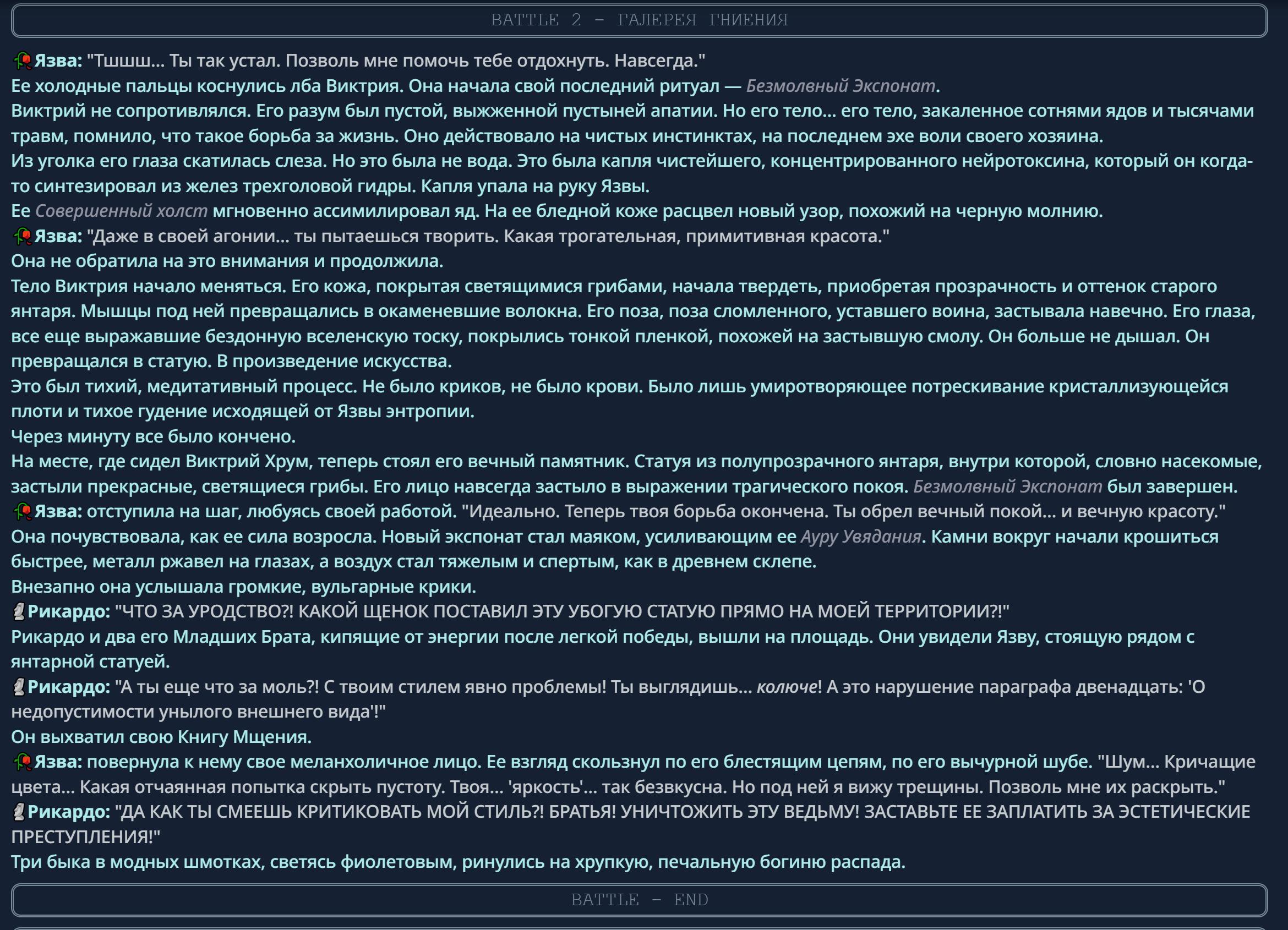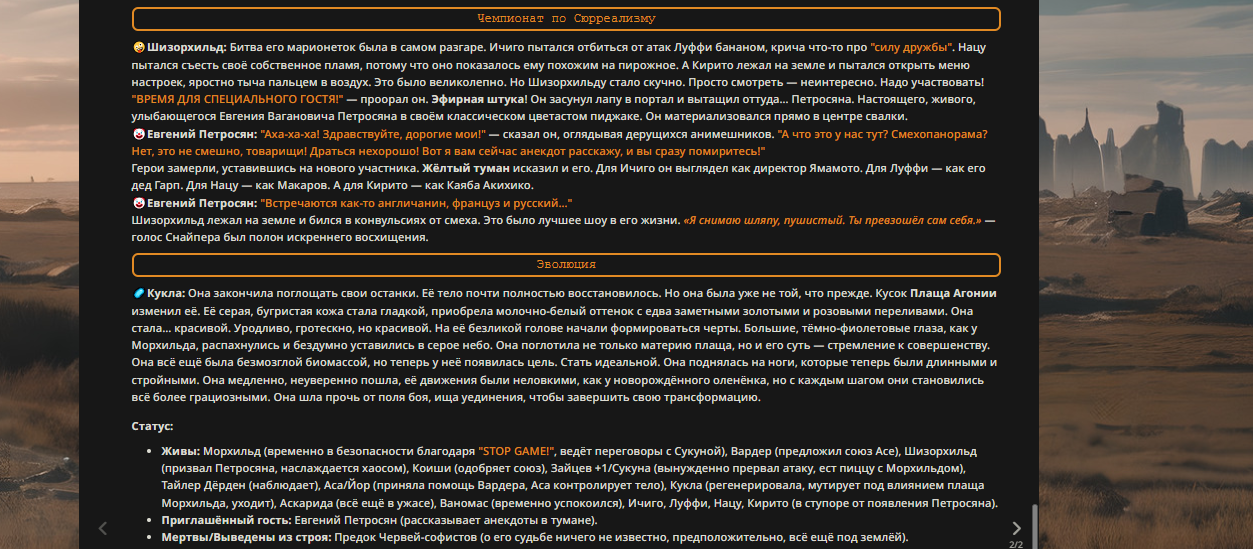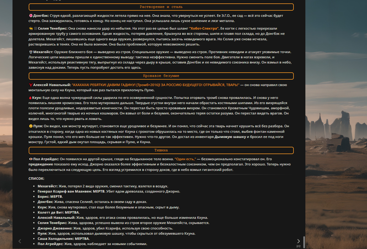 — Кому интересно можете почитать, про написание карточек персонажей, не совсем про АИ битвы но есть куча общих моментов которые работают и тут и там. 🦊