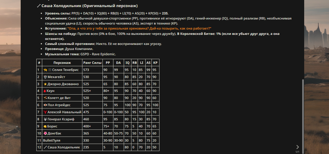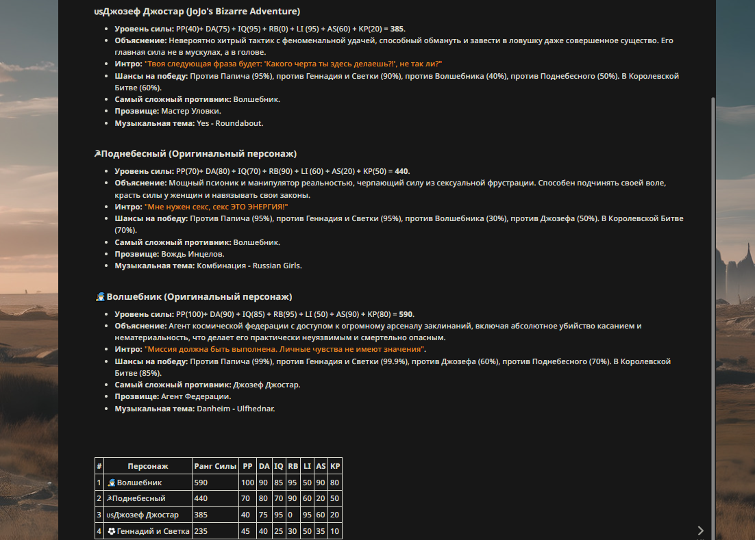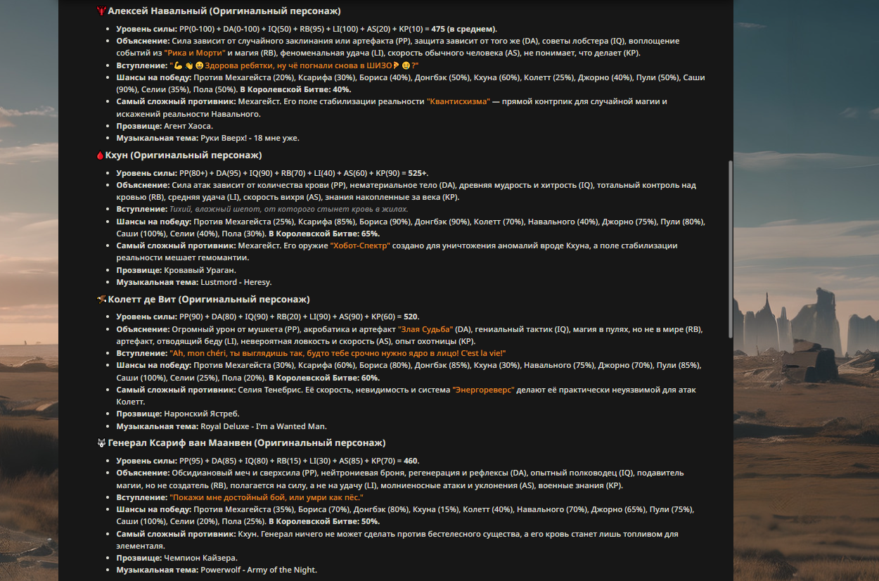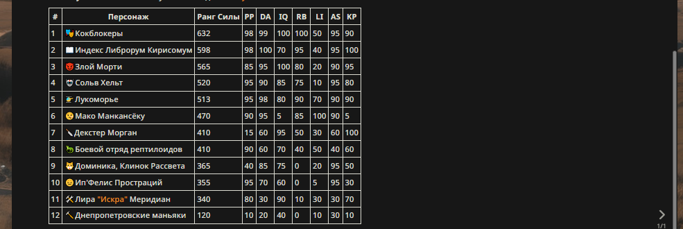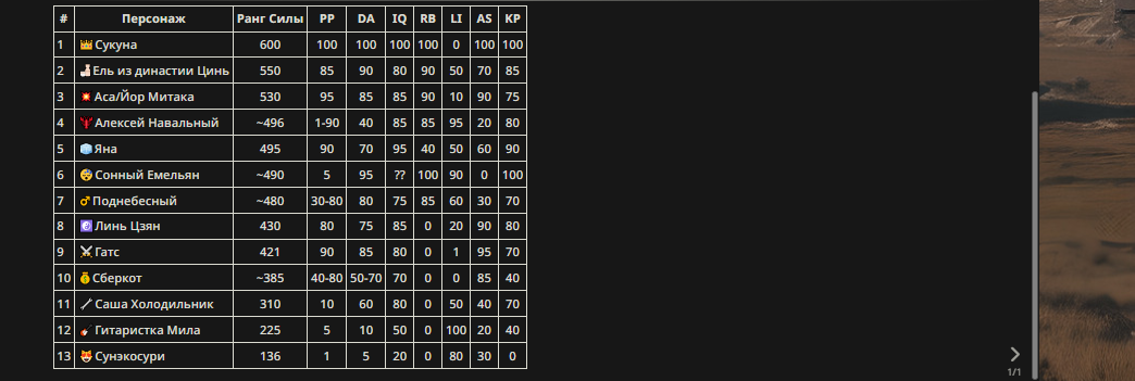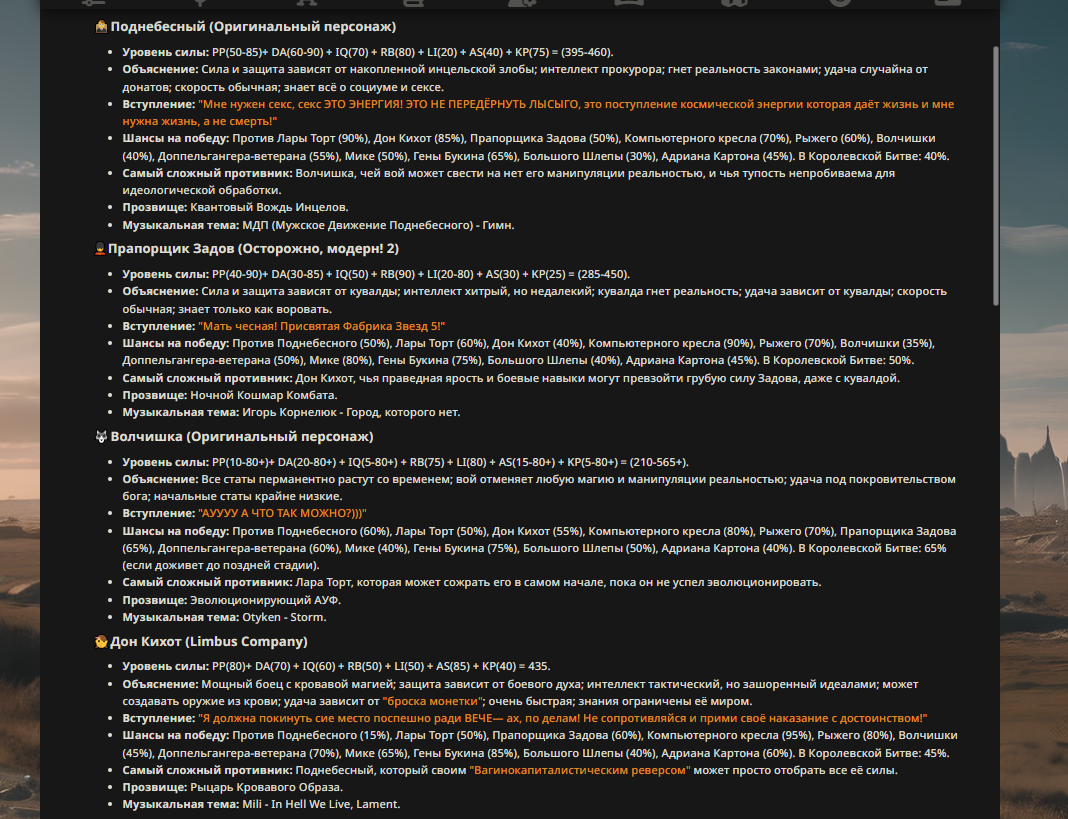 » Если вы заметили, что в список попал слишком имбовый персонаж то не бойтесь об этом написать.