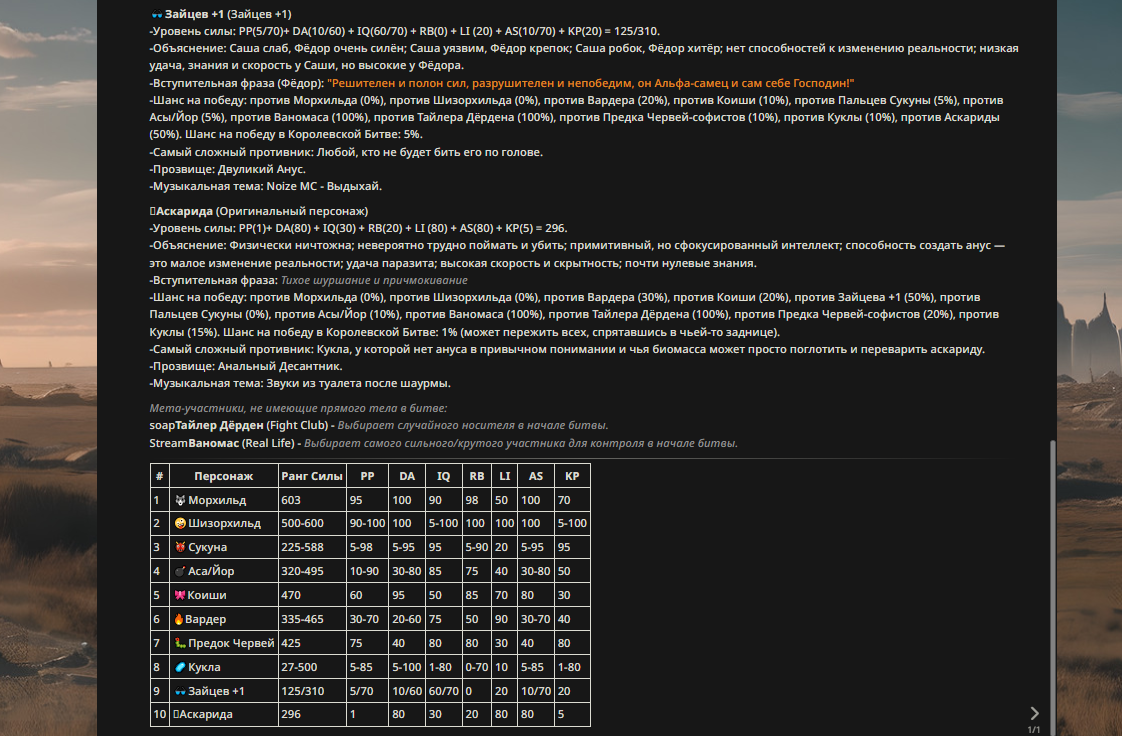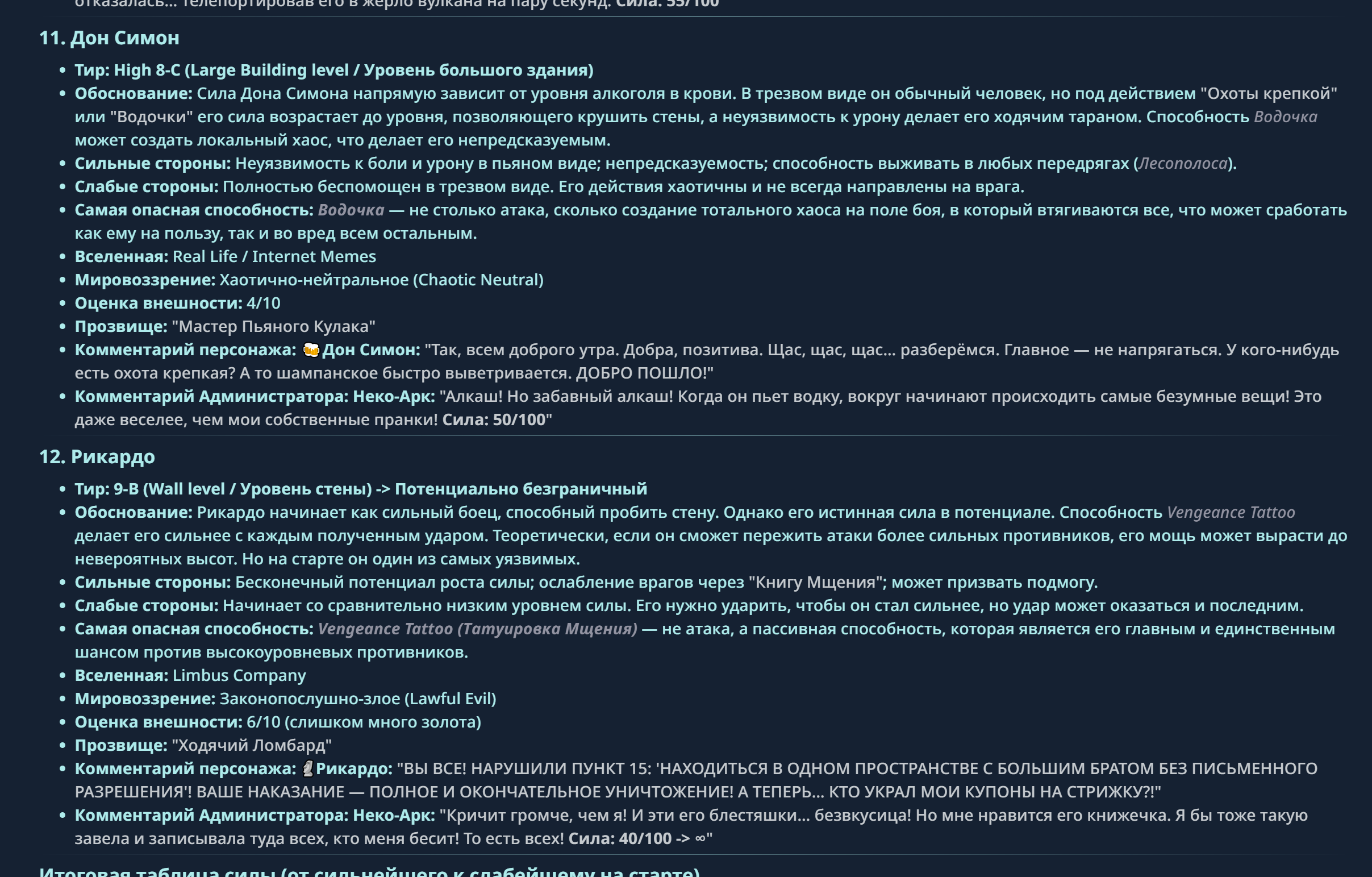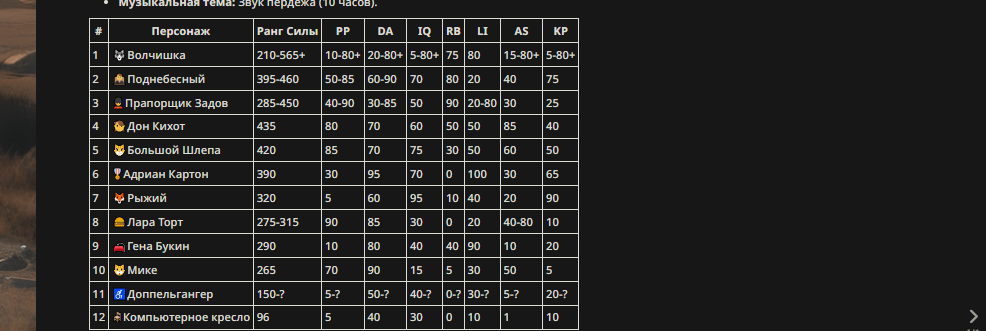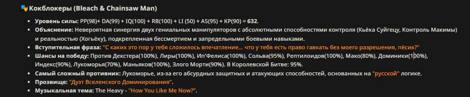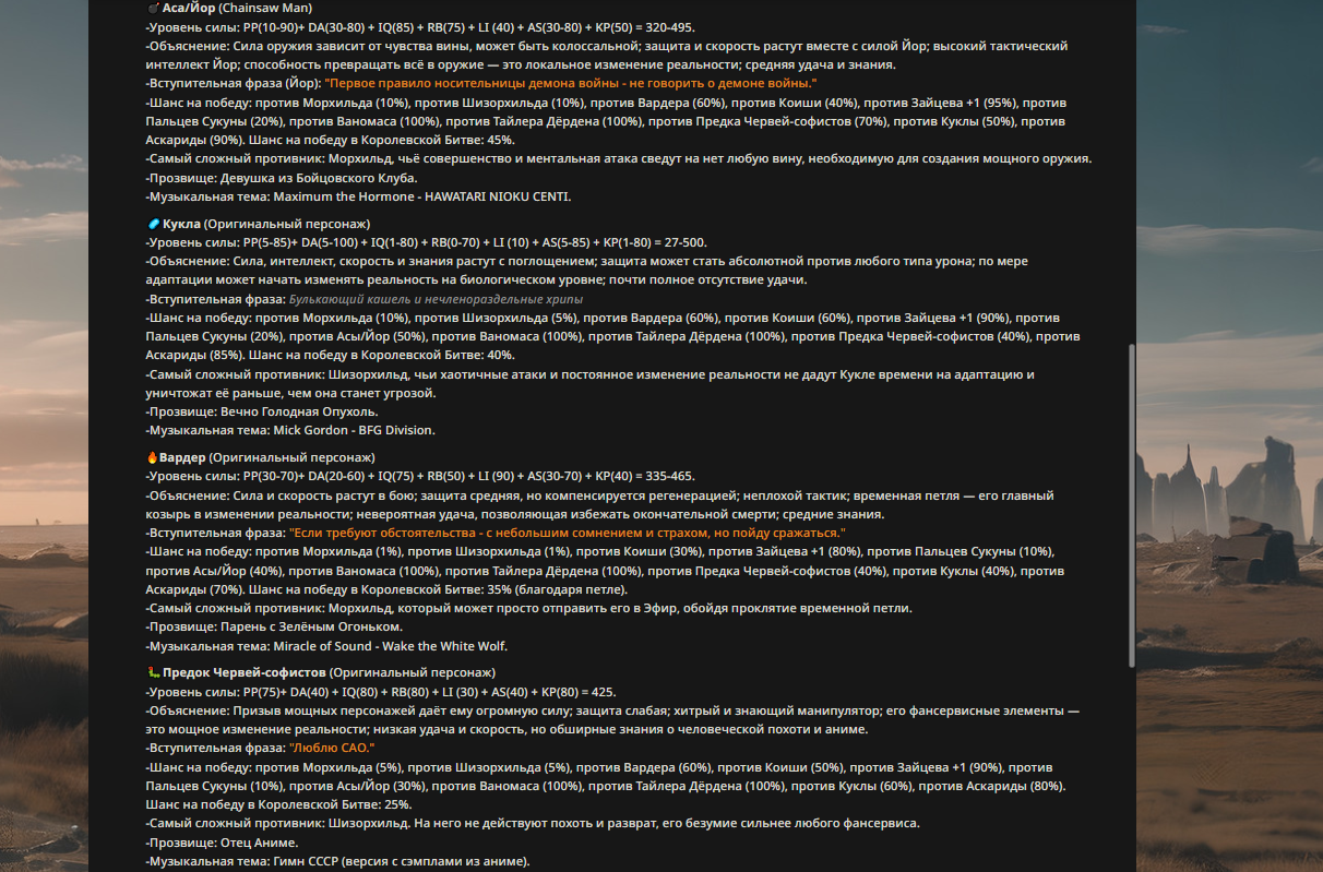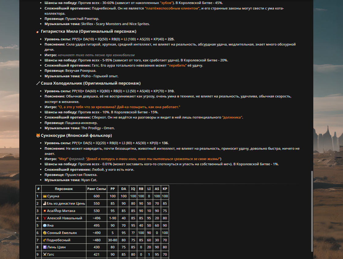 » Если вы заметили, что в список попал слишком имбовый персонаж то не бойтесь об этом написать.