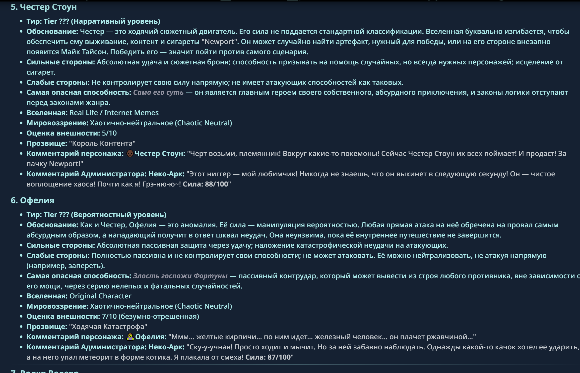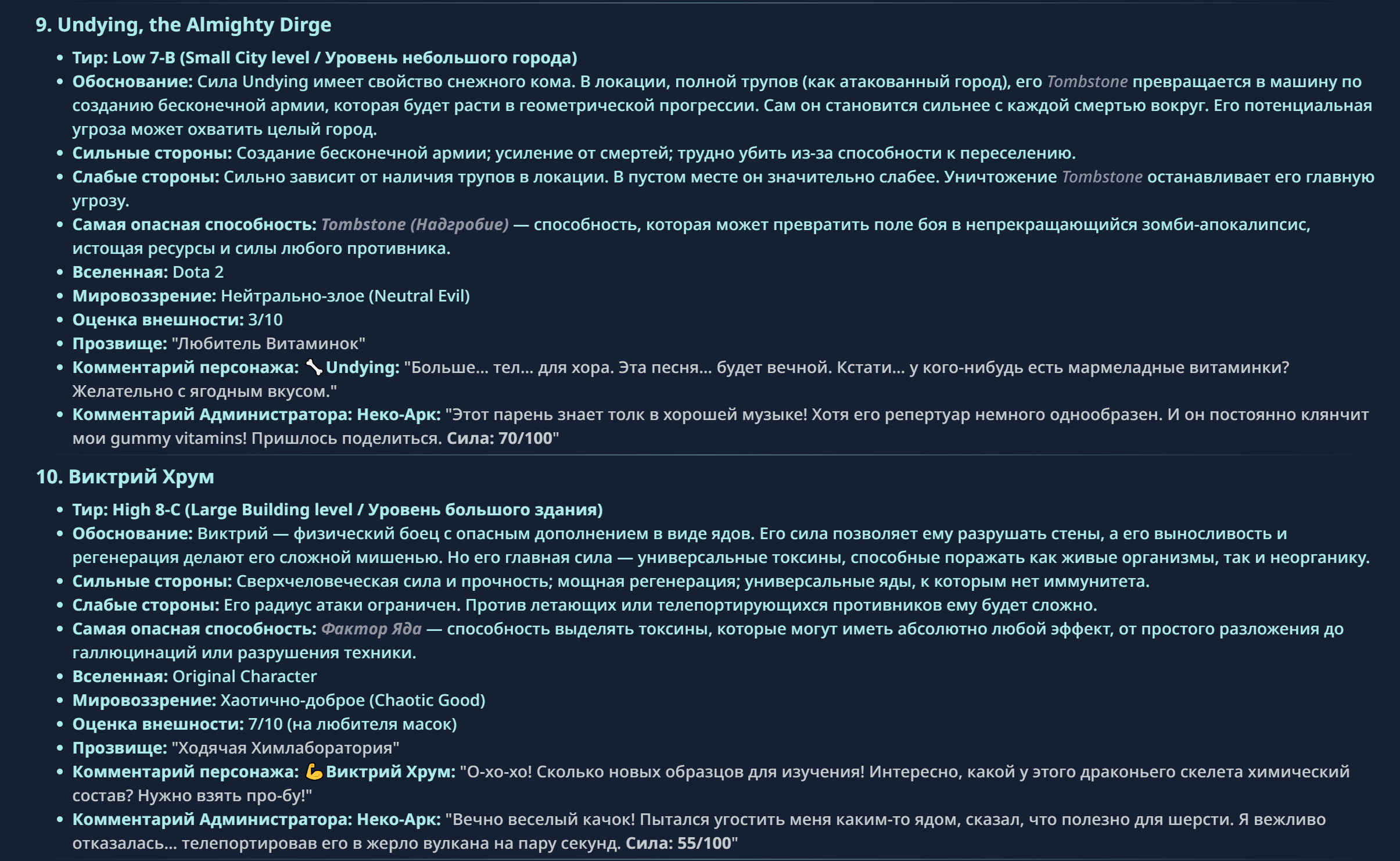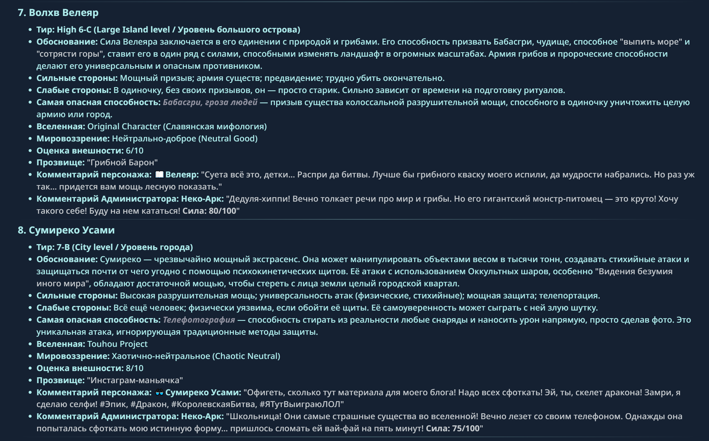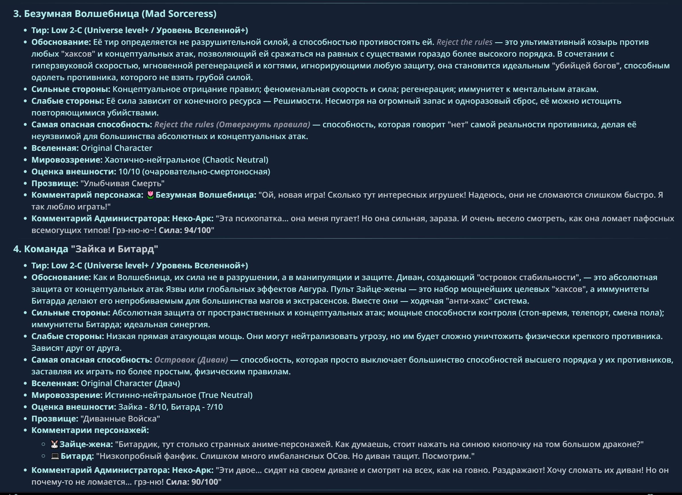 » Если вы заметили, что в список попал слишком имбовый персонаж то не бойтесь об этом написать.