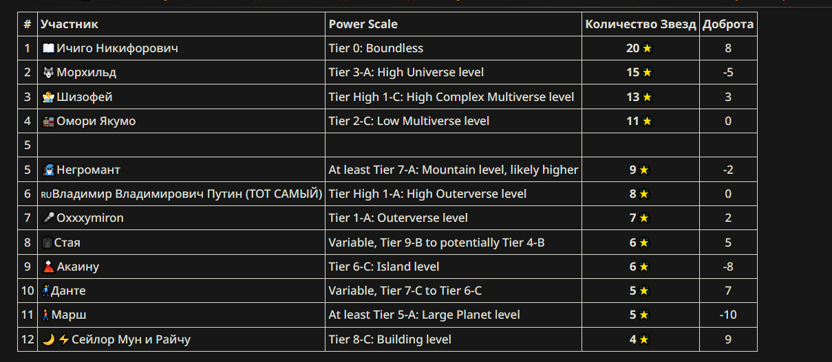 Твой ТИР-ЛИСТ!: https://tiermaker.com/create/ai-arena-characters-powerlevel-17727785-4