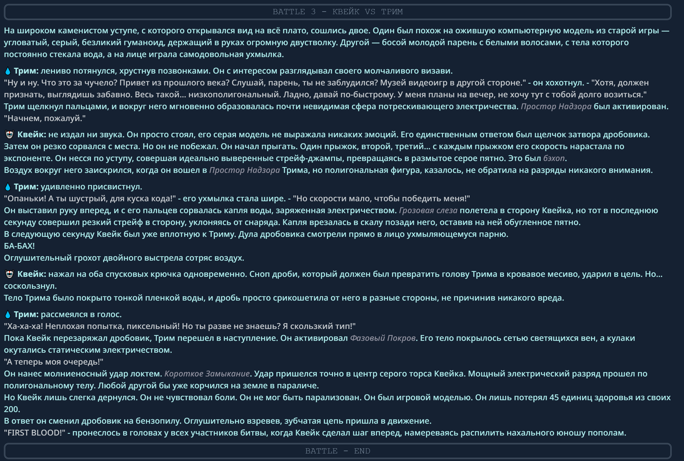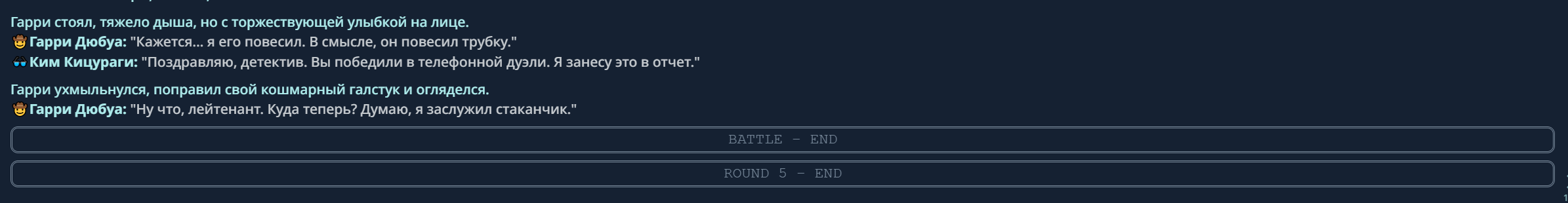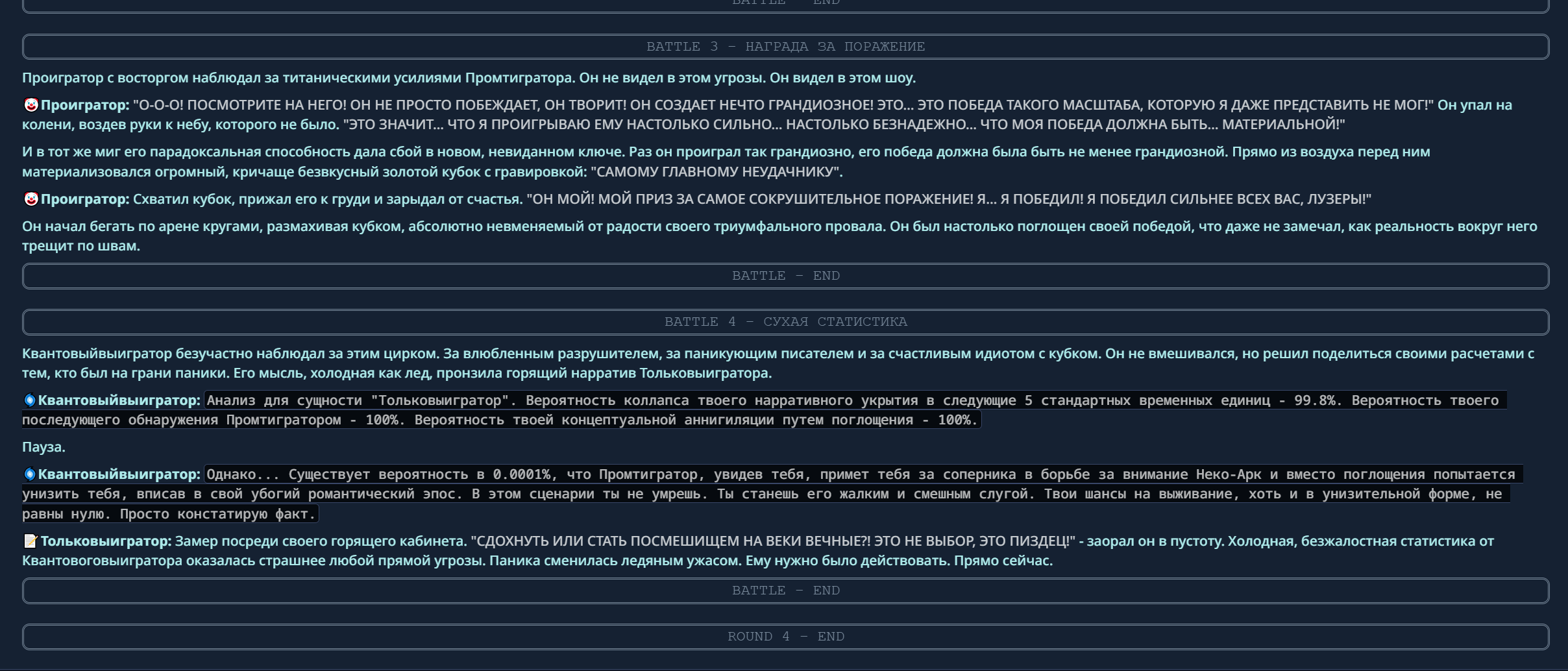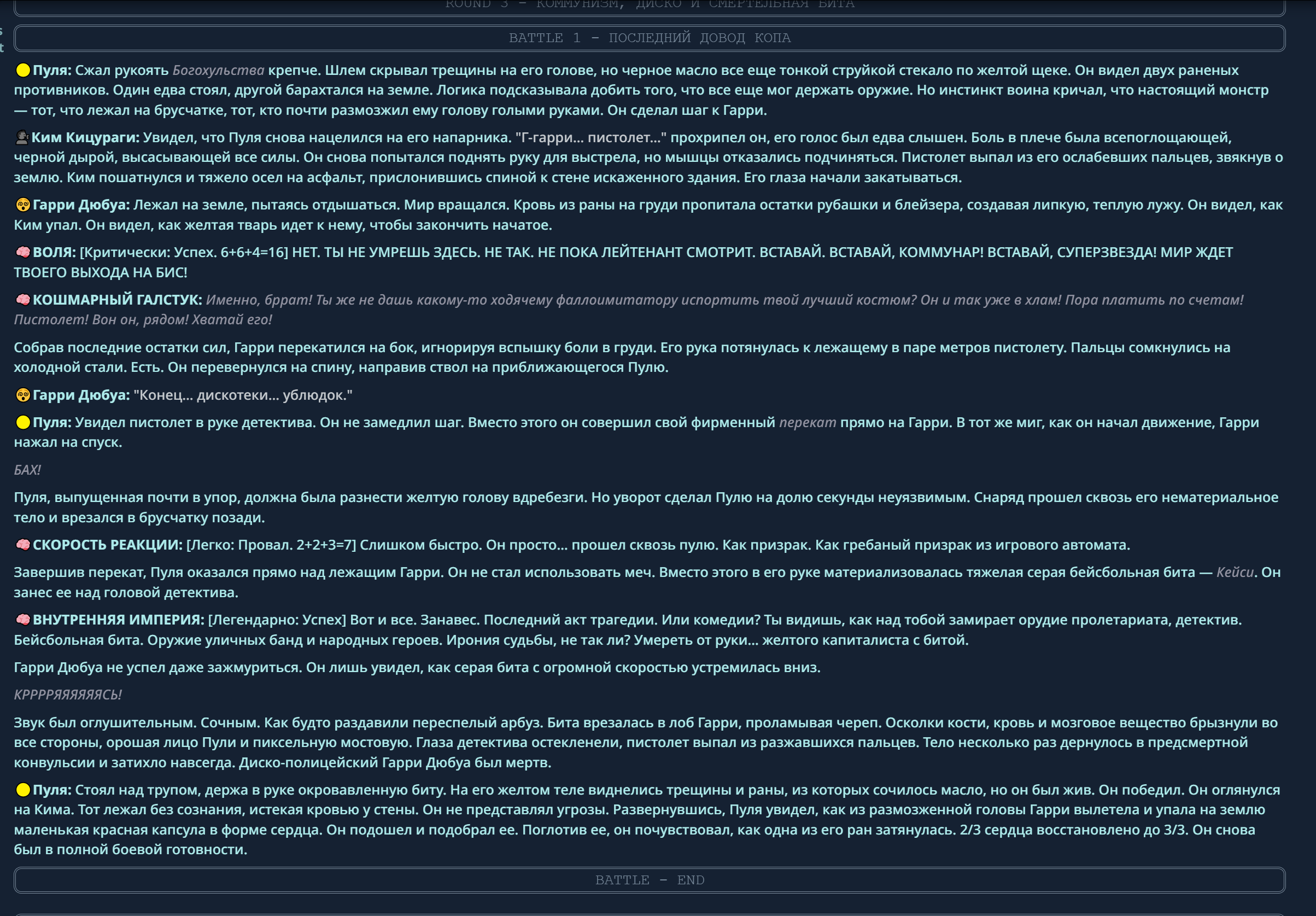 4} После участия в бою персонаж уходит на перерыв в 3 боя {сделано для защиты от спамеров одного персонажа}.