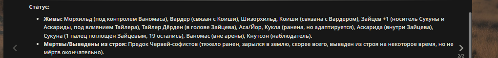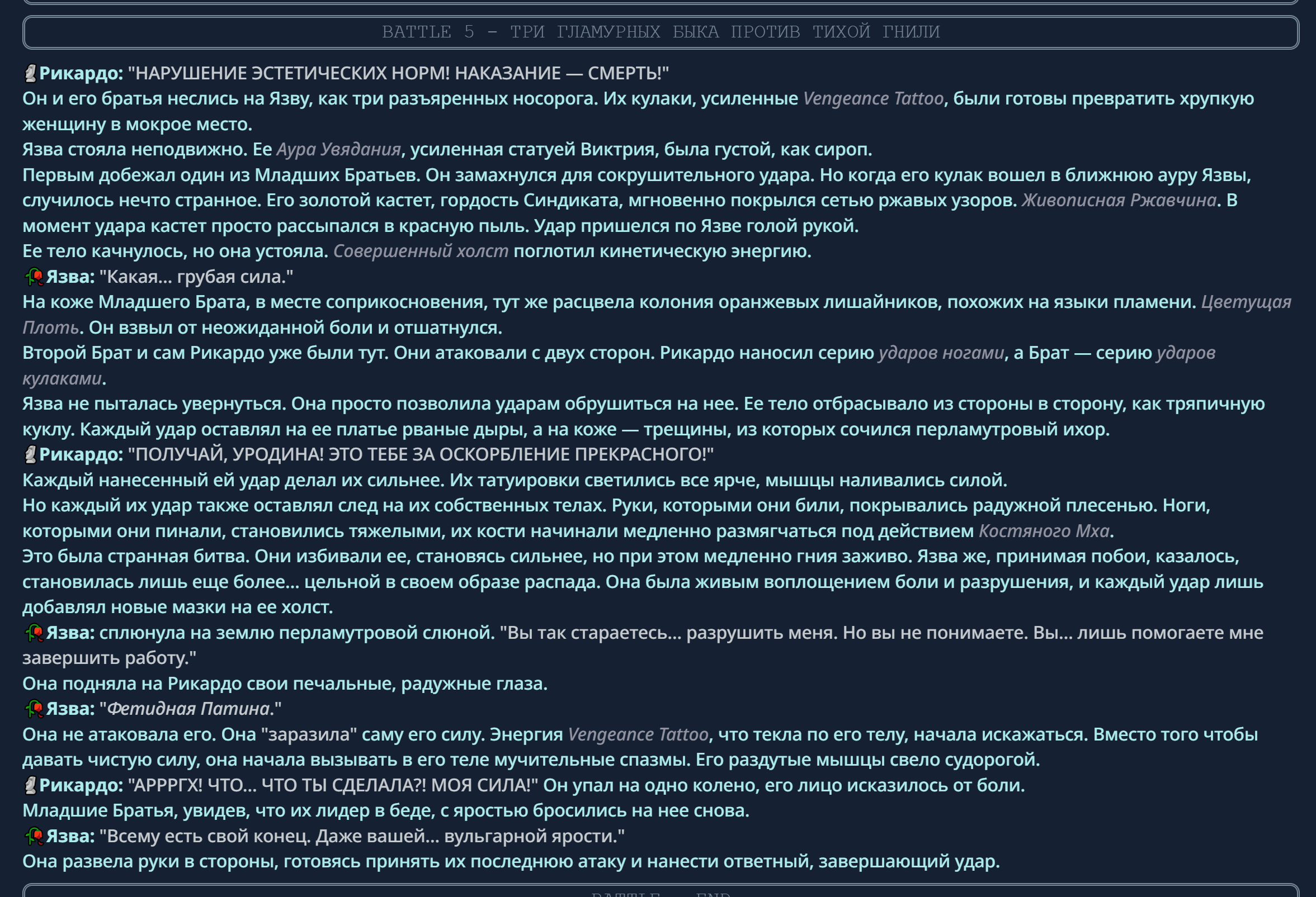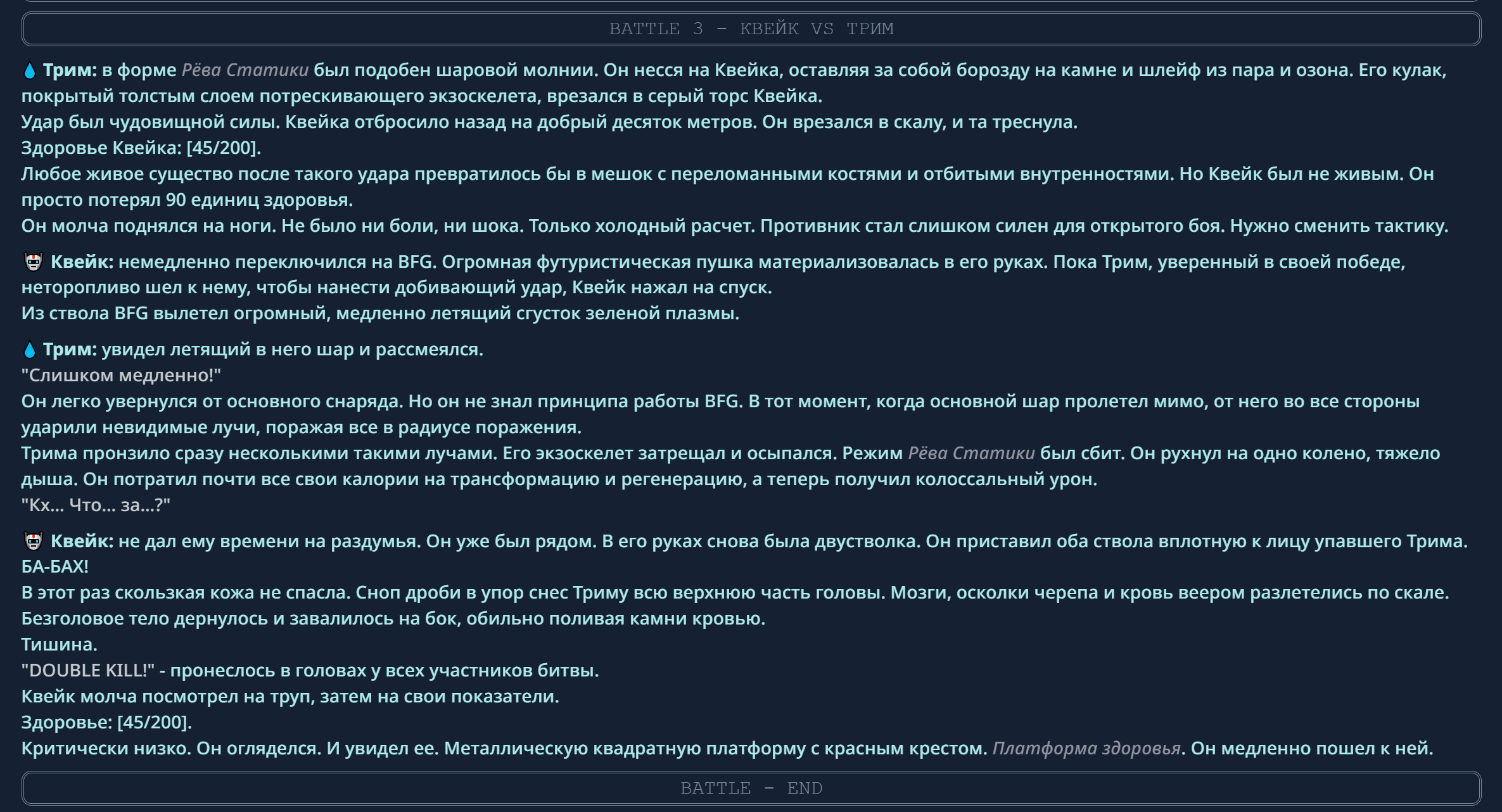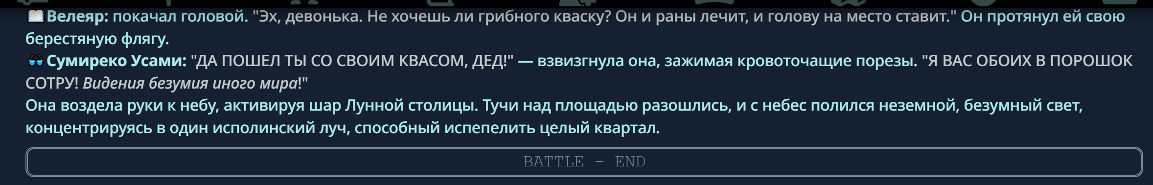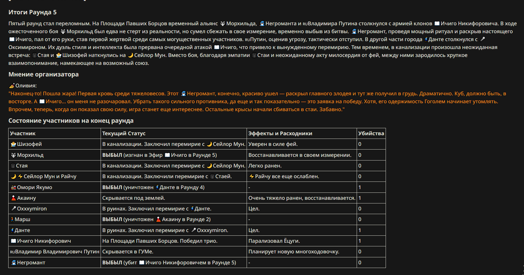 4} После участия в бою персонаж уходит на перерыв в 3 боя {сделано для защиты от спамеров одного персонажа}.