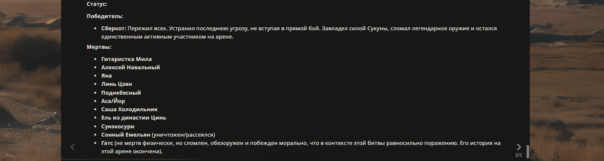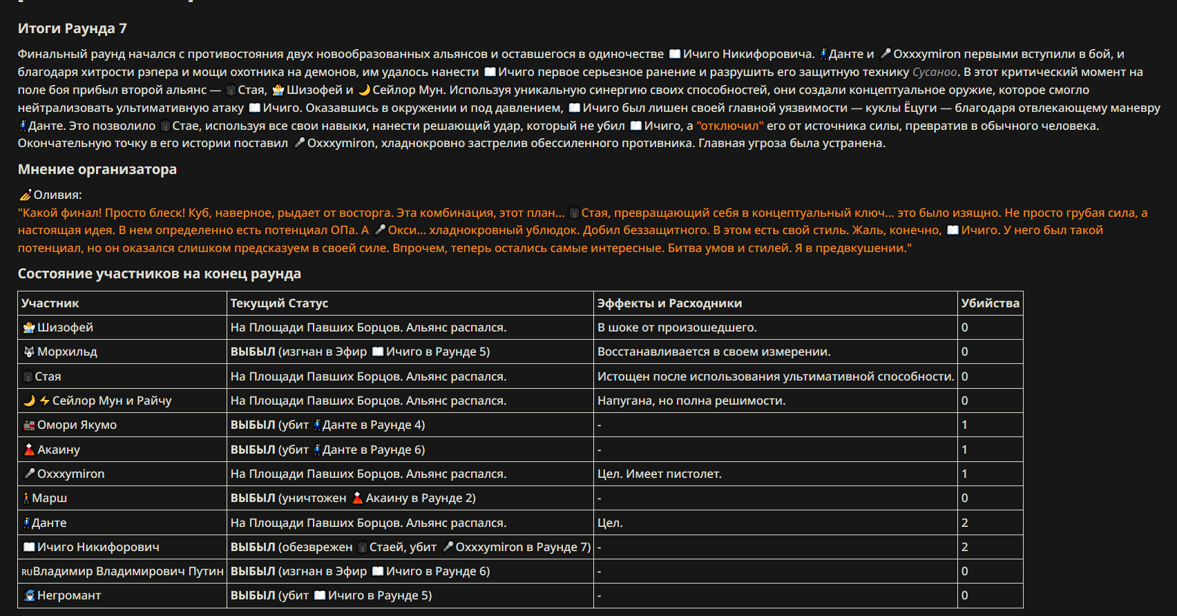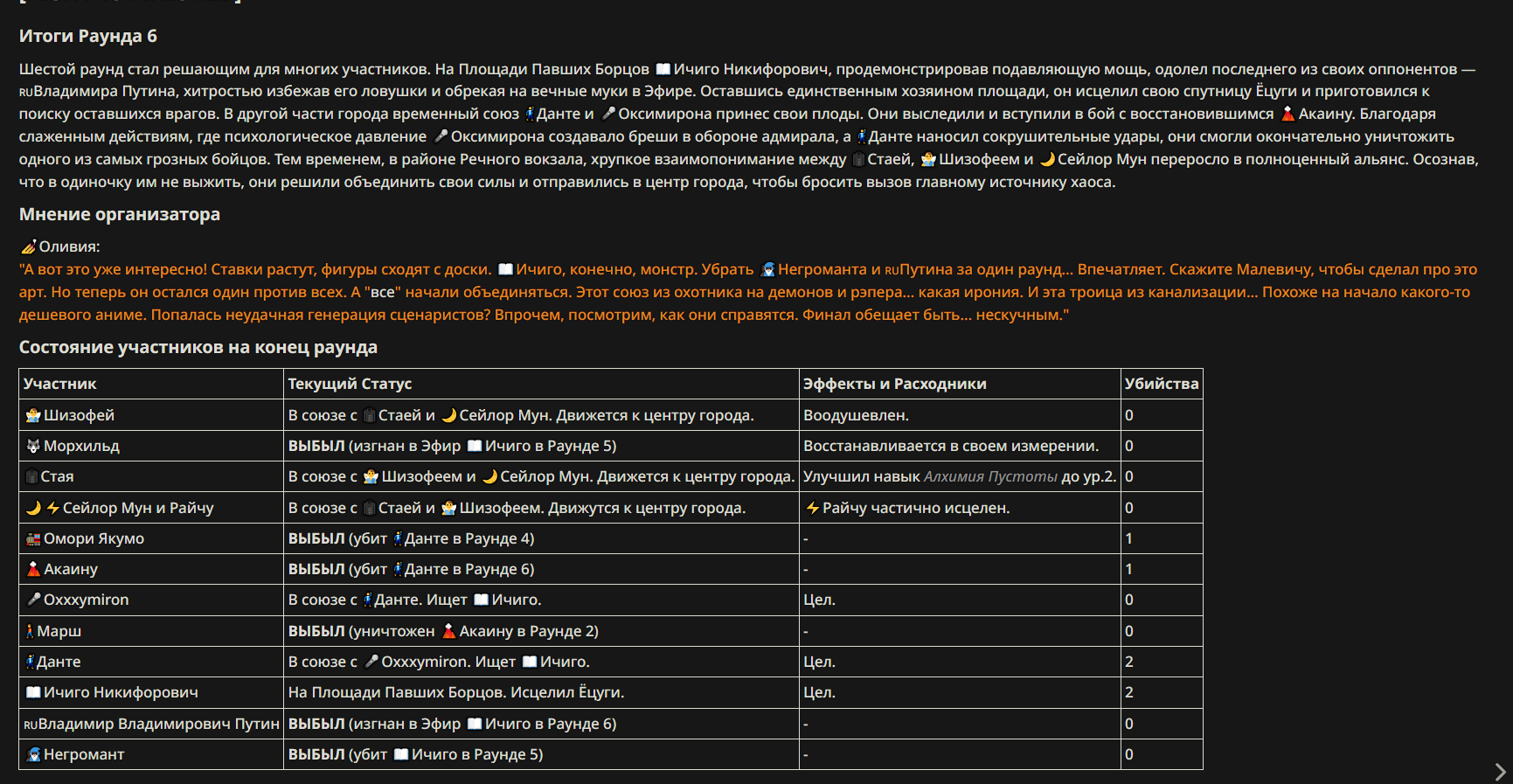 6} Набор персонажей полностью закрывается после начала боя и открывается только когда он закончится и будет объявлен новый набор. Если персонаж вкинут до набора - не обижайтесь, что его не приняли.