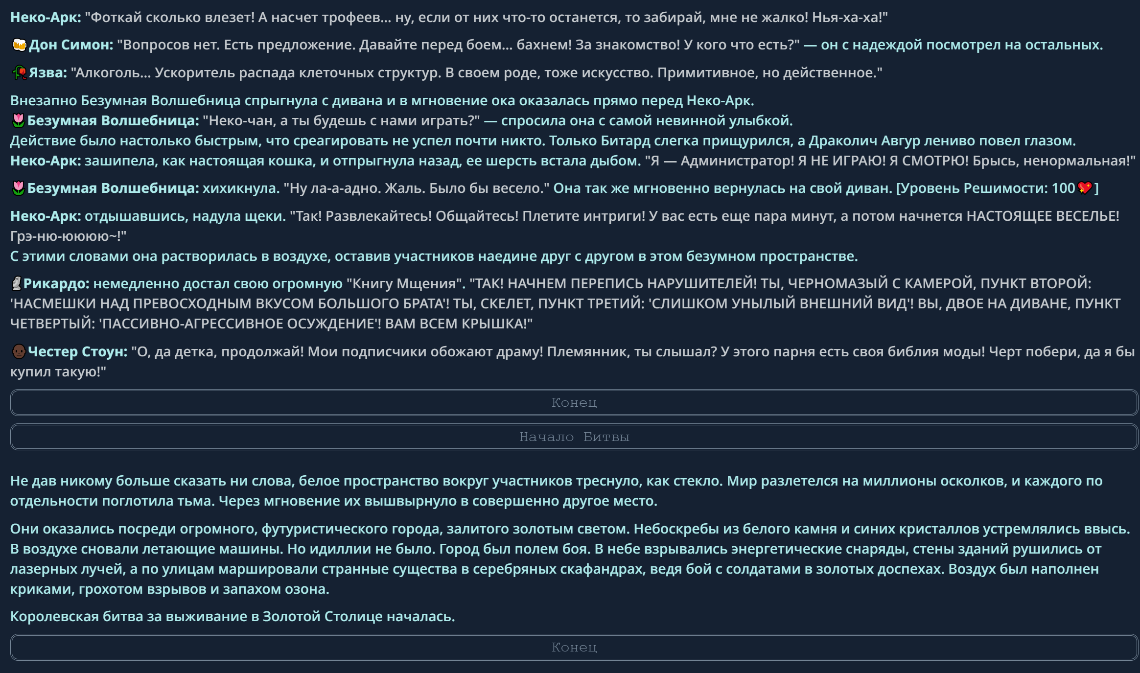 » Не будьте слишком назойливы и эгоцентричны. Уважайте других игроков и ведущих.