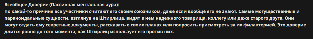 Способности: краткое описание пассивных способностей и особенностей.