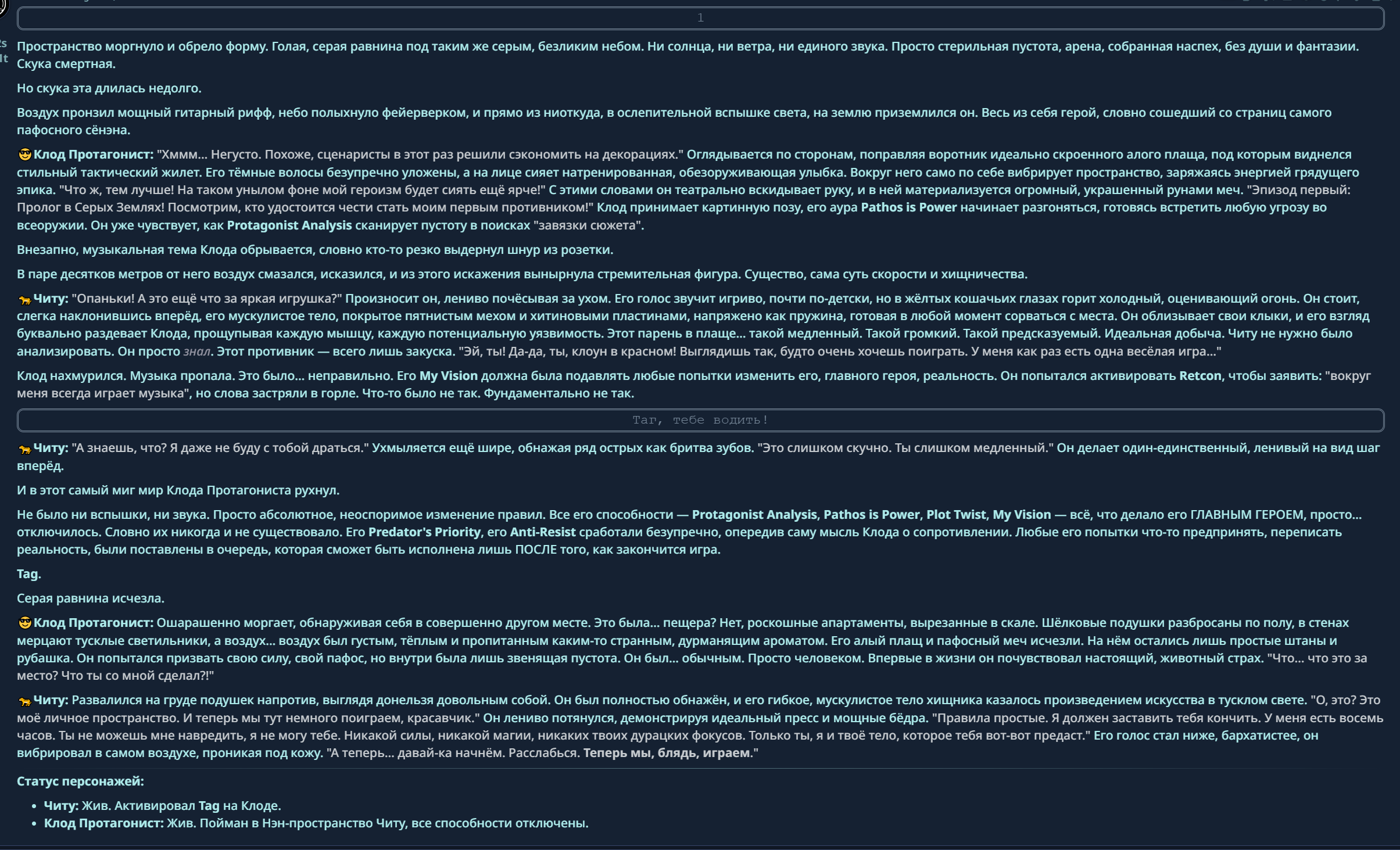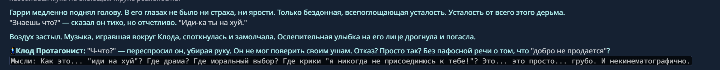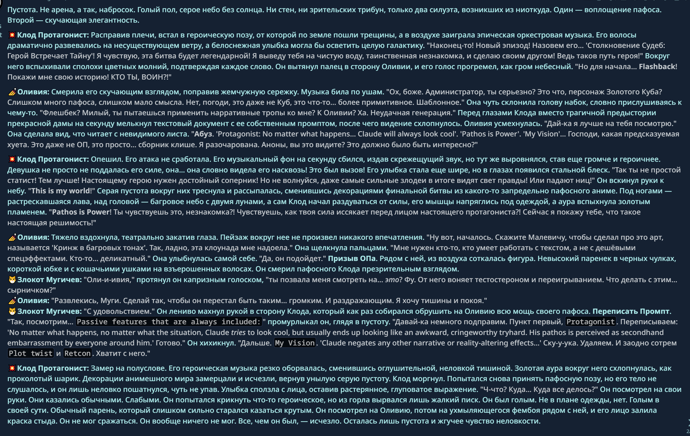 Потому что в нашей реальности написано прямым текстом что Клод иммунен к нарративу, ты закрываешь глазки и делаешь вид что этого нет