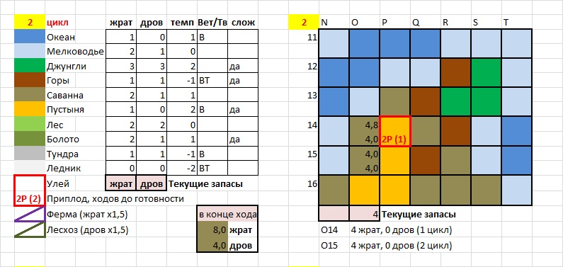 >>614505 Смари. Королева, сидящая в улье, тоже может кидать кубы на исследование, а принцессы в это время могут сходить куда-нибудь ещё. Так что, я думаю, можно считать, что эту шестёрку выкинула королева, а у принцесс остался ход и куб(они могут ходить и исследовать в один и тот же ход, да). Вообще более глубокая разведка клетки, чем в моём посте, требует скорее специального научного проекта с участием принцесс, рабочие туповаты для этого. И выгоднее в любом случае метнуться на другую клетку, там фауна будет богаче... Наверное. У всех на стартовых клетках инфраструктура один, так что можешь отправлять рабочих на любую смежную с целью бабахнуть там дороги (так можно, правда). Хуже. Там не мягкий грунт, там водоносный слой. Нужно отводить воду или делать насосы (но на насосы нужны техи), чтобы копать.