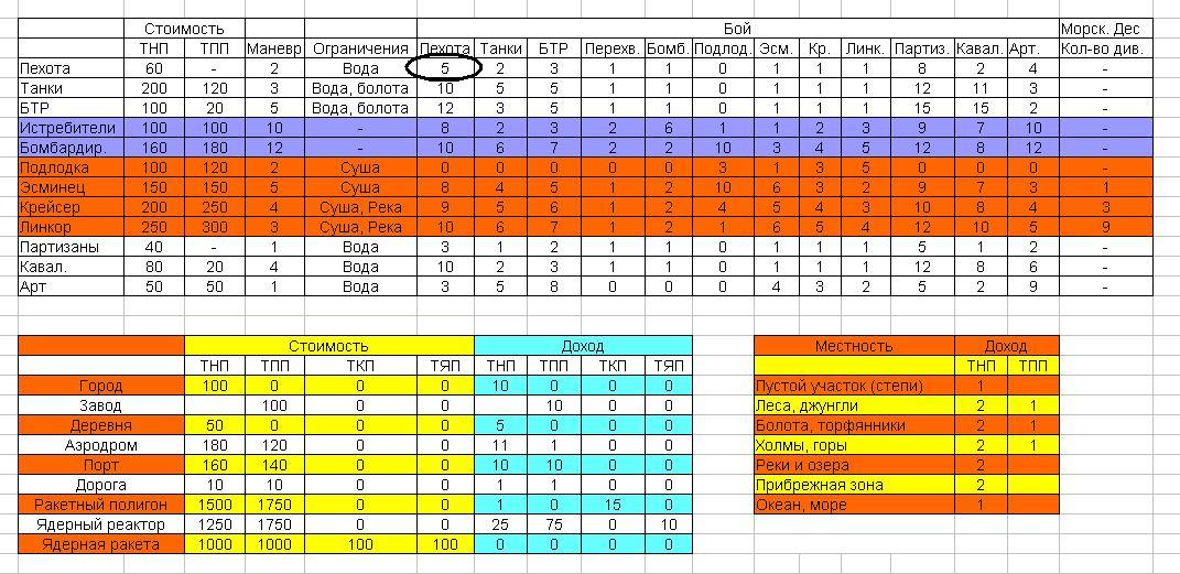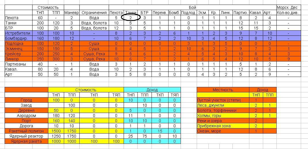 Артиллерия - 1 Пехота - 2 Танки - 3 БТР - 5