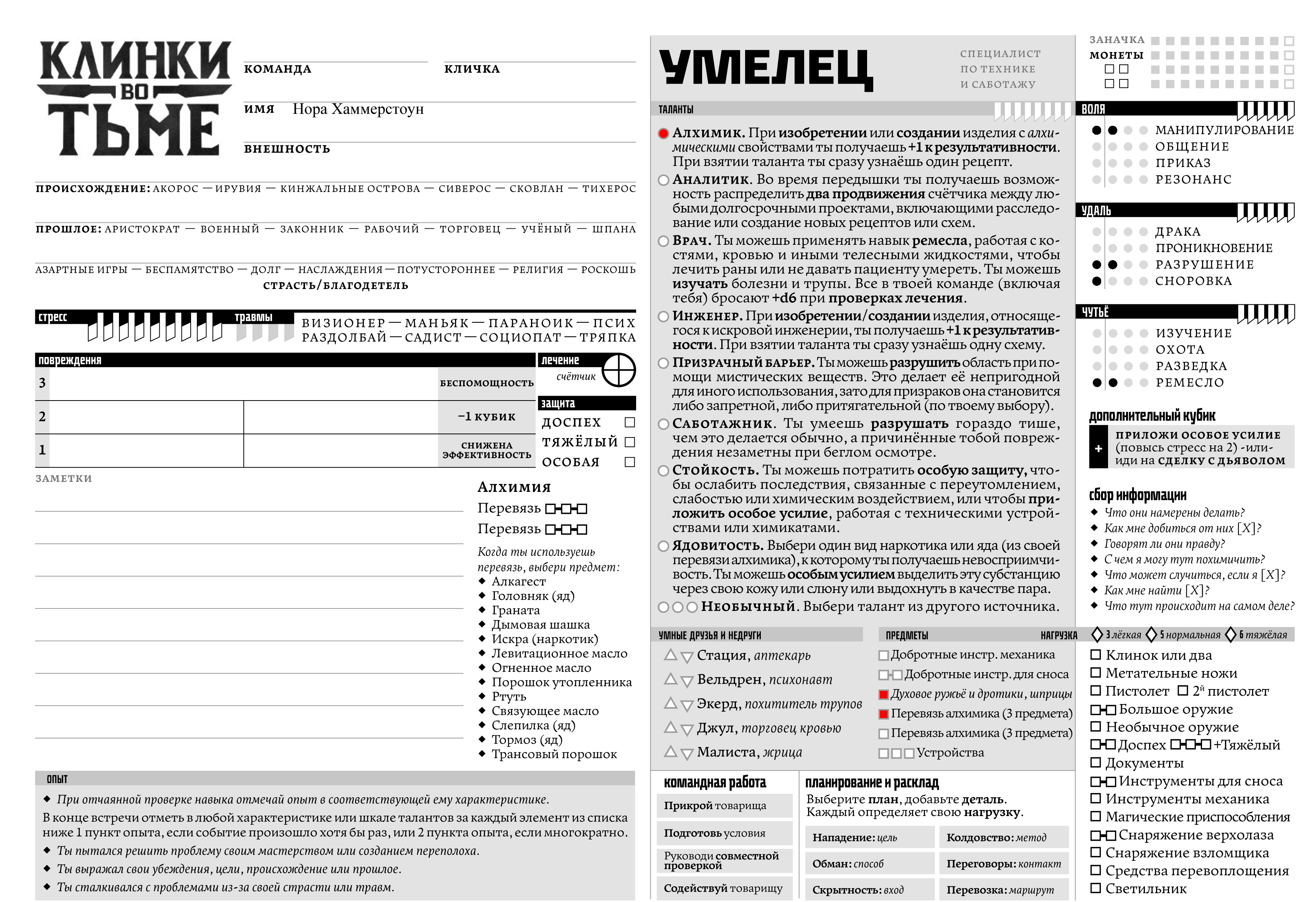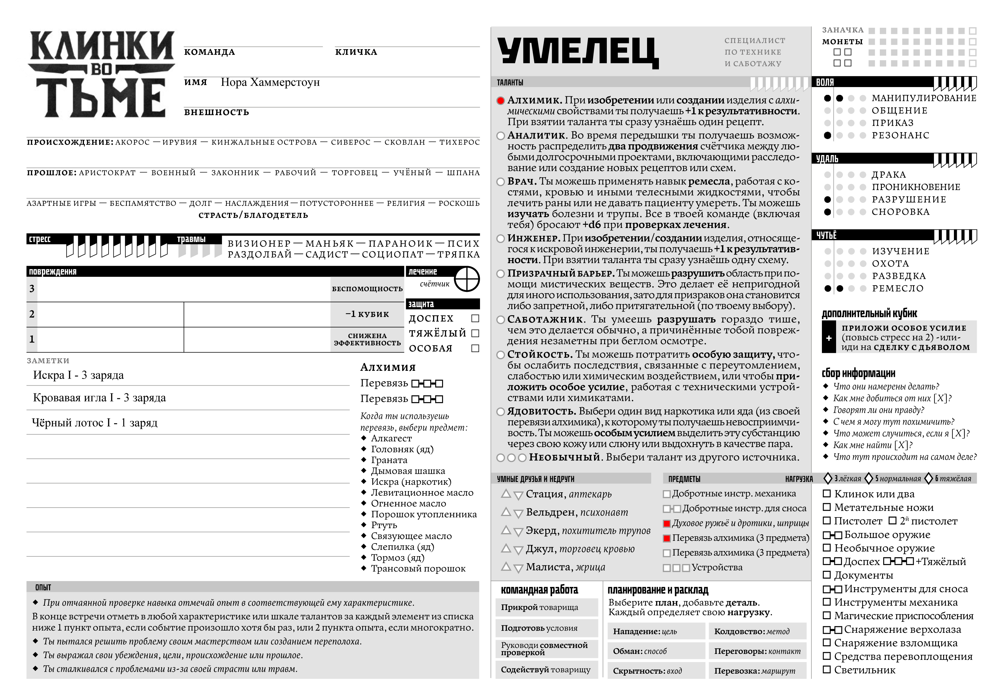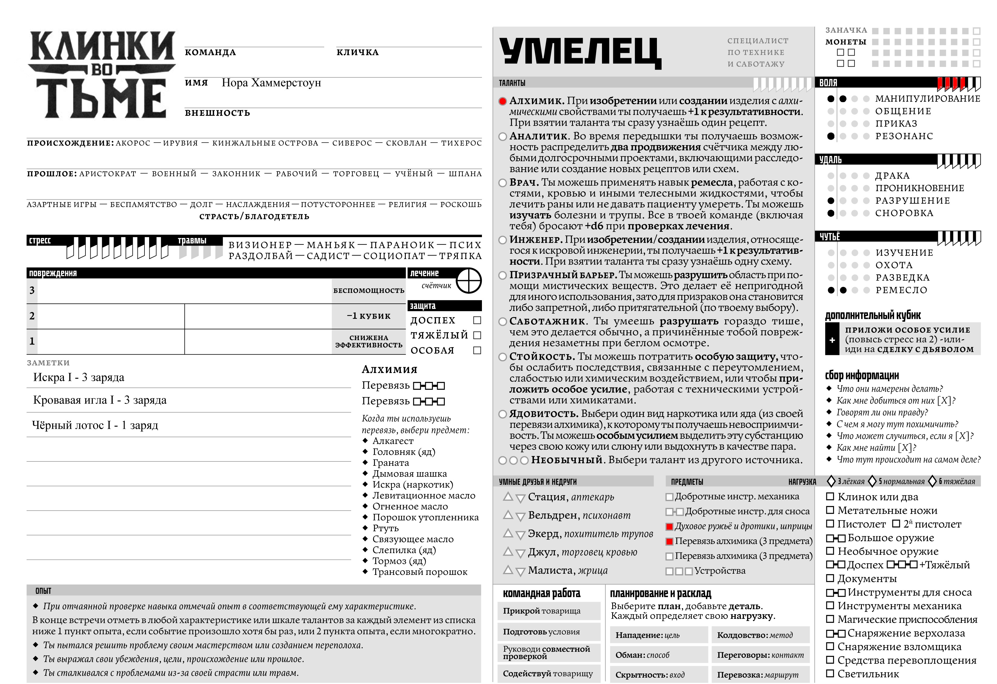 >>701129 Здорово сделано! Единственное, попрошу одно РАЗРУШЕНИЕ перекинуть в РЕЗОНАНС. С собой взять подумываю Искру и Кровавую иглу из ширева, а в качестве яда - Черный лотос. Пока не понятно как использовать, зато дешево и лорно.