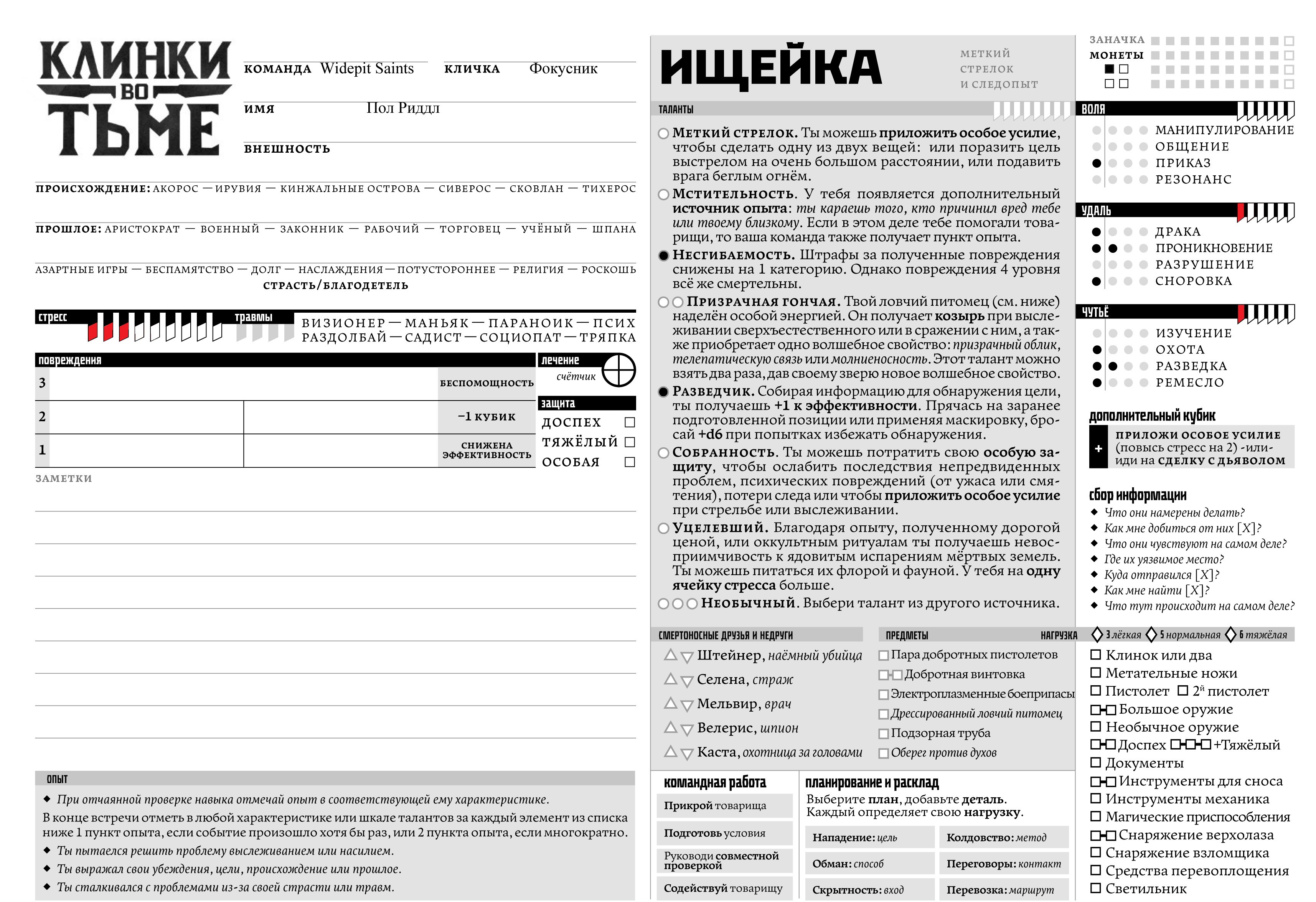>Собираю информацию, Как мне найти Потрошителя? Охота 1d6: (1) = 1 +1 эффективности за талант Разведчика Не охотой, а разведкой я хотел. Это украинские хацкеры подменили.