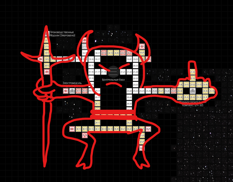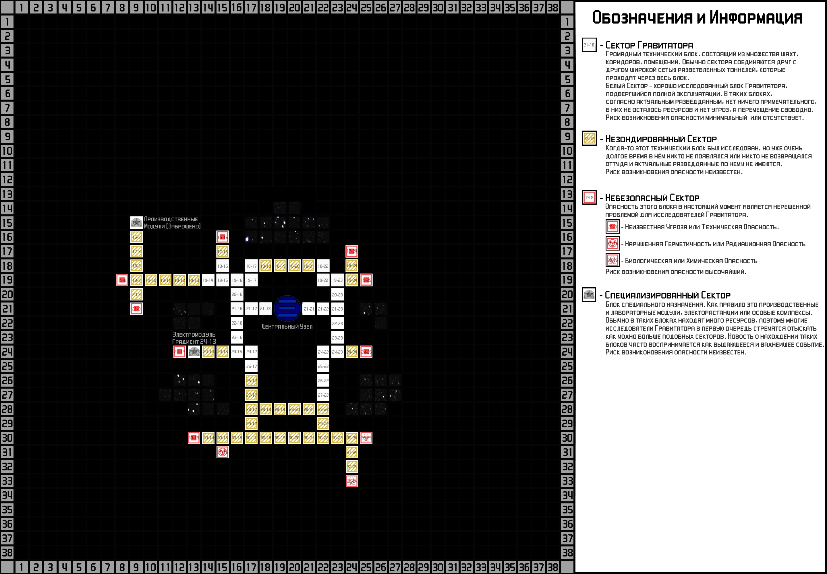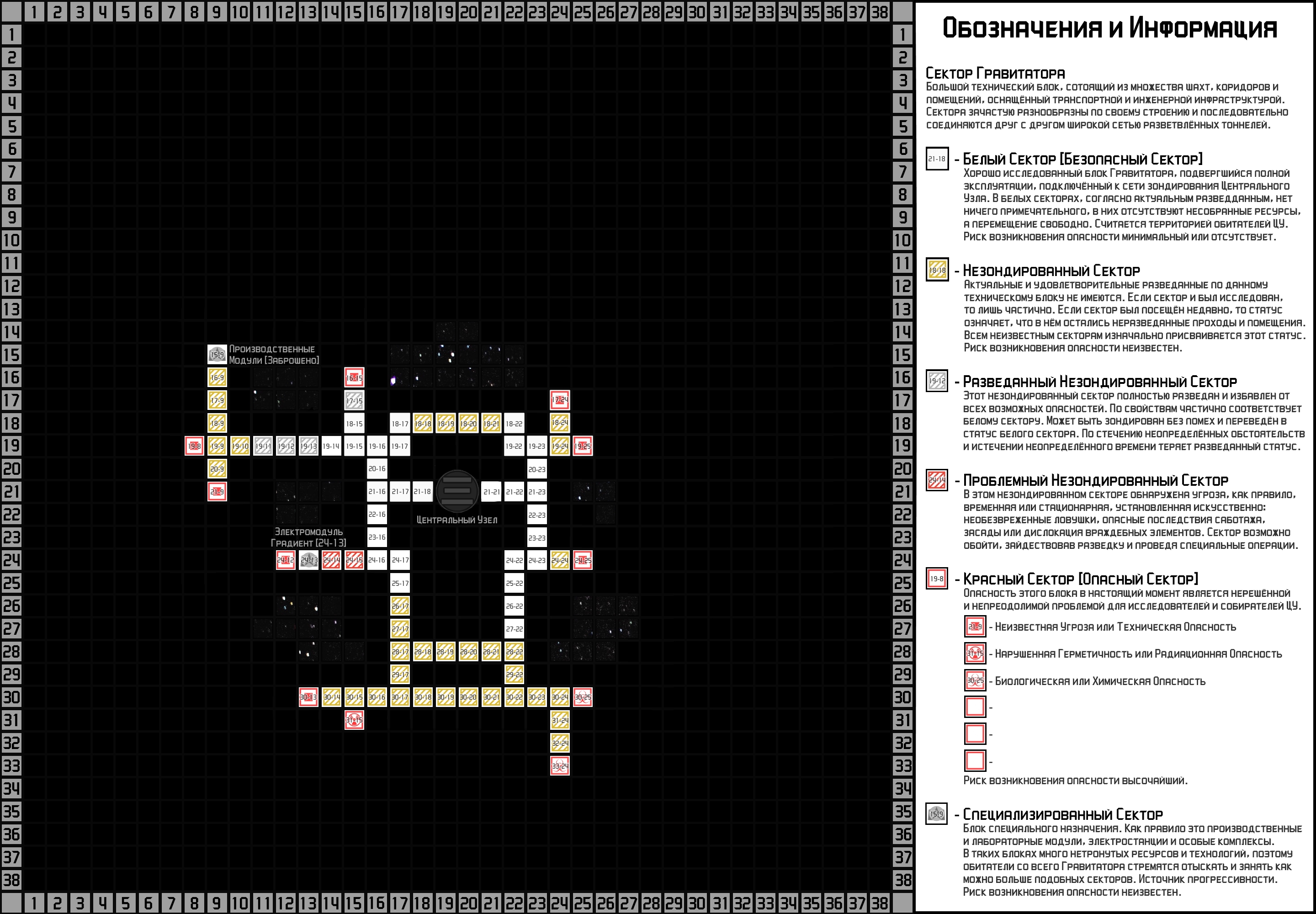 У меня есть рацпредложение - допустить, что белые сектора это есть куски центрального узла. И как раз мы, в лучших традициях Компаса, возьмём себе по квадратику и заселимся там. А желтые и остальные - неисследованные секторы Гравитатора. Это как раз обретёт нарративный смысл, мол, почему такое пространство не используется