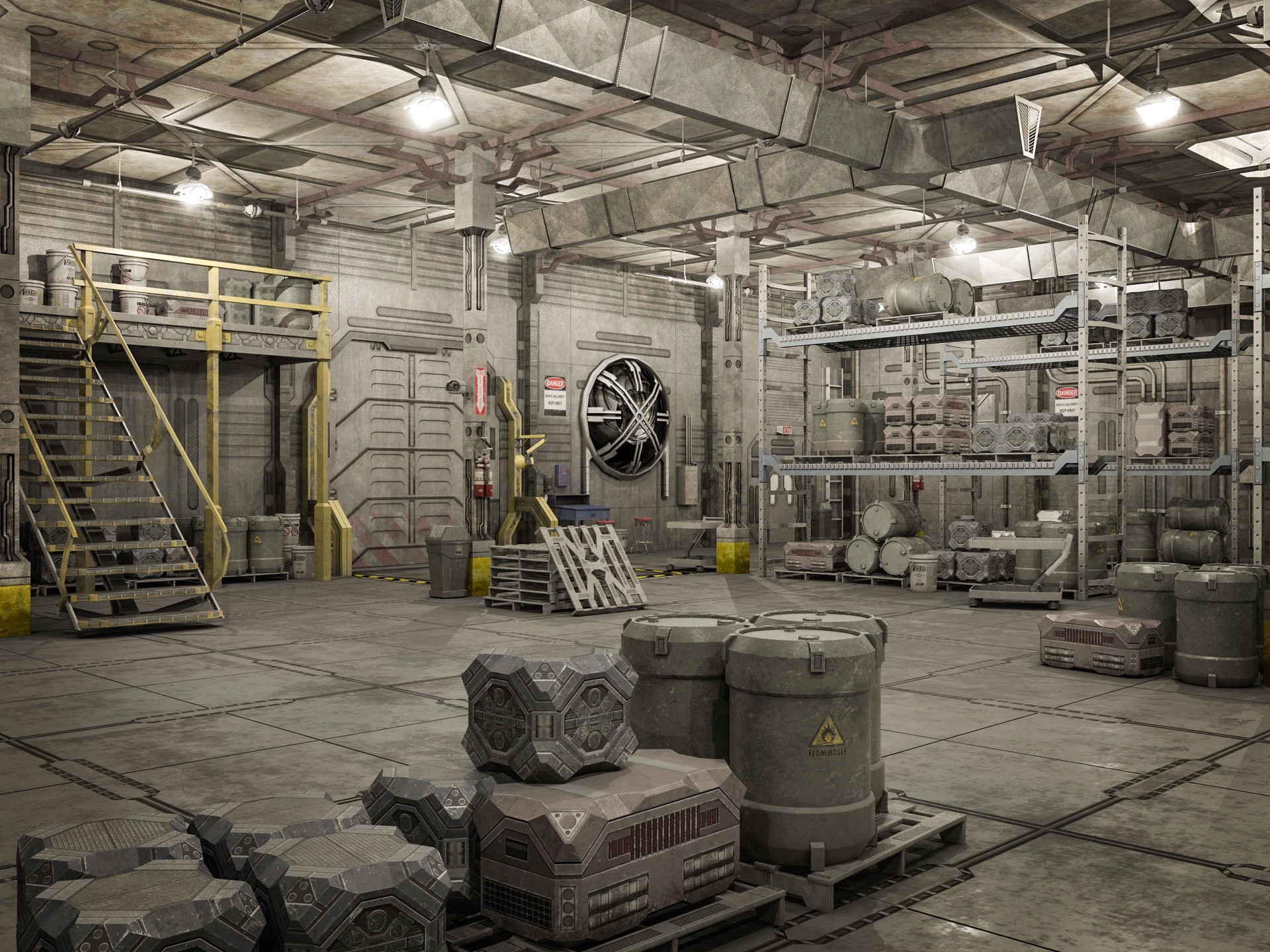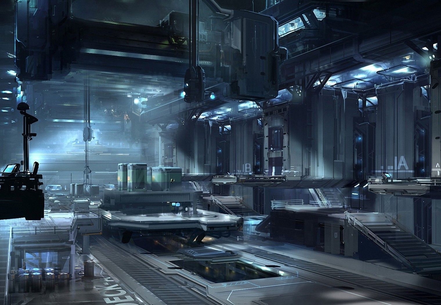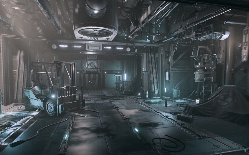 Транспортная инфраструктура в следующем секторе расширена: несколько ремонтных мастерских и грузовых платформ прилегали к дорожным ответвлениям и подъёмным автостоянкам. Высокий потолок усеян механизмами для перемещения грузов. Лишь полное отсутствие признаков какой-либо активности рушит впечатление до сих пор непрекращающегося использования и обслуживания этого сектора. В здешнем скоплении платформ и беспорядочно расставленных ящиков легко затеряться, а блекло-синий свет из встроенных со всех сторон ламп дополнительно усугубляет распознавание отдельных особенностей блока. Все платформы находились в рабочем состоянии, опускались и поднимались по указанию консолей практически бесшумно.