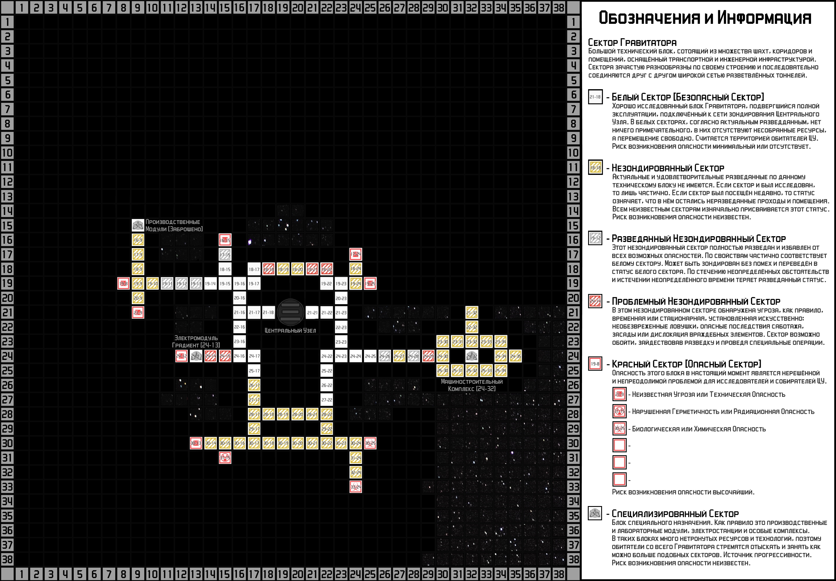 Общая Информация: Фракции Центрального Узла совершили несколько вылазок в Гравитатор, ознакомившись с окружением ближайших секторов. Разведка в Белых (Зондированных) Секторах во время обхода будут происходить без дополнительных проверок.